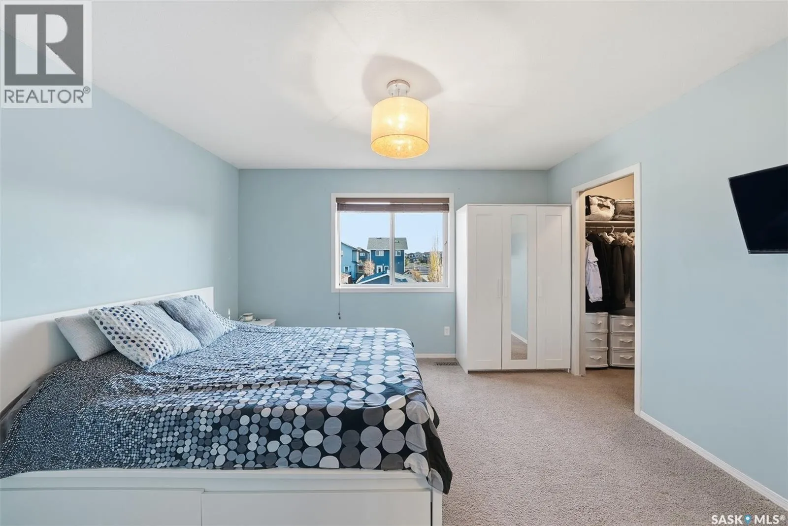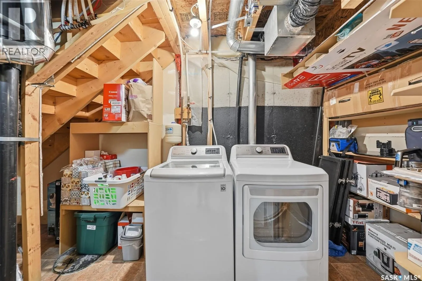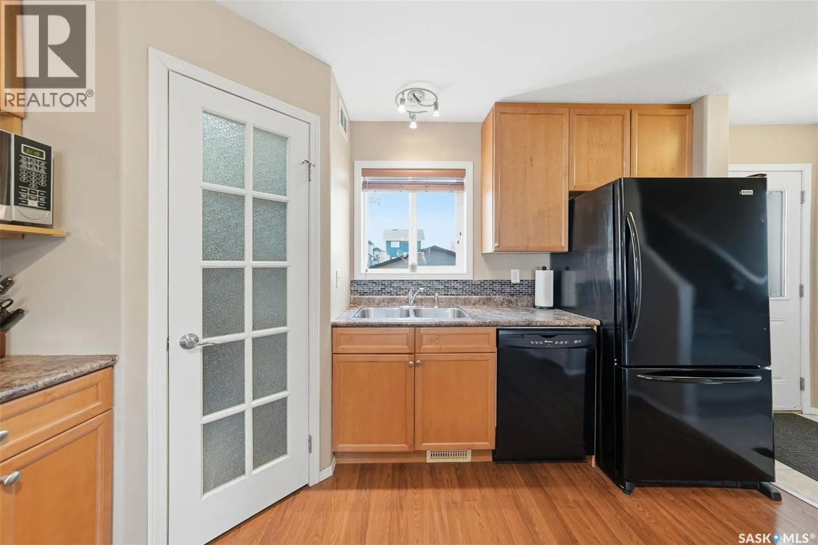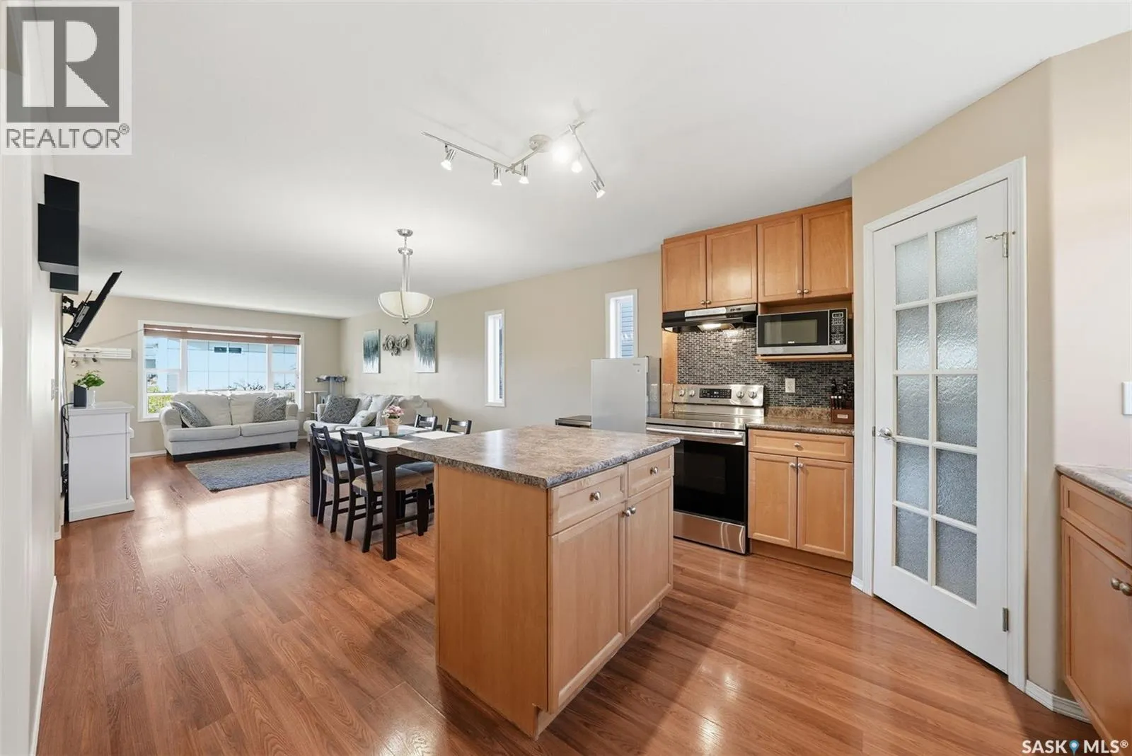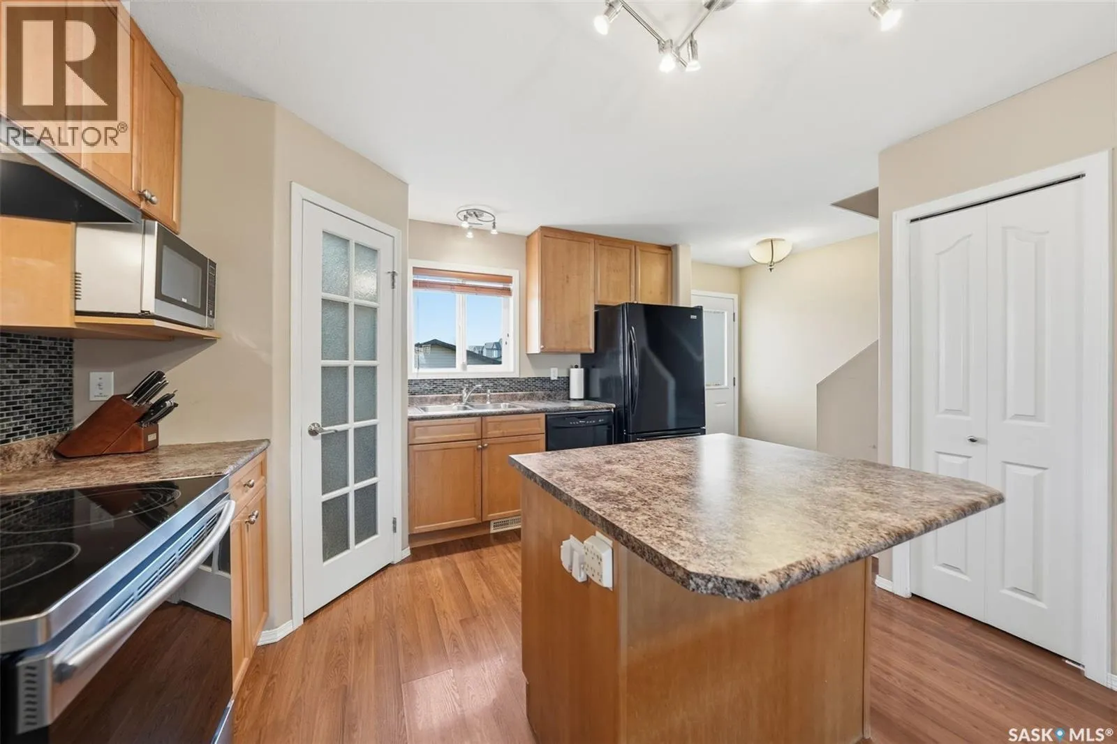 Located in the heart of Willowgrove, this well kept two storey offers a functional layout designed for comfortable family living. The main floor features an open concept kitchen, dining, and living area with great natural light and an easy flow for everyday life. A convenient two piece bathroom completes this level. Upstairs are three spacious bedrooms, including a primary suite with a good size walk-in closet. The basement is fully finished, offering a cozy family room, a fourth bedroom, a four piece bathroom, and laundry, complete with a new washer and dryer. Situated on a corner lot, the property provides excellent street parking, a generous yard, and a double detached garage with additional parking beside it. The backyard features a well-built two tier deck, ideal for outdoor dining and summer gatherings. Just a short walk to schools, parks, and nearby amenities, this home offers a strong blend of comfort, practicality, and location in one of Saskatoonâs most desirable neighbourhoods. (id:27476)