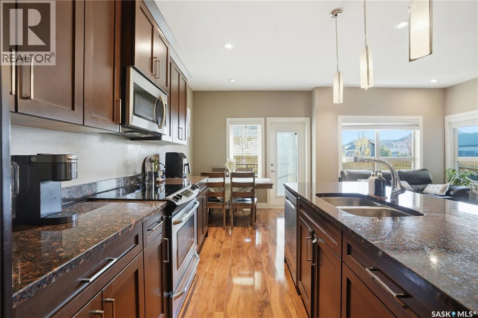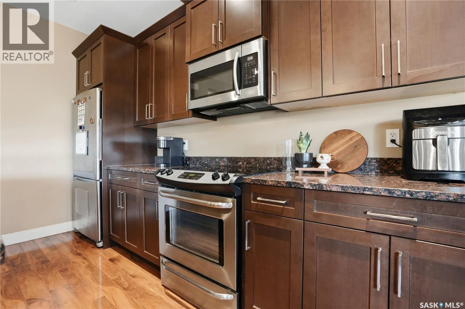Beautifully finished corner unit townhome in a gated community. This fully developed home offers a private fenced backyard with a covered deck and natural gas BBQ hookup, plus an attached garage and additional parking for two vehicles on the driveway. Extra windows on all three levels bring in plenty of natural light, and 9-foot ceilings on the main floor add to the spacious feel. The open-concept main level features a modern kitchen with a large eat-up island, quartz countertops through the home, and stainless steel appliances, open to the dining area and comfortable living room. The electric fireplace is included. Upstairs are two generous primary bedrooms, each with its own ensuite and walk-in closet, plus convenient second-floor laundry. The fully finished basement includes a 3-piece bathroom and a flexible layout, with three large windows that provide plenty of natural light and make it easy to convert to additional bedrooms if desired. Located away from the main traffic within the complex, this unit offers privacy and peace of mind. The condo management also provides snow removal, deck/fence maintenance and backyard lawn maintenance etc., making it an excellent low-maintenance home option. Close to school, park and shopping center! Call your REALTOR® today for a private showing. (id:27476)