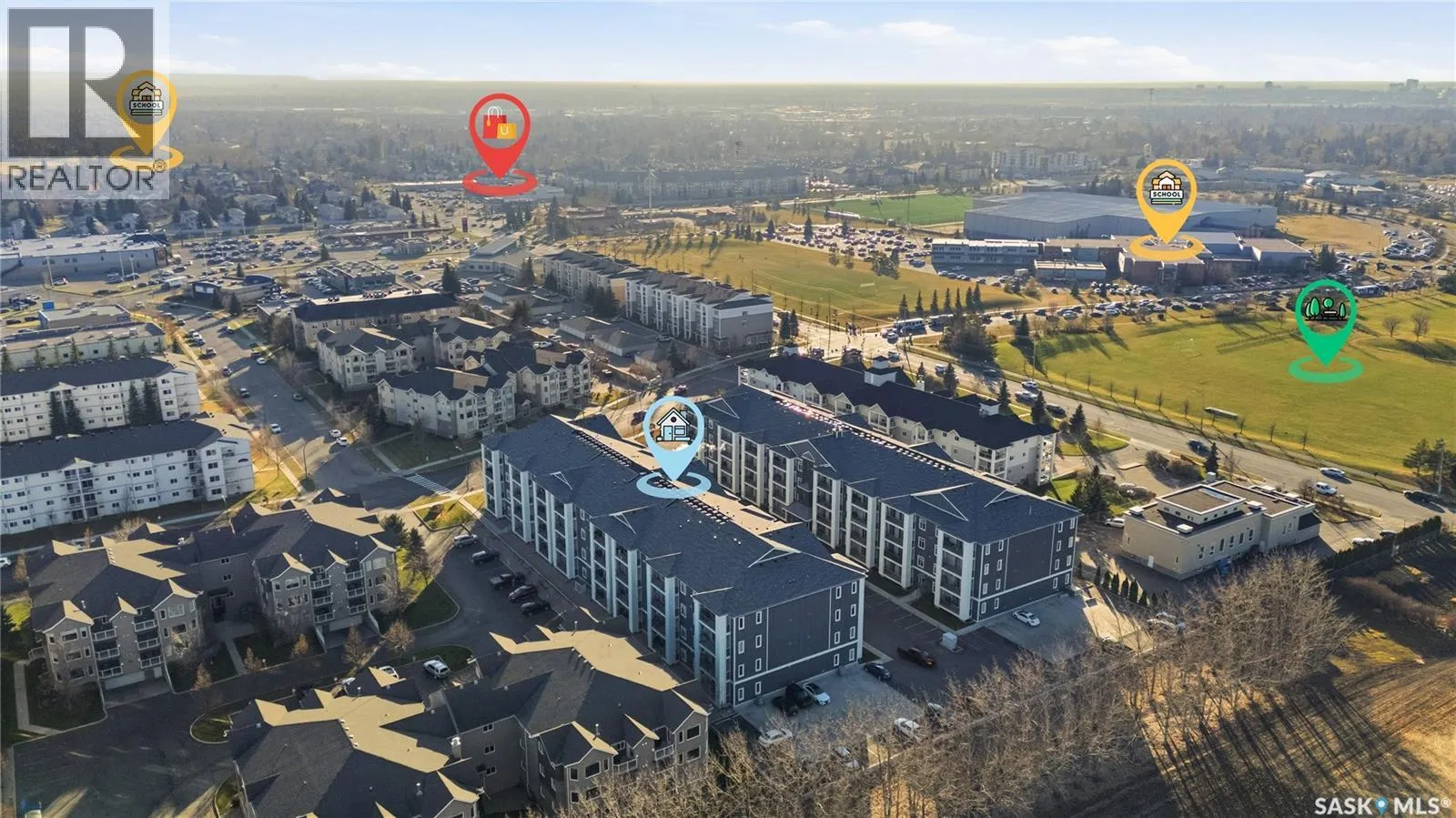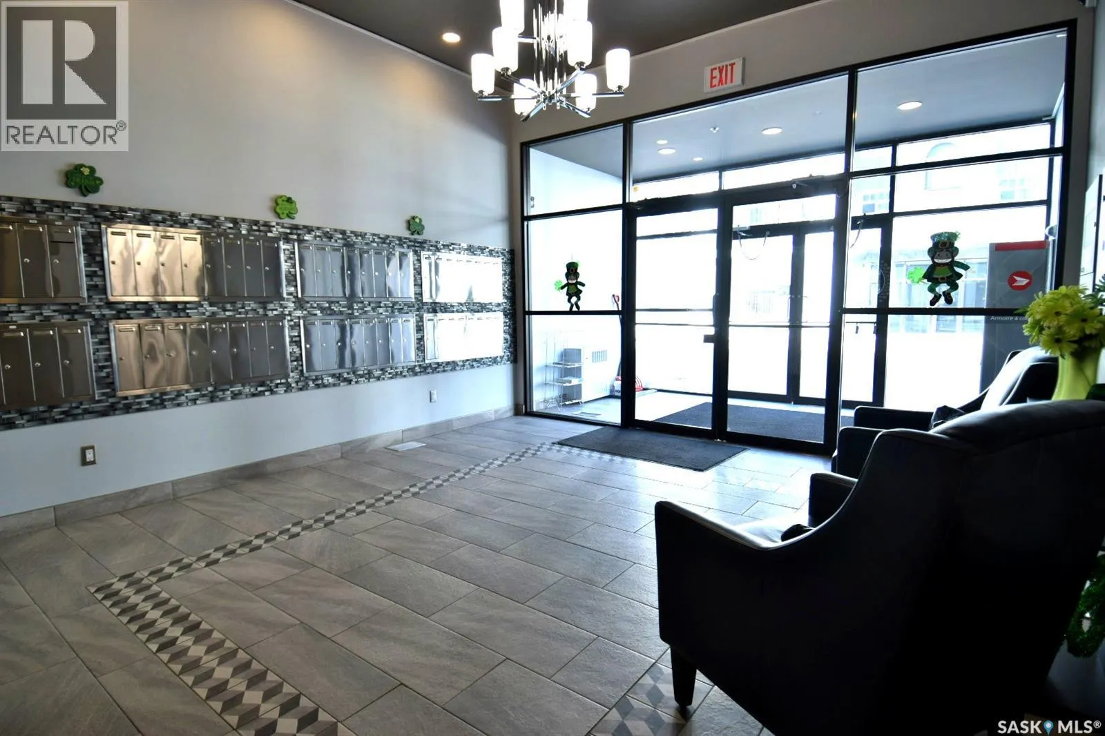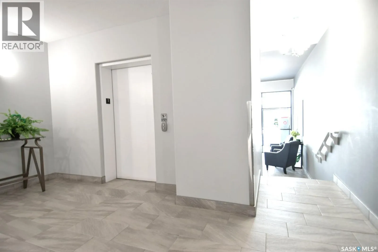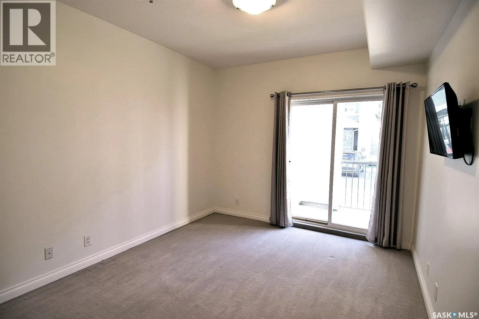 Welcome to convenience and comfort in Saskatoon's coveted University Heights subdivision! Boasting an exceptional Walk Score of 77, this location is truly designed for a friendly, walkable lifestyle, placing every amenity right at your doorstep. Groceries, dining, medical services, banks, parks, walking paths, the public library, and public transit are all just steps away. This super-clean, main-floor condo offers an economical home without sacrificing prized features. Located near the front entrance, access is effortless via a short flight of stairs or the building's elevator. Inside, you'll discover a bright, open-concept floor plan linking the kitchen, dining, and living areas seamlessly. The feeling of space is amplified by 9-foot ceilings, fresh designer paint, and a few new and contemporary light fixtures. In-floor radiant heat and central air-conditioning provide comfort. Step through the patio doors onto your large covered balcony, featuring a convenient natural gas hookup for easy barbecuing. The full bathroom is easily accessible and sits adjacent to the spacious bedroom, which also provides direct access to the deck. A generous laundry room provides ample space for extra storage or can be easily used as a dedicated private home office area. This project offers truly amazing value-added features, including a community meeting room and a well-equipped exercise room. Best of all? Enjoy the dedicated car wash bay on-site, after which you can move to your exclusive heated underground parking spot to let your vehicle dry, protected from the elements. Your private storage locker is conveniently located in front of your parking space, perfect for bikes and seasonal gear. Visitor parking is abundant, and street parking is available for a second vehicle. For anyone seeking a modern, low-maintenance home with an abundance of prized features and an unbeatable location, this suite checks every box. Call today for your private showing! (id:27476)