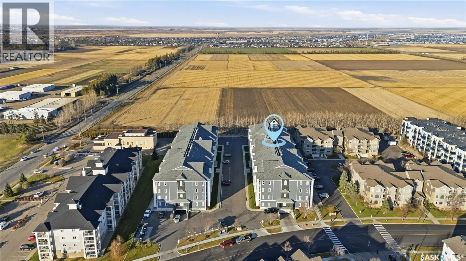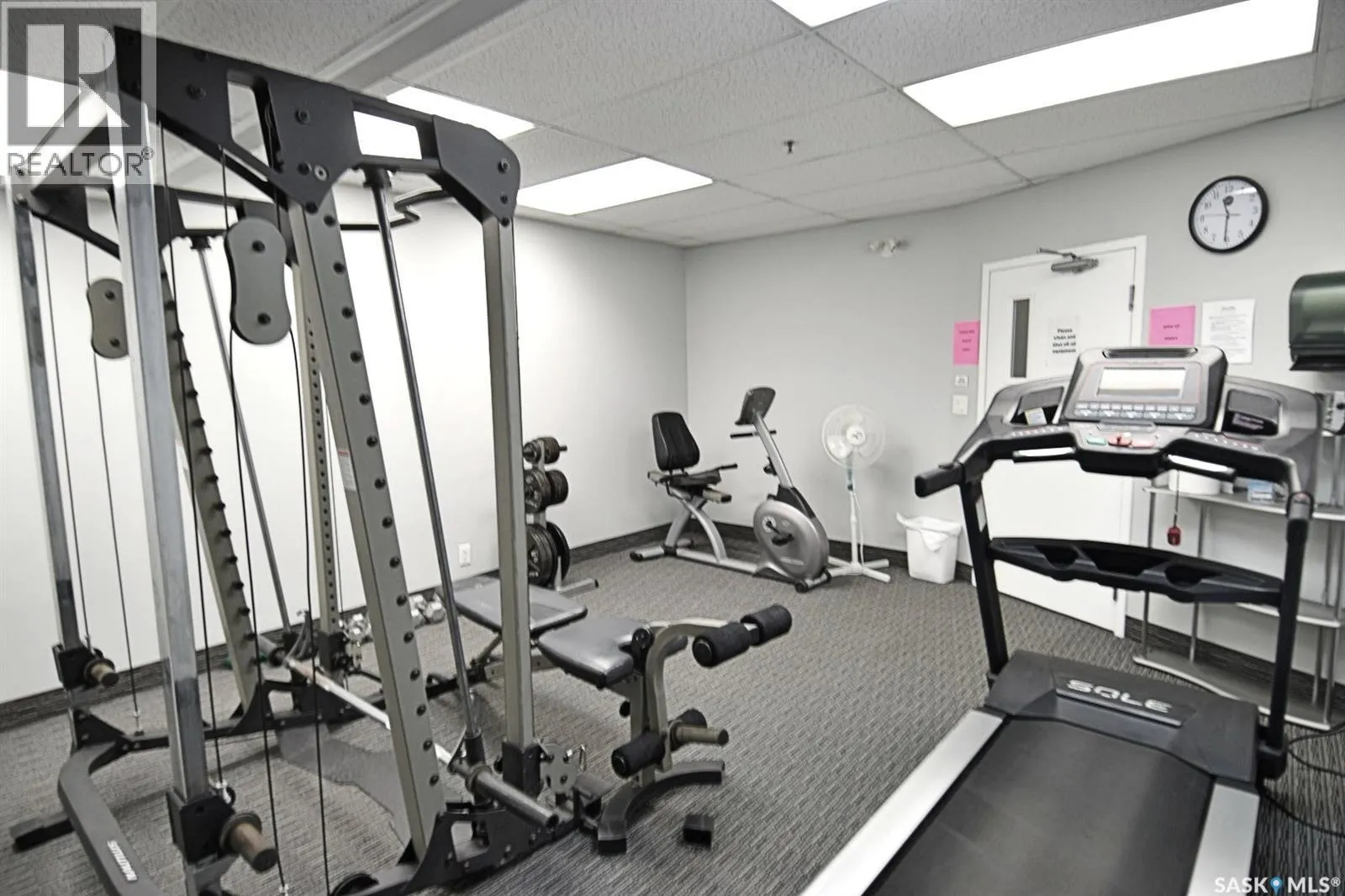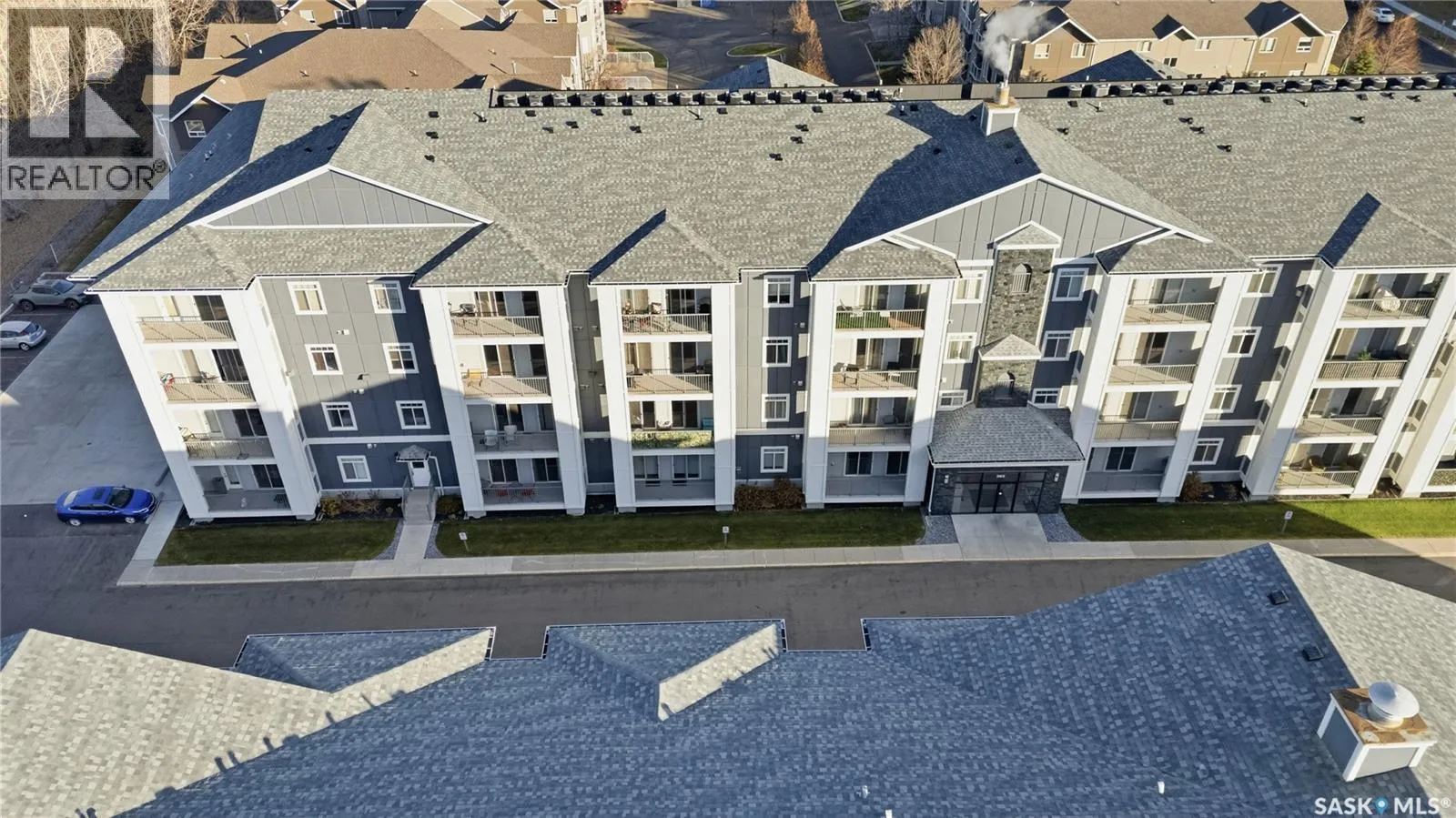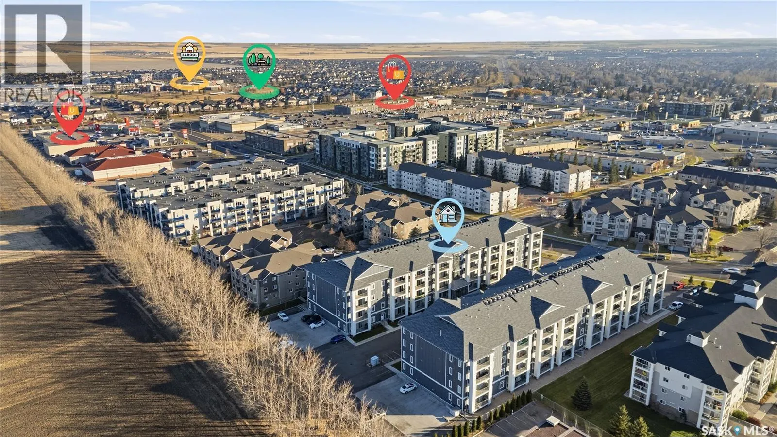 Welcome to convenience and comfort in Saskatoon's coveted University Heights subdivision! Boasting an exceptional Walk Score of 77, this location is truly designed for a friendly, walkable lifestyle, placing every amenity right at your doorstep. Groceries, dining, medical services, banks, parks, walking paths, the public library, and public transit are all just steps away. This super-clean, main-floor condo offers an economical home without sacrificing prized features. Located near the front entrance, access is effortless via a short flight of stairs or the building's elevator. Inside, you'll discover a bright, open-concept floor plan linking the kitchen, dining, and living areas seamlessly. The feeling of space is amplified by 9-foot ceilings, fresh designer paint, and a few new and contemporary light fixtures. In-floor radiant heat and central air-conditioning provide comfort. Step through the patio doors onto your large covered balcony, featuring a convenient natural gas hookup for easy barbecuing. The full bathroom is easily accessible and sits adjacent to the spacious bedroom, which also provides direct access to the deck. A generous laundry room provides ample space for extra storage or can be easily used as a dedicated private home office area. This project offers truly amazing value-added features, including a community meeting room and a well-equipped exercise room. Best of all? Enjoy the dedicated car wash bay on-site, after which you can move to your exclusive heated underground parking spot to let your vehicle dry, protected from the elements. Your private storage locker is conveniently located in front of your parking space, perfect for bikes and seasonal gear. Visitor parking is abundant, and street parking is available for a second vehicle. For anyone seeking a modern, low-maintenance home with an abundance of prized features and an unbeatable location, this suite checks every box. Call today for your private showing! (id:27476)