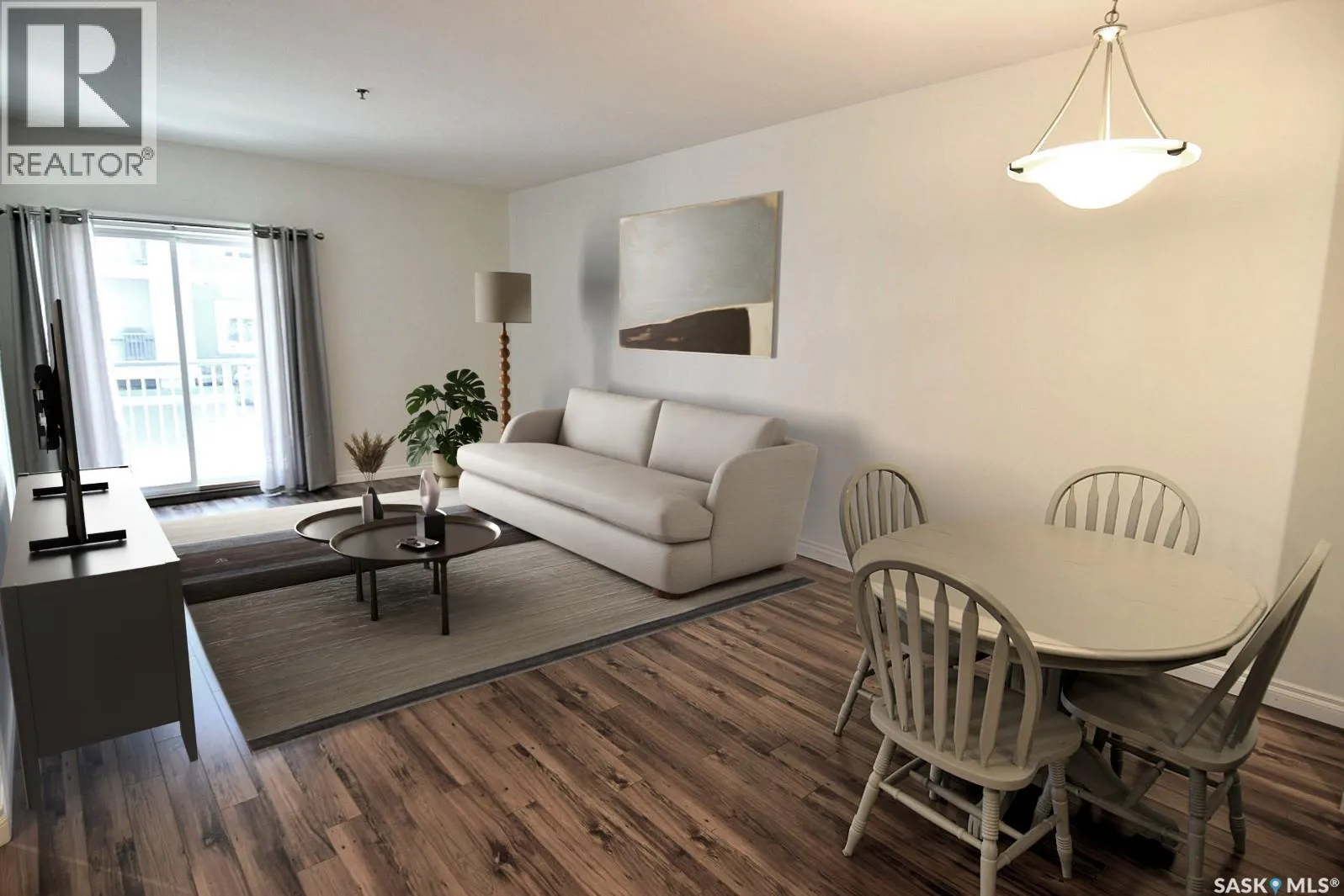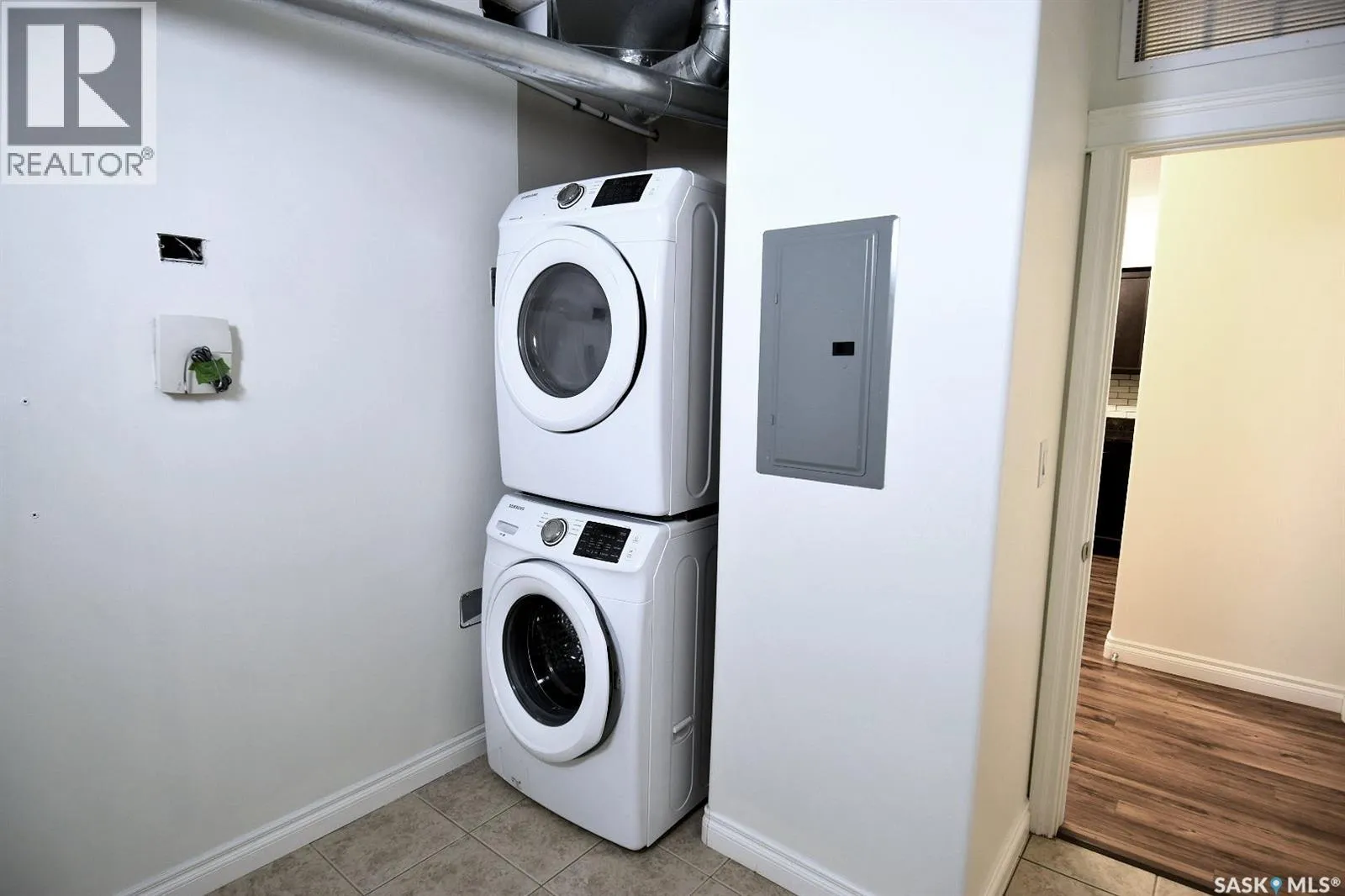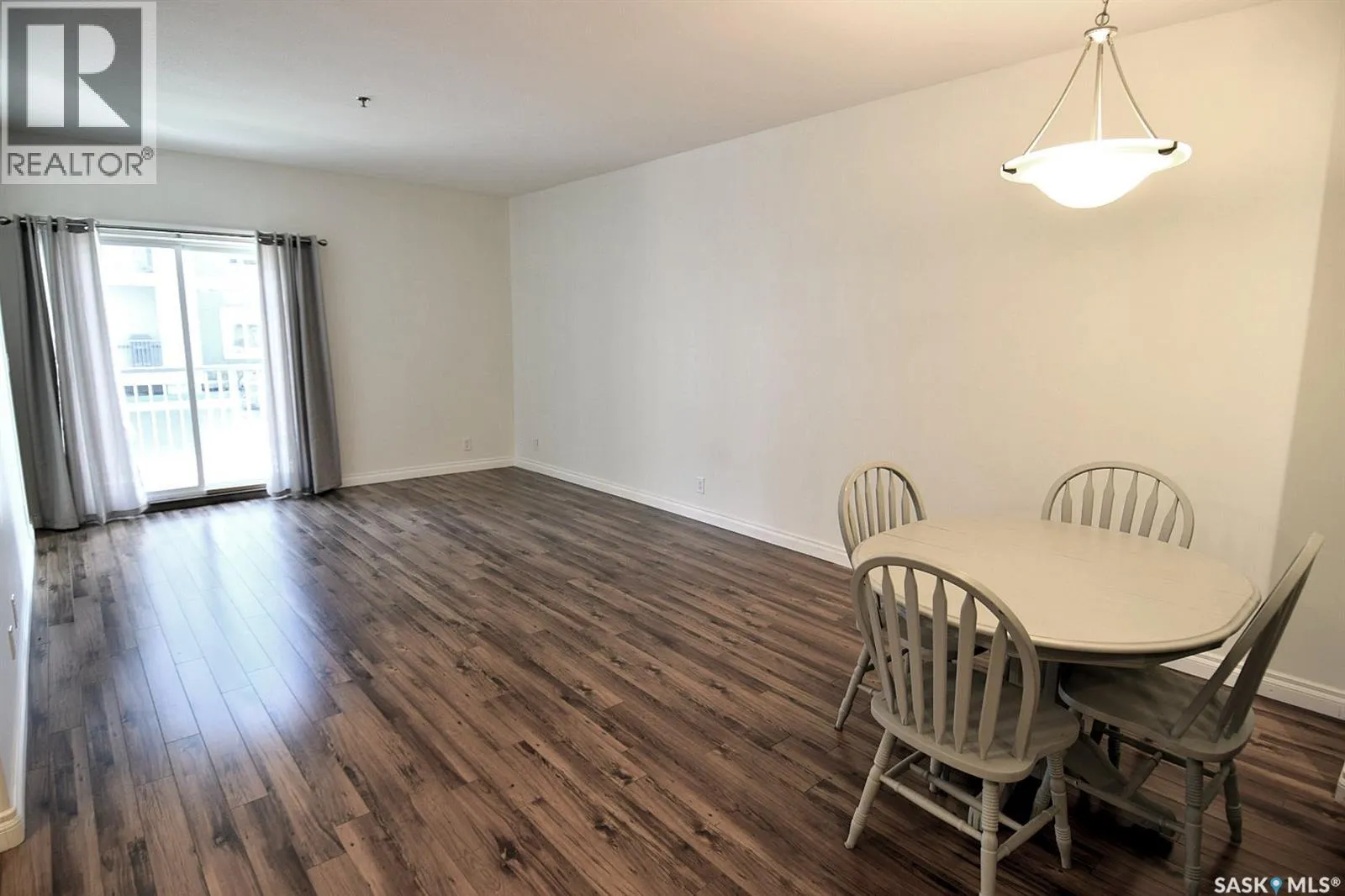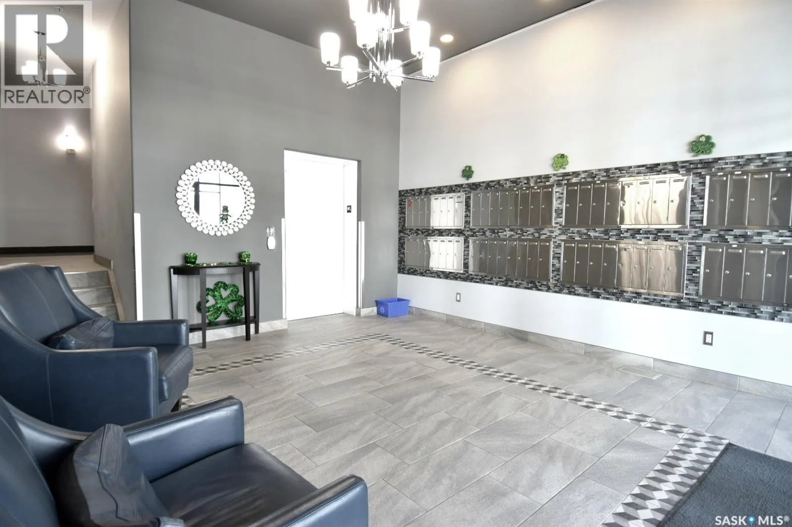Welcome to convenience and comfort in Saskatoon's coveted University Heights subdivision! Boasting an exceptional Walk Score of 77, this location is truly designed for a friendly, walkable lifestyle, placing every amenity right at your doorstep. Groceries, dining, medical services, banks, parks, walking paths, the public library, and public transit are all just steps away. This super-clean, main-floor condo offers an economical home without sacrificing prized features. Located near the front entrance, access is effortless via a short flight of stairs or the building's elevator. Inside, you'll discover a bright, open-concept floor plan linking the kitchen, dining, and living areas seamlessly. The feeling of space is amplified by 9-foot ceilings, fresh designer paint, and a few new and contemporary light fixtures. In-floor radiant heat and central air-conditioning provide comfort. Step through the patio doors onto your large covered balcony, featuring a convenient natural gas hookup for easy barbecuing. The full bathroom is easily accessible and sits adjacent to the spacious bedroom, which also provides direct access to the deck. A generous laundry room provides ample space for extra storage or can be easily used as a dedicated private home office area. This project offers truly amazing value-added features, including a community meeting room and a well-equipped exercise room. Best of all? Enjoy the dedicated car wash bay on-site, after which you can move to your exclusive heated underground parking spot to let your vehicle dry, protected from the elements. Your private storage locker is conveniently located in front of your parking space, perfect for bikes and seasonal gear. Visitor parking is abundant, and street parking is available for a second vehicle. For anyone seeking a modern, low-maintenance home with an abundance of prized features and an unbeatable location, this suite checks every box. Call today for your private showing! (id:27476)