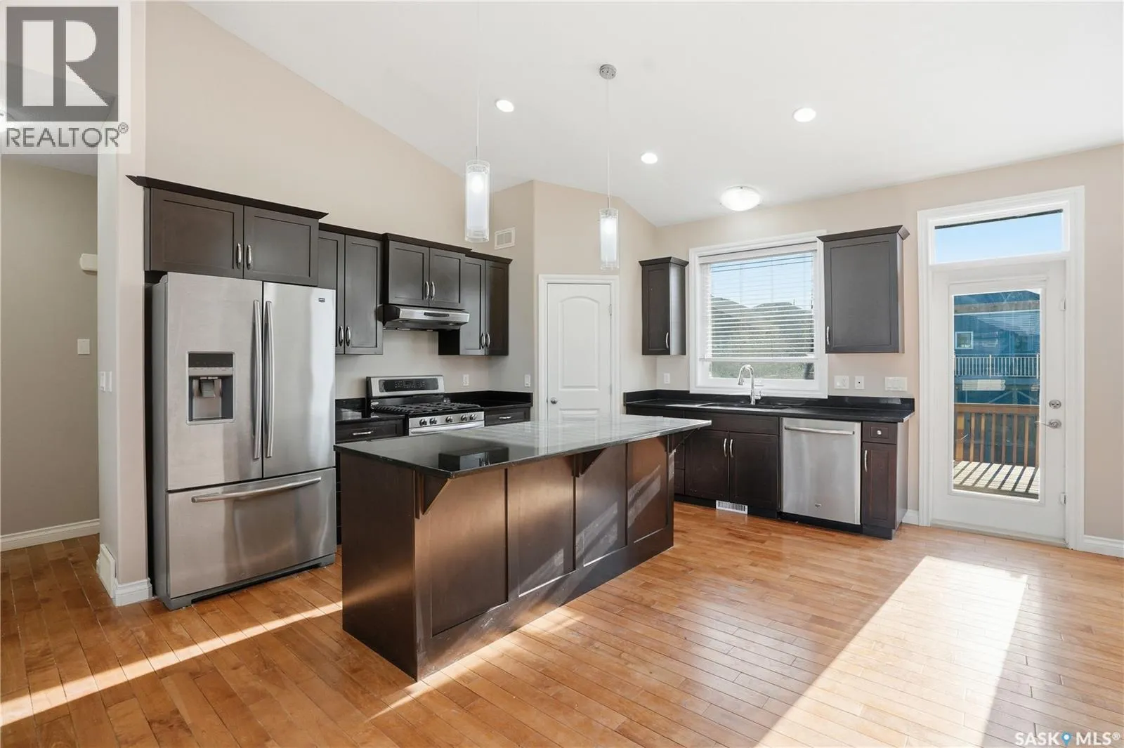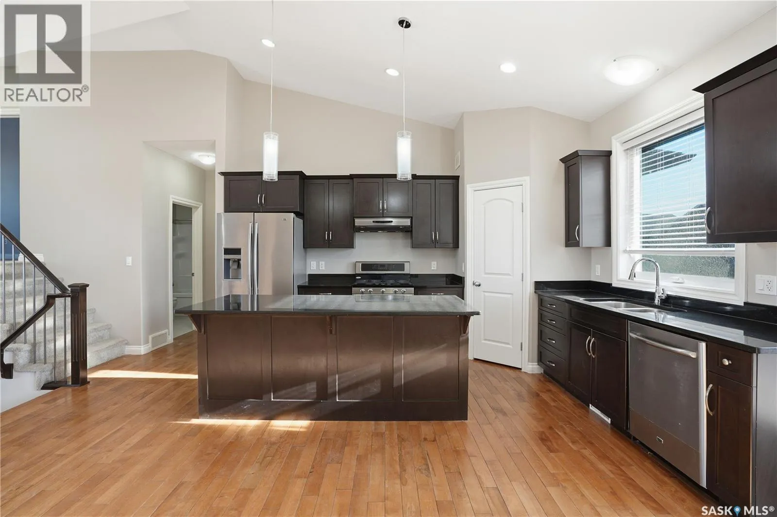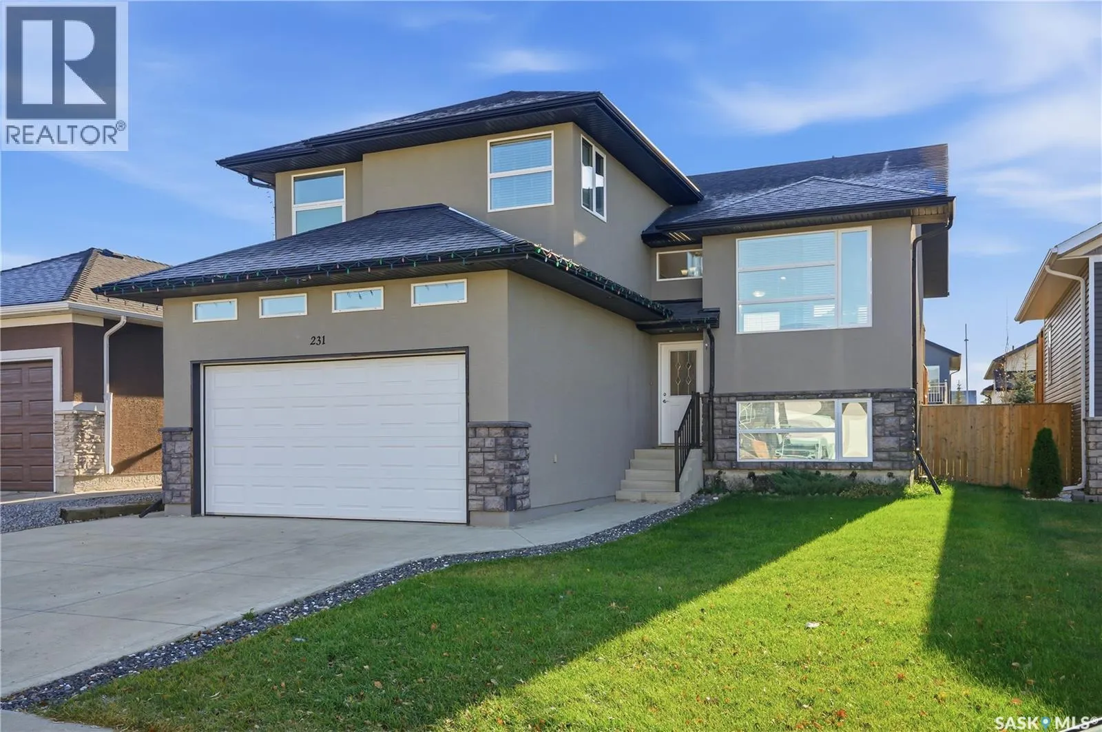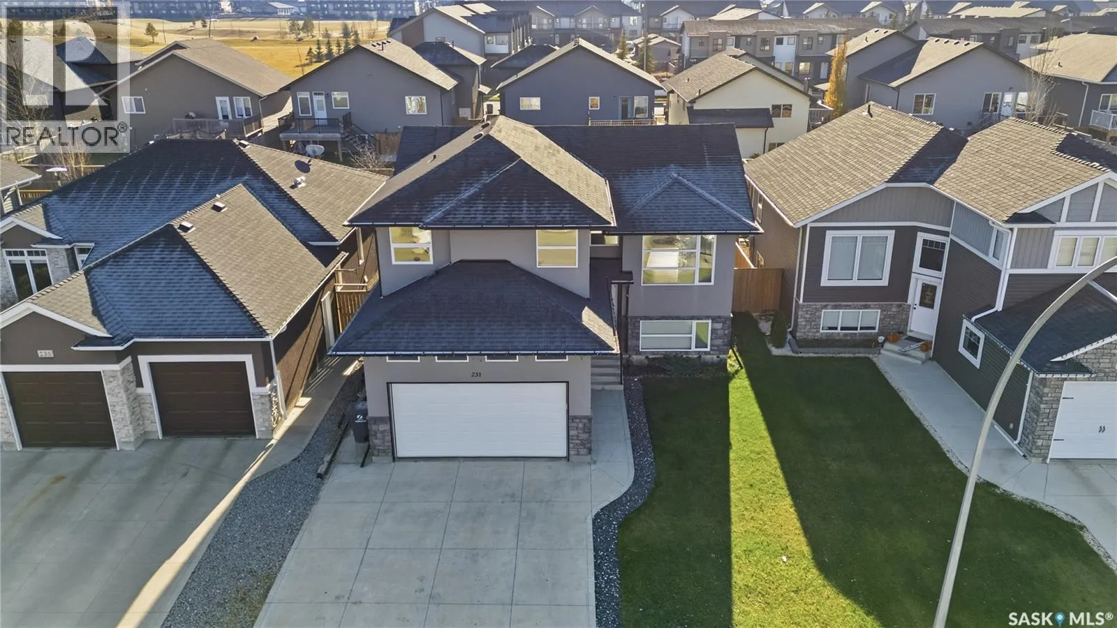 Eevate your lifestyle in this stunning 1,431 SQ. FT. MODIFIED BI-LEVEL home that perfectly combines modern design, functional layout, and income potential (LEGAL SUITE OPTION). Welcome to 231 Salloum Way, a meticulously designed home nestled on a quiet, family-friendly crescent in the highly desirable Evergreen neighbourhood. With schools and parks located directly behind the home, this property offers a truly unique and convenient location. Step inside to a soaring foyer with elegant tile flooring leading into a bright, open-concept main floor featuring vaulted ceilings throughout. The spacious living room and dining area are bathed in natural light from massive windows, creating a warm and inviting atmosphere. The gourmet kitchen is a chefâs dream, complete with granite countertops, a large pantry, oversized island, and a natural gas stove. The main level includes two generous bedrooms (one with a walk-in closet) and a 4-piece bath, while the upper floor hosts a large primary suite with a walk-in closet and 4-piece ensuite. Designed with flexibility and value in mind, the home includes a separate entrance for a potential 2-bedroom legal basement suite, offering excellent rental or extended-family options. Additional features include Central Air Conditioning, Central Vacuum (RI), Smart Thermostat, Stucco Exterior, a double attached garage with wireless key pad, and a fully fenced backyard with a large deckâperfect for outdoor entertaining and summer BBQs. Enjoy close proximity to restaurants, coffee shops, retail stores, grocery outlets, fitness centres, and medical services including Shoppers Drug Mart. This Evergreen gem truly offers the perfect blend of comfort, convenience, and opportunity. Book your showing today! (id:27476)