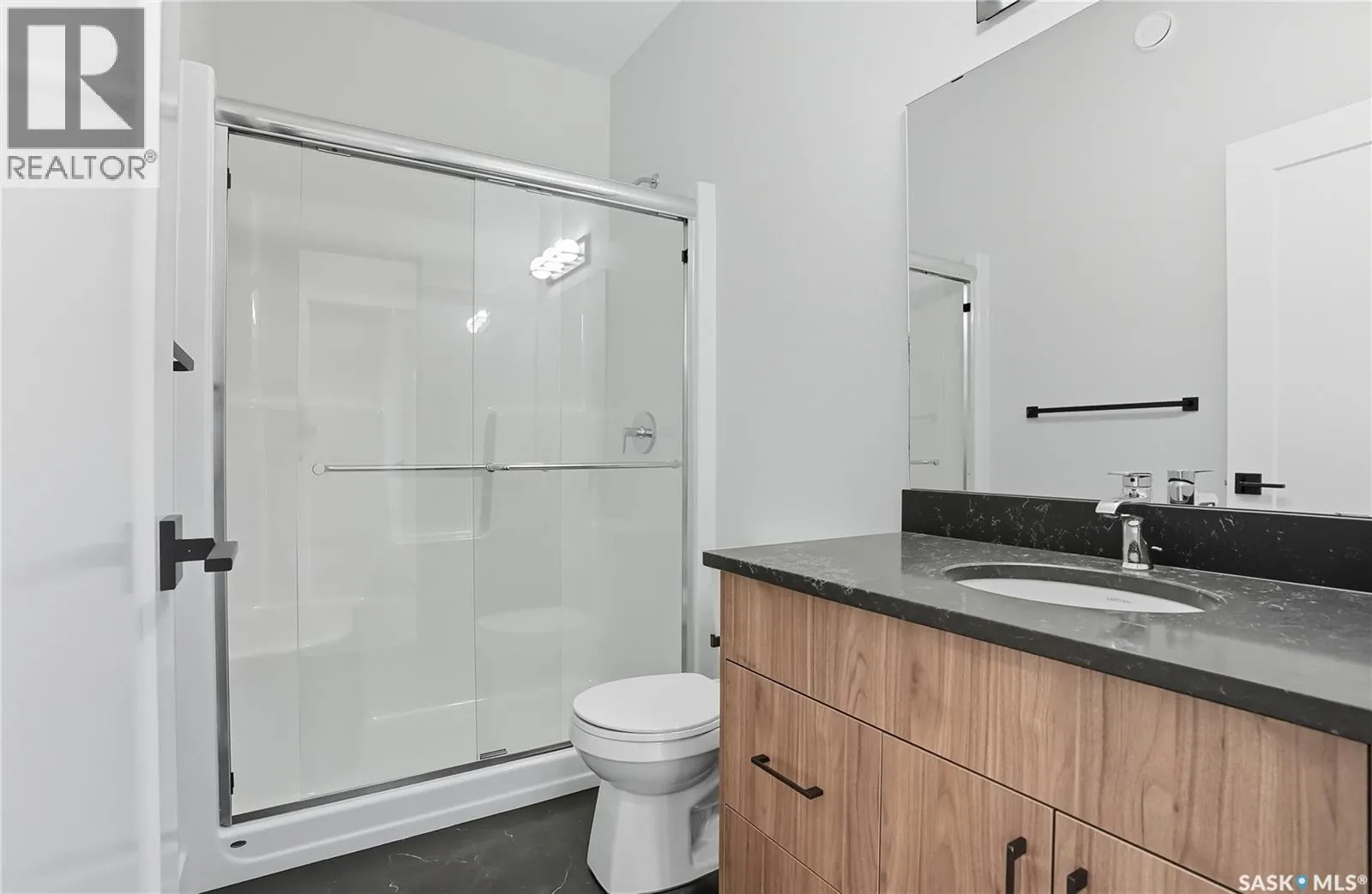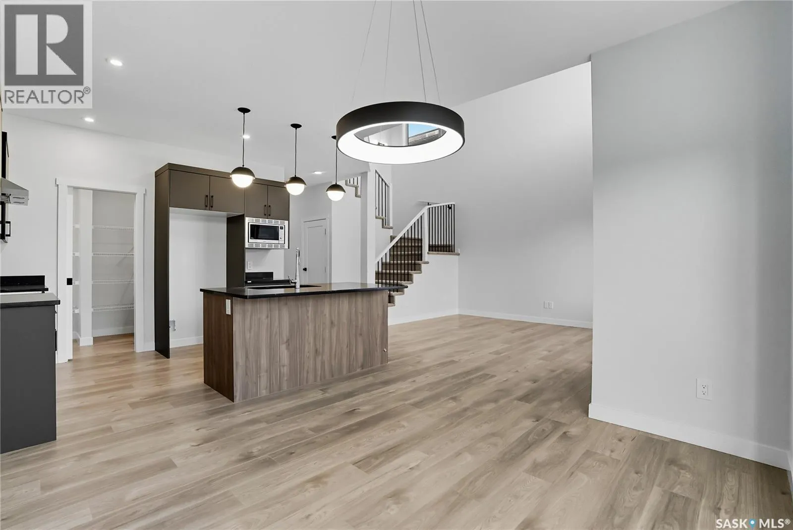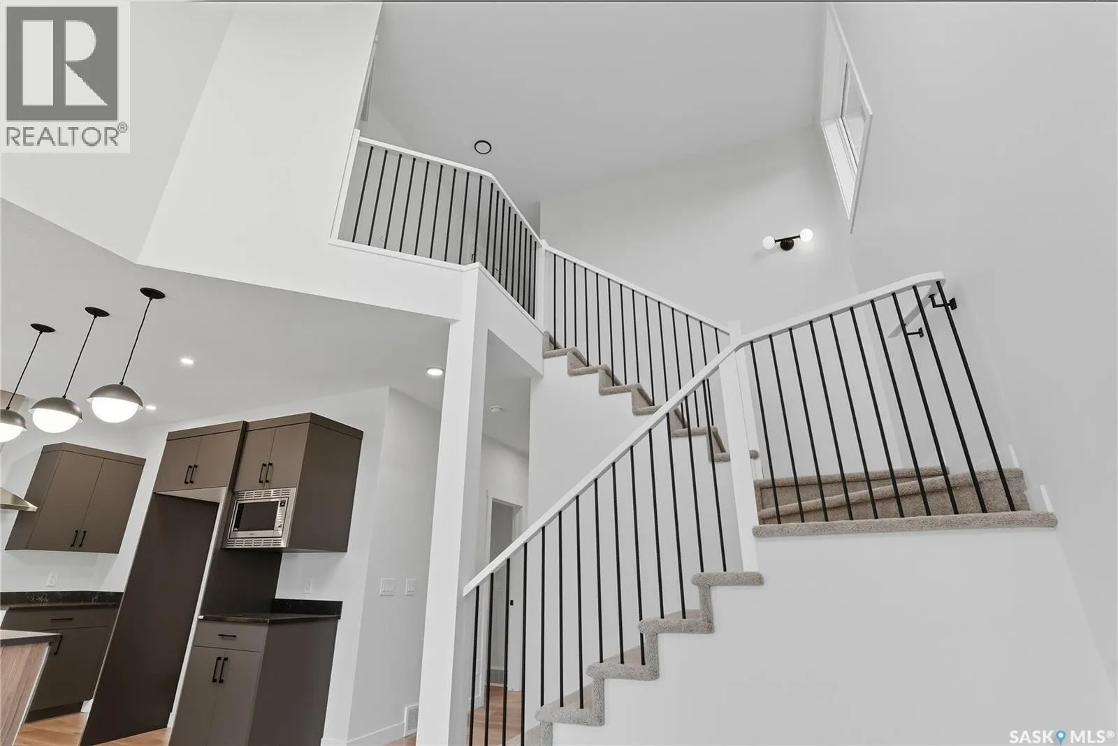 Immediate possession available! Step into this thoughtfully designed 1,766 sq ft Malibu model by North Prairie Developments, located in the vibrant community of Brighton. The open-concept layout is bathed in natural light, with soaring ceilings in the great room and expansive windows, creating an inviting atmosphere. On the main floor, youâll find a convenient bedroom and 3-piece bathroom, perfect for guests or a home office. The spacious kitchen features a large island, ideal for both meal prep and entertaining, and flows seamlessly into the dining area. For those who love extra storage and functionality, thereâs an option to include a spice kitchen/butler pantry in the walk-in pantry. Upstairs, the large primary bedroom offers a walk-in closet and a relaxing 4-piece ensuite, providing a private retreat. Two additional bedrooms, a second 4-piece bathroom, and a laundry room complete the upper floor, offering both comfort and convenience. This home also features a double attached garage, making it perfect for modern family living. This plan has an option for a 1 bedroom legal basement suite. All North Prairie homes are covered under the Saskatchewan Home Warranty program. PST & GST included in the purchase price with a rebate to the builder. Errors and omissions excluded. Prices, plans, promotions, and specifications subject to change without notice. Basement development is an optional upgrade. (id:27476)