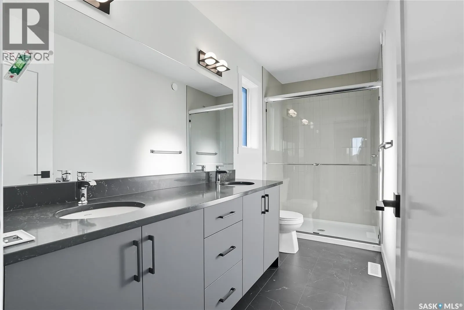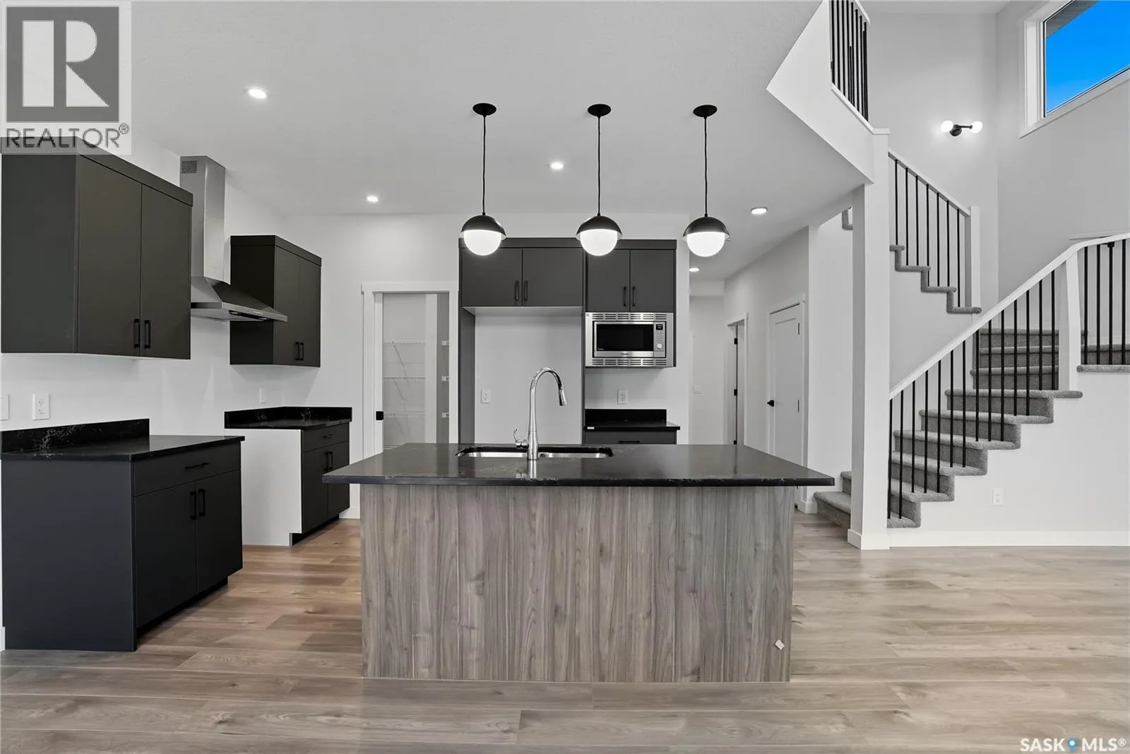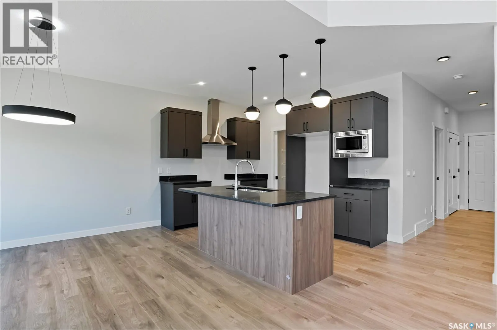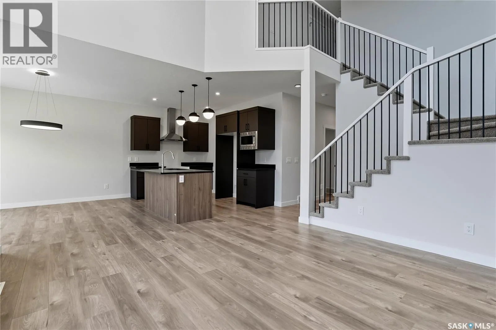 Immediate possession available! Step into this thoughtfully designed 1,766 sq ft Malibu model by North Prairie Developments, located in the vibrant community of Brighton. The open-concept layout is bathed in natural light, with soaring ceilings in the great room and expansive windows, creating an inviting atmosphere. On the main floor, youâll find a convenient bedroom and 3-piece bathroom, perfect for guests or a home office. The spacious kitchen features a large island, ideal for both meal prep and entertaining, and flows seamlessly into the dining area. For those who love extra storage and functionality, thereâs an option to include a spice kitchen/butler pantry in the walk-in pantry. Upstairs, the large primary bedroom offers a walk-in closet and a relaxing 4-piece ensuite, providing a private retreat. Two additional bedrooms, a second 4-piece bathroom, and a laundry room complete the upper floor, offering both comfort and convenience. This home also features a double attached garage, making it perfect for modern family living. This plan has an option for a 1 bedroom legal basement suite. All North Prairie homes are covered under the Saskatchewan Home Warranty program. PST & GST included in the purchase price with a rebate to the builder. Errors and omissions excluded. Prices, plans, promotions, and specifications subject to change without notice. Basement development is an optional upgrade. (id:27476)