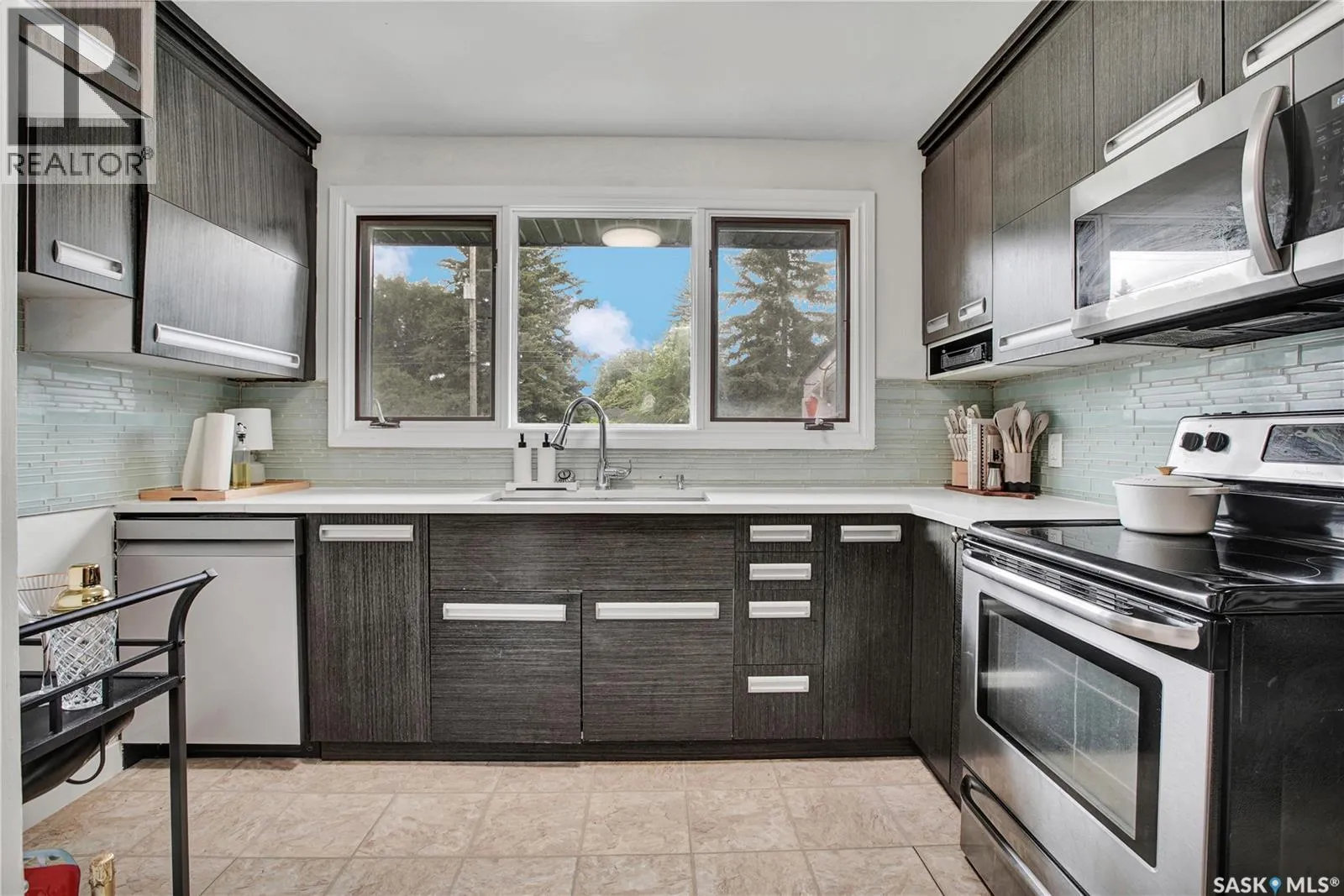 Welcome to 2616 Clarence Avenue South this bright, Updated & Wheelchair Accessible(just needs ramp) Bungalow on a 55â Lot in the gorgeous loved area of Avalon. This beautifully updated and move-in ready bungalow with fantastic curb appeal and a bright, sunny interior. Situated on a spacious 55-foot lot, this home offers a blend of comfort, function, and style in a prime location close to schools, shopping, dining, public transit, and the University of Saskatchewan. The main floor features a large, sun-filled living room with expansive windows, a spacious kitchen with ample cabinetry, and three generously sized bedrooms. The upgraded 4-piece bathroom includes a newer tub and vanity, while new flooring flows seamlessly throughout the main level. Enjoy the convenience direct access from a concrete front drive into the attached single-car garage. The west-facing covered patio overlooks a fully fenced backyard with mature trees and a garden areaâperfect for relaxing or entertaining. The fully finished basement adds even more living space, featuring a large family room, an additional bedroom (no closet), and a full 4-piece bathroomâideal for guests, teens, or a home office. This well-maintained property offers easy access to anywhere in the city and is perfect for families, retirees, or anyone looking for a charming, functional home in a central location. (id:27476)