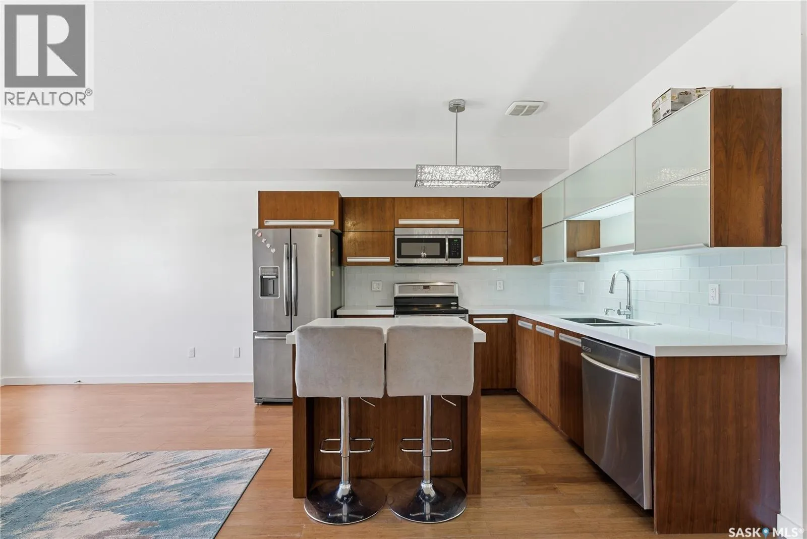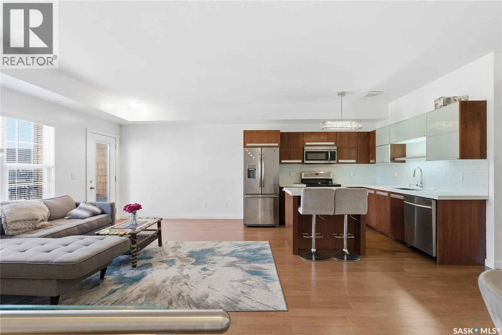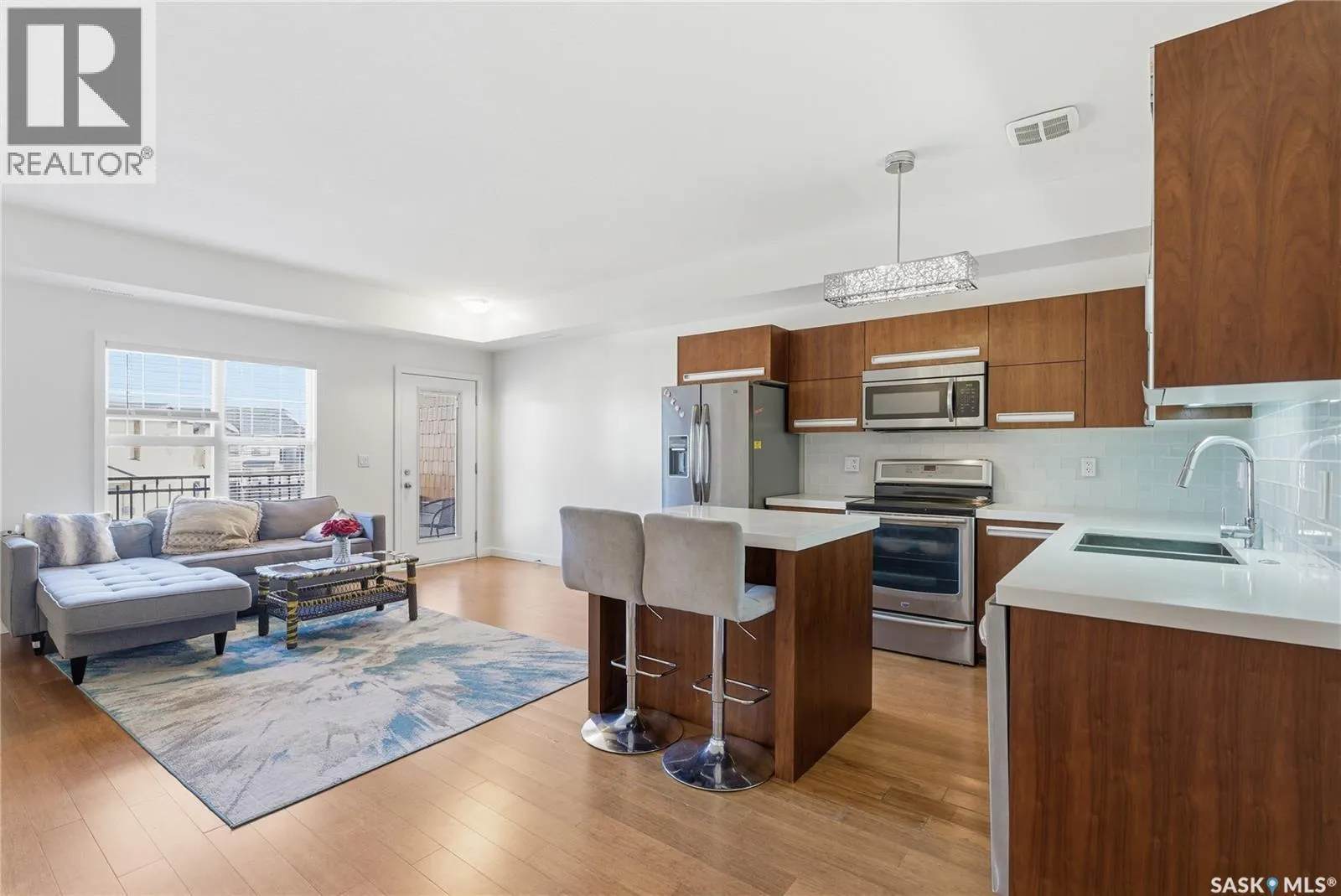 Discover the largest unit in the Ginger Lofts complex, featuring the most expansive balcony and two electrified parking stalls. This modern, open-concept second-floor condo offers a bright and functional layout, perfect for comfortable living and entertaining. The inviting living room opens onto a large east-facing balcony, ideal for enjoying your morning coffee or evening relaxation. The stylish kitchen showcases quartz countertops, stainless steel appliances, and a generous dining area â all enhanced by beautiful bamboo hardwood flooring throughout the main living spaces. This unit includes two well-sized bedrooms and a spacious four-piece bathroom featuring a quartz countertop and porcelain tile flooring. The in-suite laundry, conveniently located in the utility room, also provides additional storage space. Residents enjoy access to an impressive clubhouse equipped with an indoor saltwater pool, saltwater hot tub, fully outfitted fitness room suitable for all levels, a lounge with billiards, a furnished patio area, outdoor BBQs, and more. With low condo fees, this property presents an excellent opportunity for first-time buyers, students, or investors alike. Ideally situated close to all amenities in Brighton, with quick access to the freeway and the University of Saskatchewan. Call today to schedule your private viewing and experience all that this exceptional property has to offer. (id:27476)