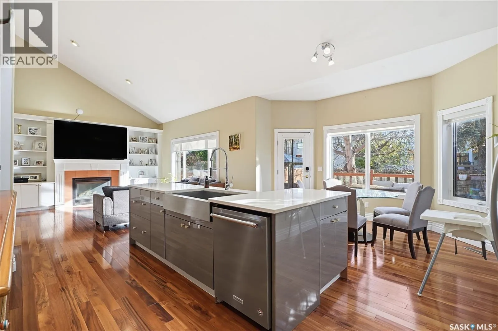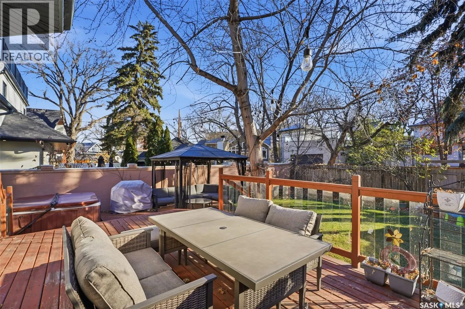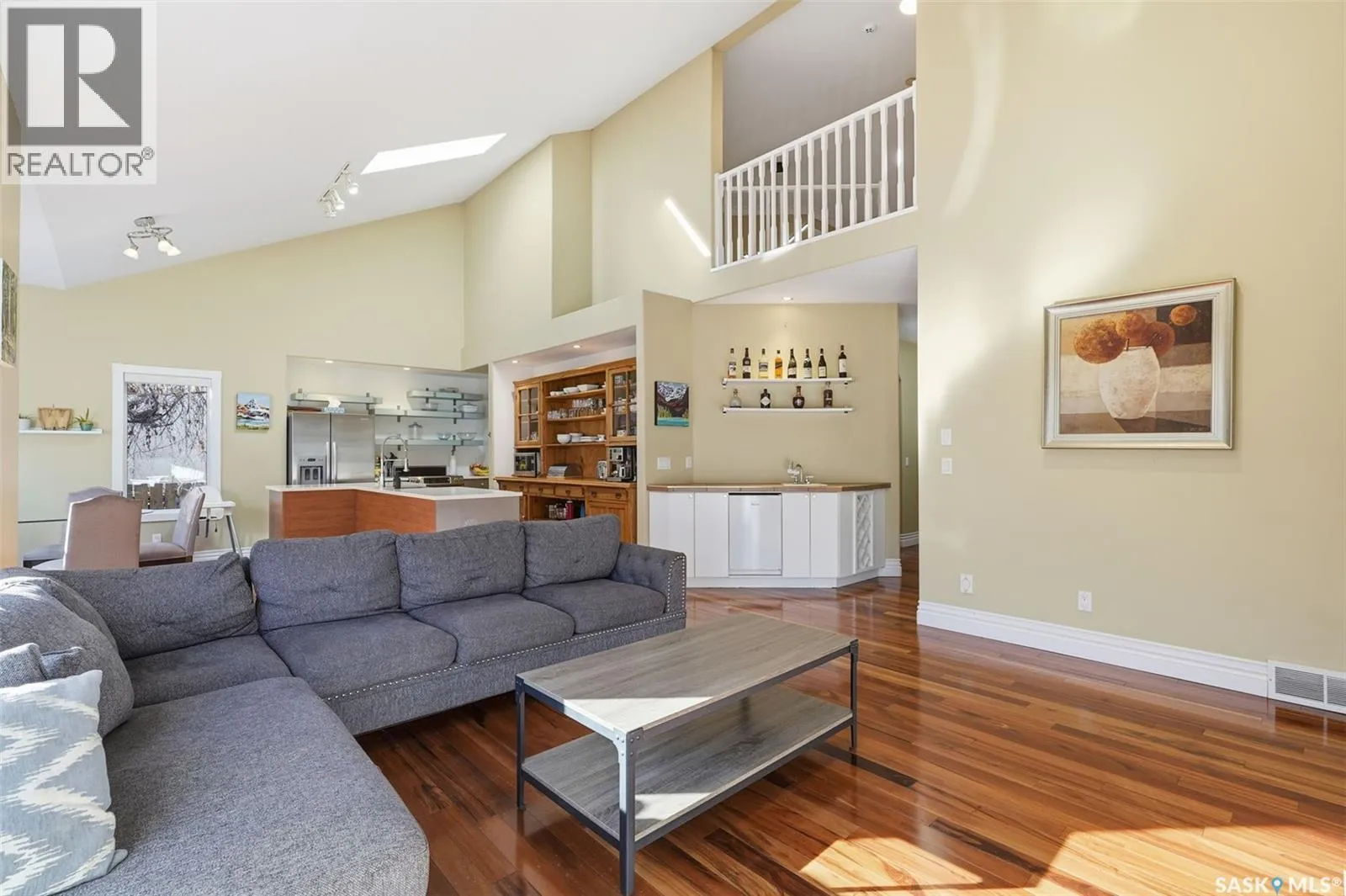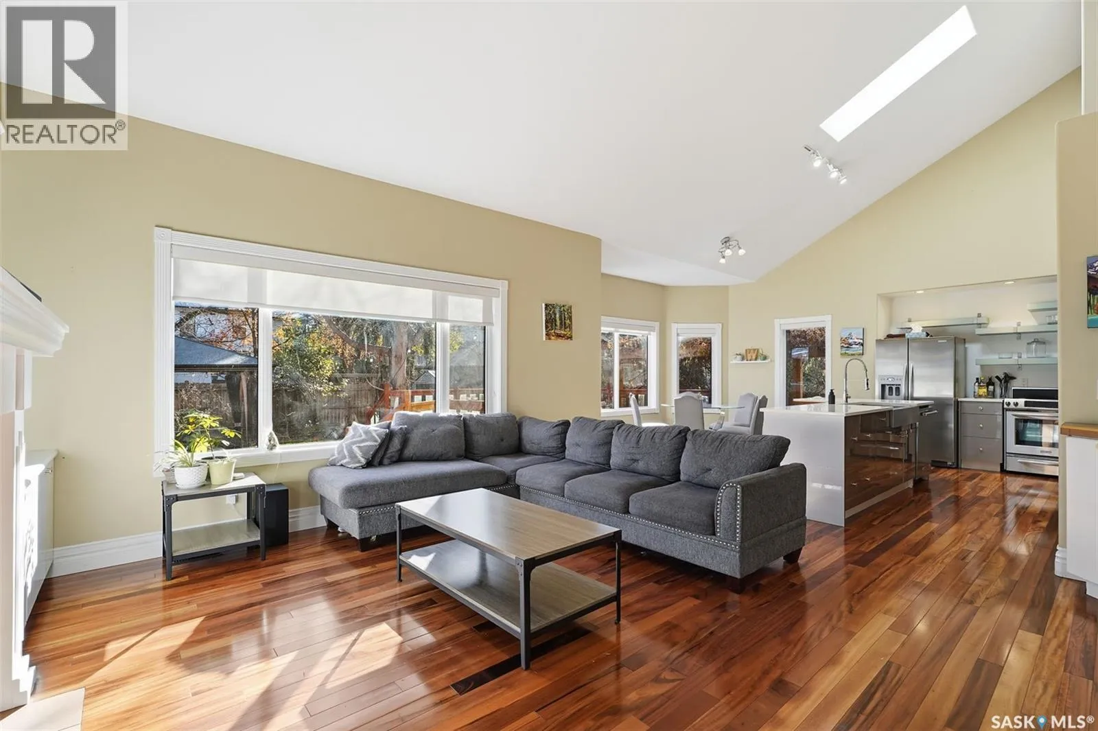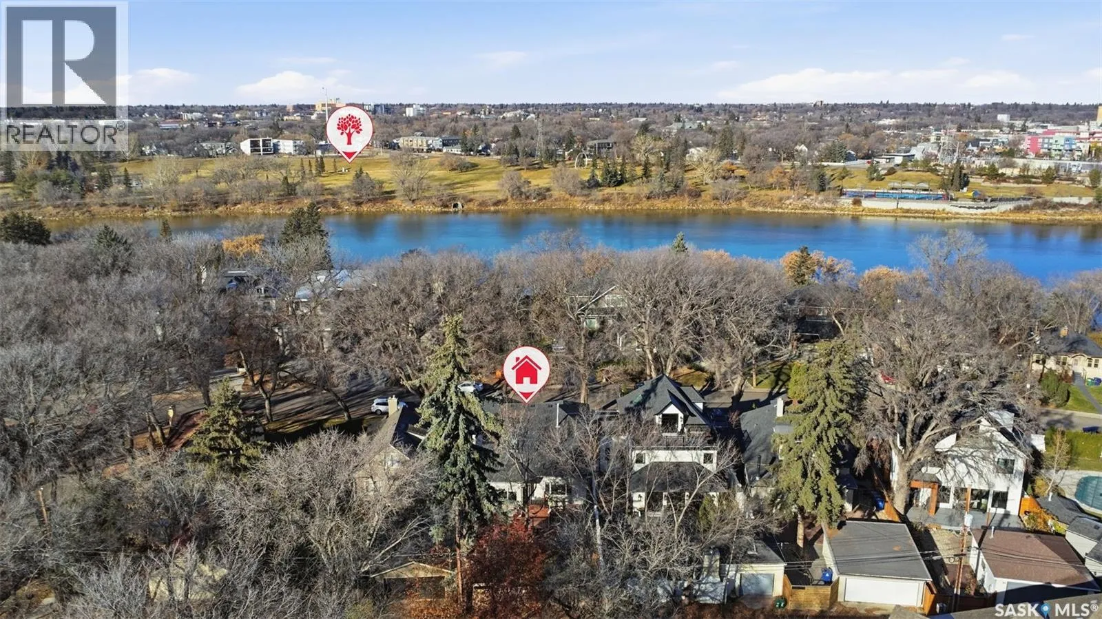 Quiet elegance is what you will feel in this stunning 2 storey located on a historic street close to the river with loads of curb appeal. The entrance leads you into a grand open concept living space with loads of natural light and vaulted ceilings that seem to go on forever. A bright skylight, stainless steel appliances, adjoining living room with fireplace and engineered hardwood flooring make this living space a place to gather with family and friends. What would make this gathering place even better? Main floor wet bar of course. This home has everything! There is main floor laundry, direct entry to garage as well as direct access to the backyard and 2 tiered deck with hot tub right off the dining room and kitchen. The primary suite boasts a stunning 5 piece ensuite with his and hers sinks, soaker tub and separate shower. There are 2 other good sized bedrooms and 4 pc bathroom. The finished basement is perfect for a family â loads of space for teens to occupy or for a young family to have a play area for small children. The backyard is an oasis with a hot tub, 2 tiered deck leading to lush grass and assorted foliage. The home is located steps away from the South Saskatchewan River and all the wonderful walking paths. Enjoy sunrises and sunsets on the front porch or back deck, either way, it is luxury at its finest! Call now to book your private showing. (id:27476)
