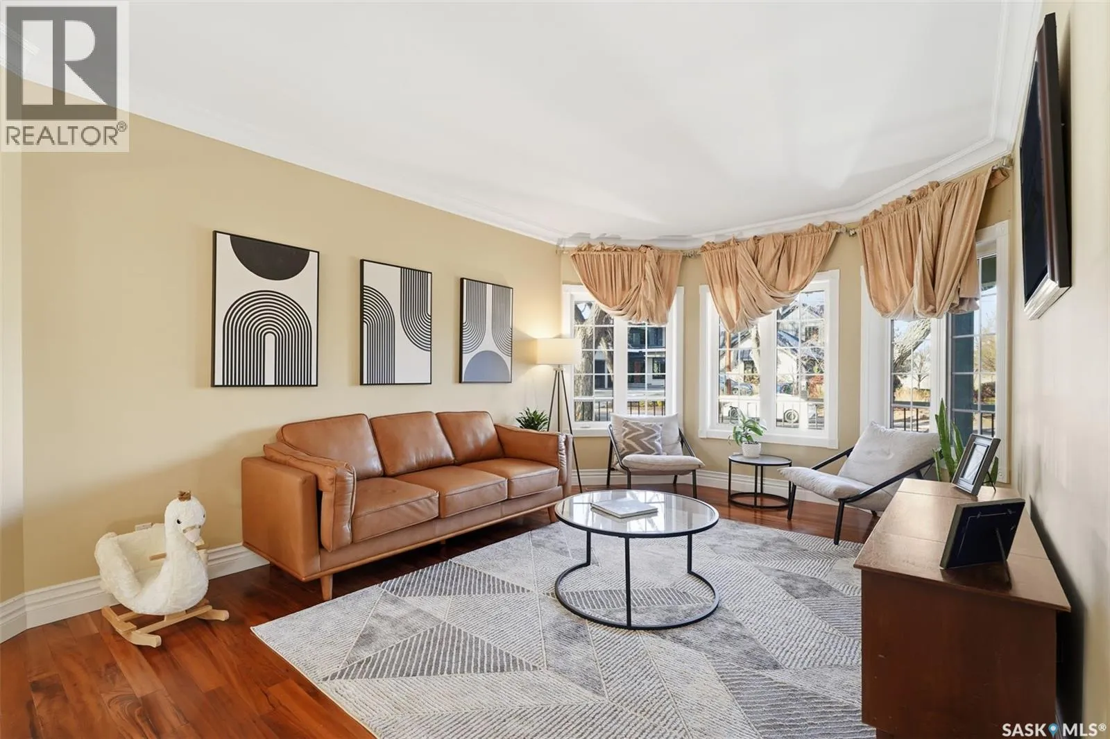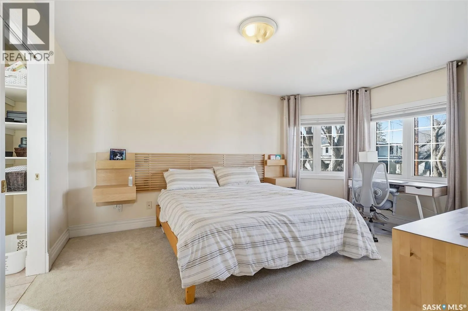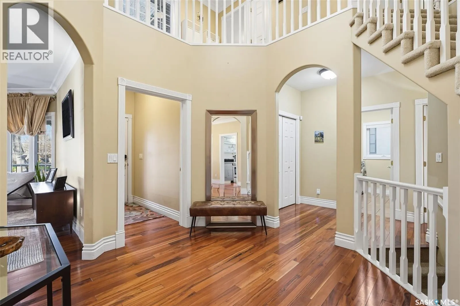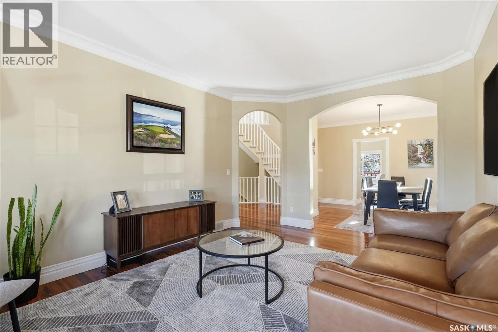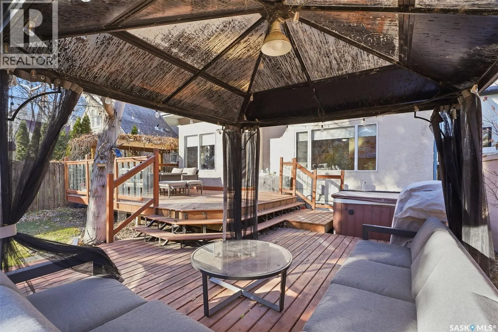 Quiet elegance is what you will feel in this stunning 2 storey located on a historic street close to the river with loads of curb appeal. The entrance leads you into a grand open concept living space with loads of natural light and vaulted ceilings that seem to go on forever. A bright skylight, stainless steel appliances, adjoining living room with fireplace and engineered hardwood flooring make this living space a place to gather with family and friends. What would make this gathering place even better? Main floor wet bar of course. This home has everything! There is main floor laundry, direct entry to garage as well as direct access to the backyard and 2 tiered deck with hot tub right off the dining room and kitchen. The primary suite boasts a stunning 5 piece ensuite with his and hers sinks, soaker tub and separate shower. There are 2 other good sized bedrooms and 4 pc bathroom. The finished basement is perfect for a family â loads of space for teens to occupy or for a young family to have a play area for small children. The backyard is an oasis with a hot tub, 2 tiered deck leading to lush grass and assorted foliage. The home is located steps away from the South Saskatchewan River and all the wonderful walking paths. Enjoy sunrises and sunsets on the front porch or back deck, either way, it is luxury at its finest! Call now to book your private showing. (id:27476)