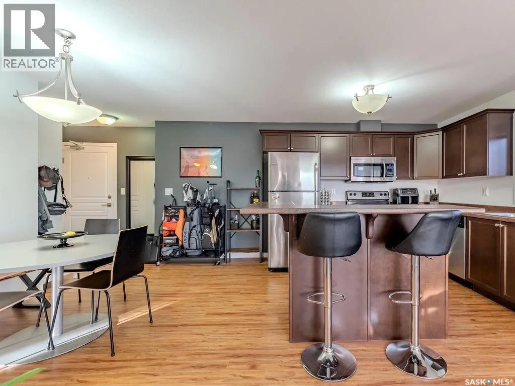 Welcome to this beautifully maintained 2-bedroom, 2-bathroom condo located in the highly desirable Stonebridge neighbourhood. This top floor corner unit offers an abundance of natural light and an open-concept layout perfect for modern living. The spacious kitchen features an island, ample countertop space, plenty of cabinetry, and stainless steel appliances - ideal for cooking and entertaining. Both bedrooms are generously sized, with the primary suite offering a private 3-piece ensuite. Additional highlights include in-floor heating, fresh paint, in-suite laundry with extra storage, and a separate storage unit located in the underground parkade. Enjoy the convenience of two parking stalls - one underground and one surface level - plus elevator access for easy living. Situated close to shopping, restaurants, parks and all Stonebridge amenities, this bright and inviting condo is move-in ready and perfect for anyone seeking comfort, convenience, and style. Contact your Realtor today, it won't last long! (id:27476)