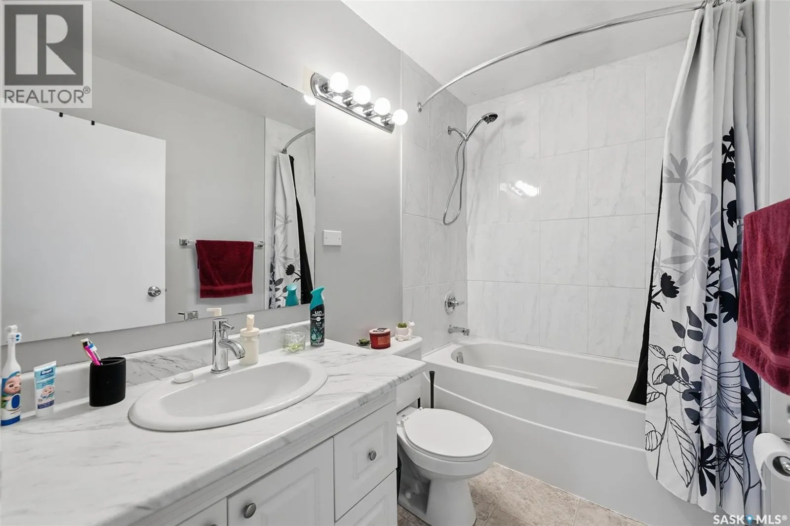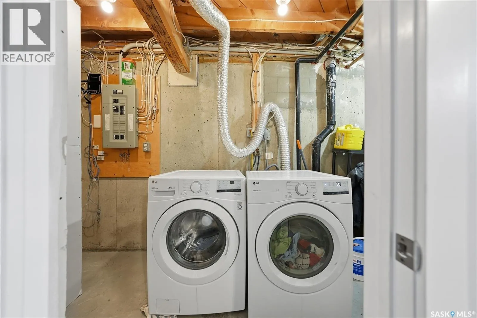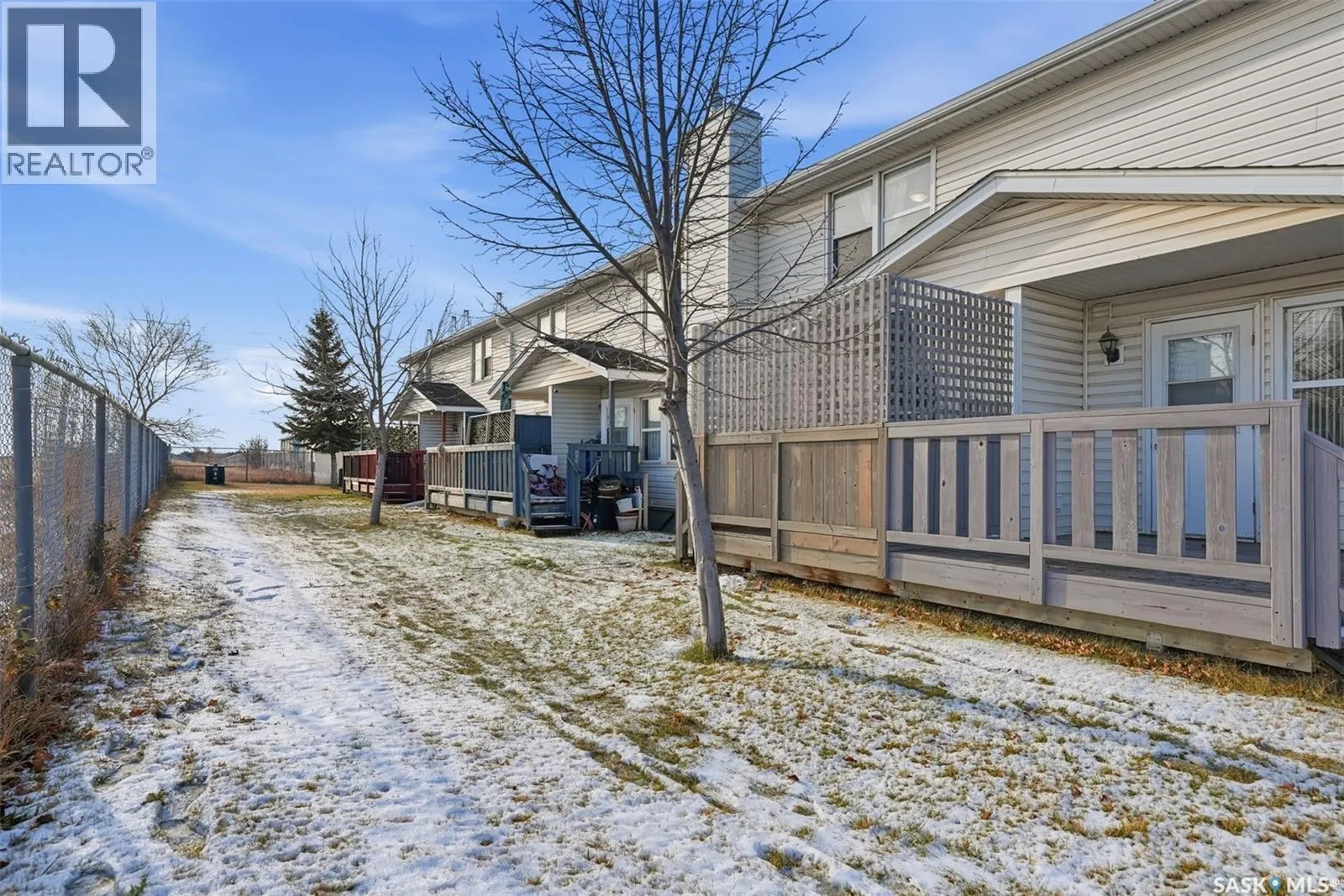 Comfortable affordable living with this 970 sq.ft two storey townhouse with a fully finished basement & many updates located in the Fairhaven area of Saskatoon. The perfect revenue property or home for a 1st time buyer. The main floor features a cozy front facing living room that has hardwood floors & an open kitchen to dining area that features many newer cupboards, tile backsplash, newer ss appliances & a microwave hood fan that vents directly outside. There is a deck with a privacy wall located just off the kitchen area & it walks out on to common grass area. The basement has been finished with a family area, a large bedroom, the laundry room, a rough in for an additional bathroom & storage under the stairs. The 2nd floor features 2 good sized bedrooms & a 4- piece bathroom. There is 1 electrified parking stall included located just in front with the option to assume an additional parking stall for $30 per month. This excellent starter home or potential revenue property comes complete with all appliances, washer, dryer & all window coverings. Snow removal, exterior upkeep, Heat & Water are included in the condo fee. Do not wait! Call to view! (id:27476)