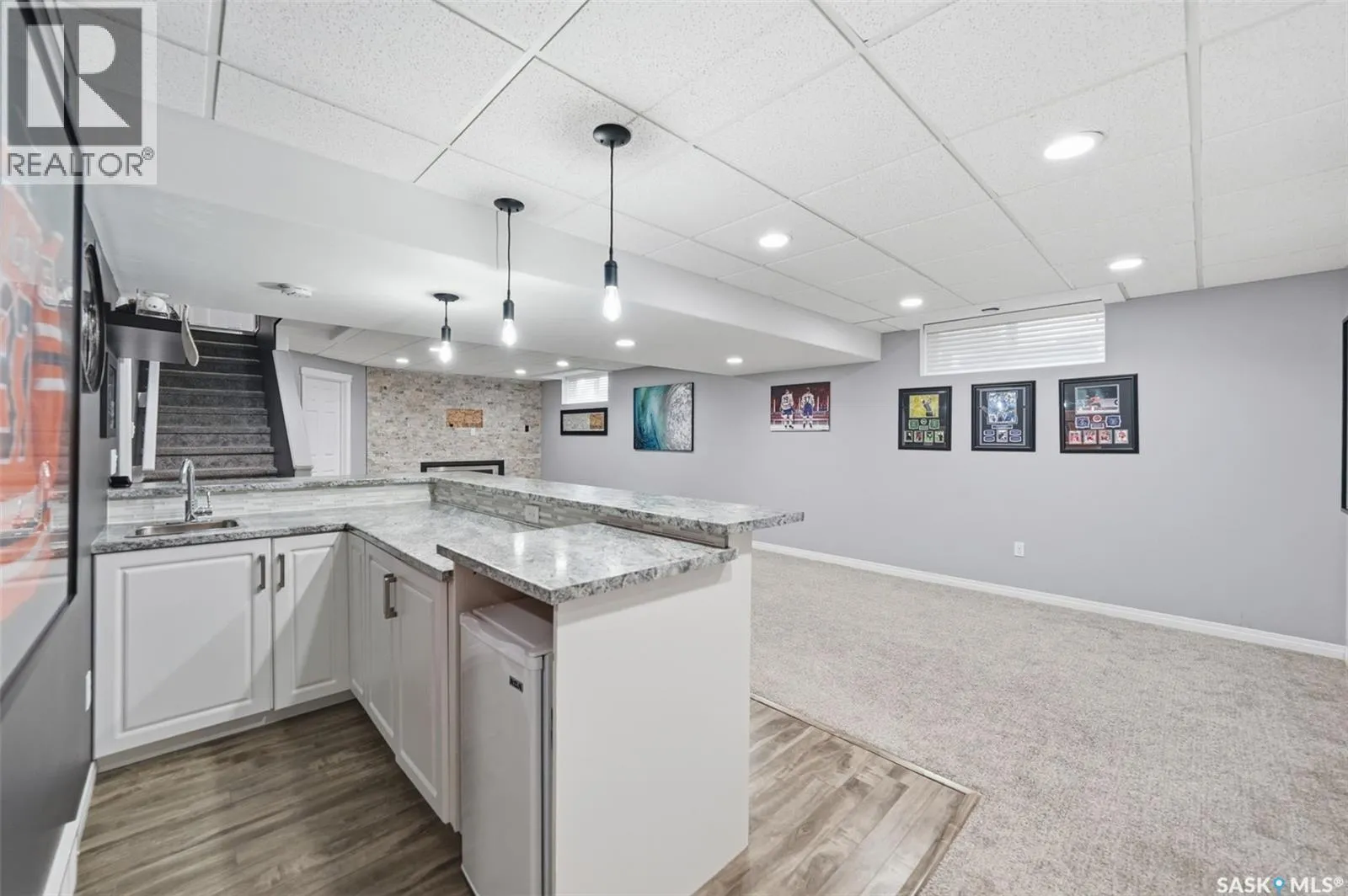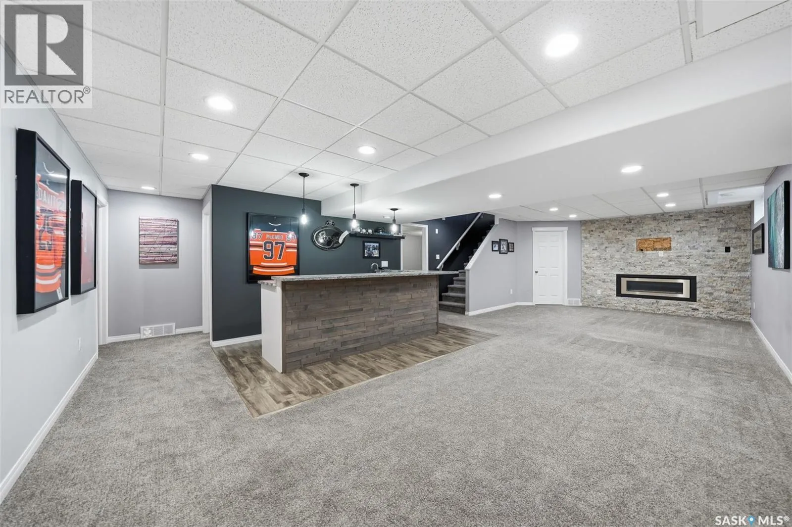 Welcome home to 223 Rempel Lane in the highly sought-after community of Stonebridge. This meticulously maintained bungalow offers peaceful tranquility and privacy backing onto the trees and Patricia Roe Park. With over 1,200 sq. ft. on the main floor and a fully developed basement, this home combines functionality with modern comfort. The open-concept main living area features vaulted ceilings, a spacious living room, and a bright dining area adjacent to the kitchen, which is equipped with stainless steel appliances, tile backsplash, and updated countertops. The main floor hosts three bedrooms, including a primary suite complete with a 3-piece ensuite, as well as an additional 4-piece bath. Downstairs, the inviting family room is anchored by a striking stone feature wall and gas fireplace, perfectly complemented by a wet bar and games area â an ideal space for entertaining or family movie nights. The basement also includes a large additional bedroom (no closet), a 3-piece bathroom, and a generous utility/laundry room offering ample storage. The double attached garage is heated for year-round comfort, and the extra-wide concrete driveway provides additional off-street parking. With a tranquil park setting out back and easy access to Stonebridge amenities, this property offers the perfect blend of convenience, comfort, and lifestyle. (id:27476)