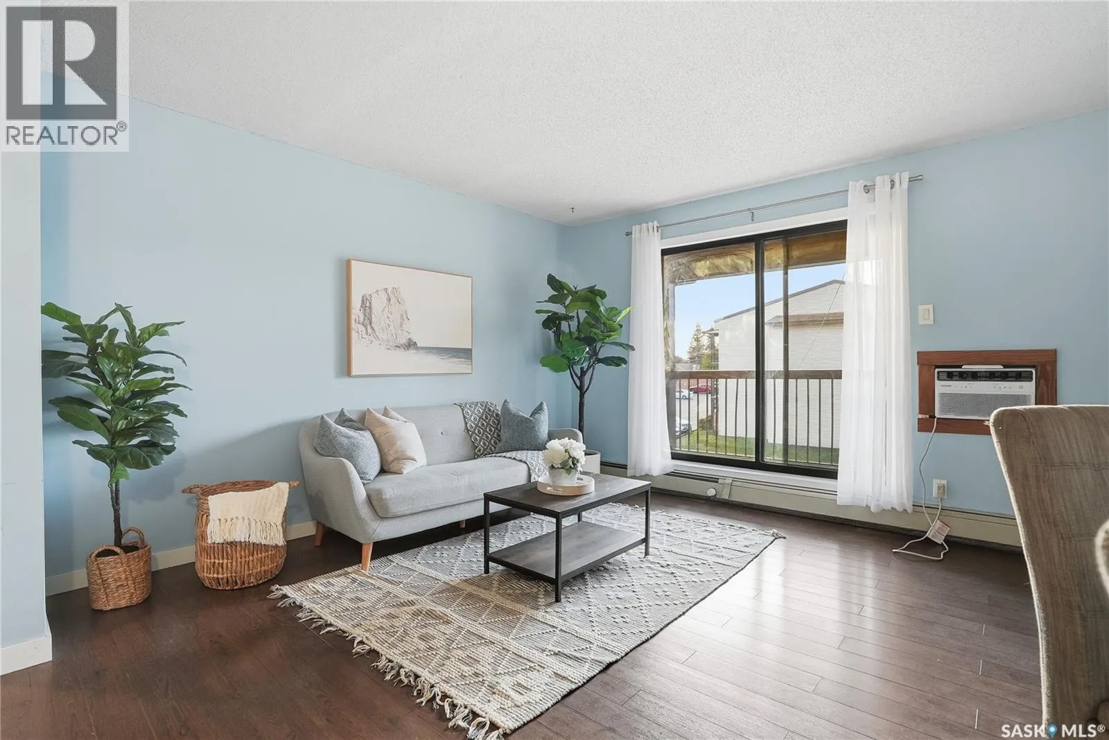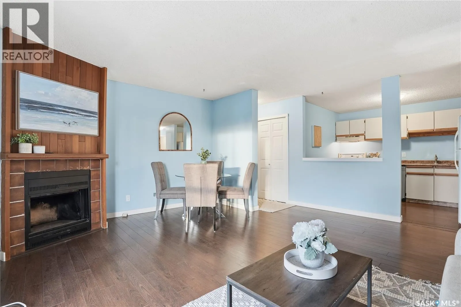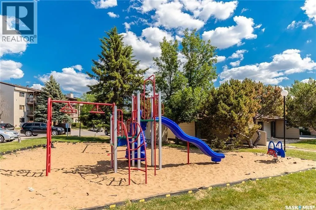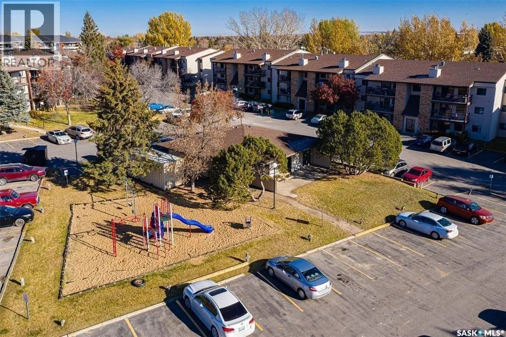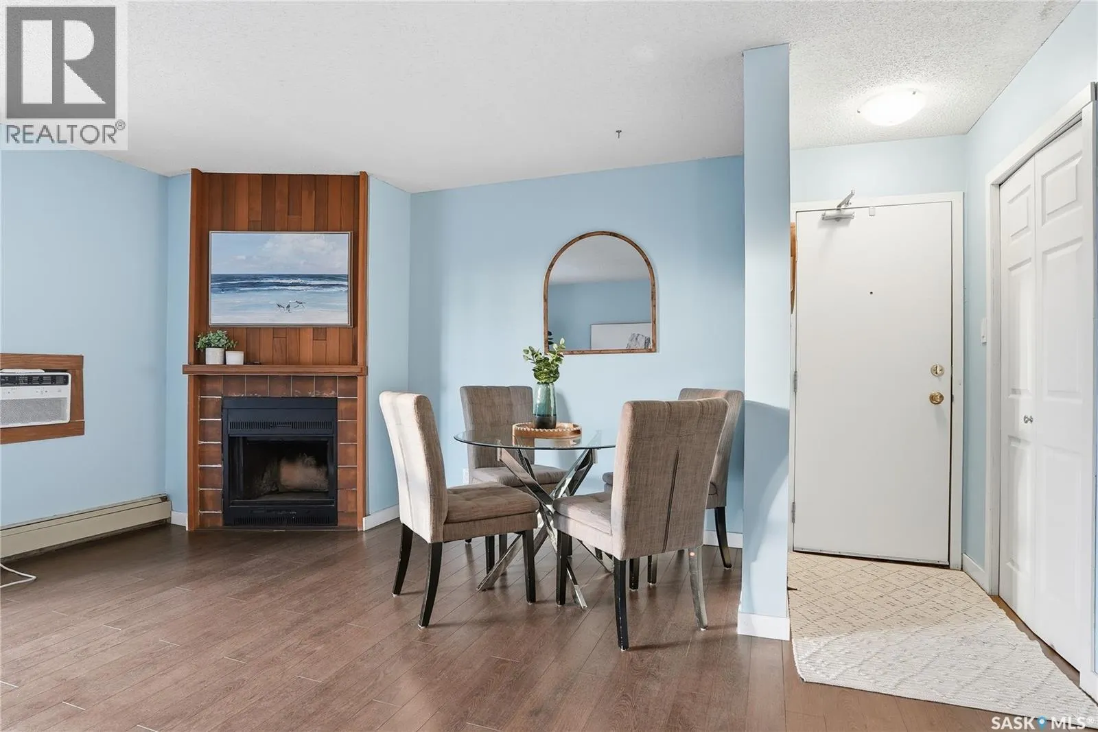 Welcome to #302-375 Kingsmere Boulevard in Lakeview, Saskatoon. This top floor corner unit offers modern living in a central location. Itâs a great investment for first time buyers, investors, those downsizing or seeking maintenance-free home ownership. Laminate flooring spans throughout the entire home (no dusty carpets here!), along with fresh paint, and neutral finishes. The kitchen includes lots of countertop area for prep, and plenty of cupboard space. The dining area nestles perfectly next to the living area, which has a lovely decorative fireplace hearth and mantle. Thereâs a âcat proofâ sliding screen door to a covered West-facing balcony, which includes a secure exterior storage room (perfect for winter tire storage, bikes, etc.). The unit includes one oversized bedroom, and one full bathroom. Extra space for storage is located in the hallway (potential future space for washer/dryer), along with a linen closet. There is one electrified parking stall conveniently located right at the front doors, plus visitor parking just steps away. The complex is a 7 minute drive from the University of Saskatchewan and is within close proximity to shopping and amenities on 8th Street. The building is situated near bus stops, and is a short walk to Lakeview pond and parks. Condo fees are $379.08/month and include all utilities with the exception of electricity. Shared coin-op/credit card laundry on 2nd floor. This building is pet-friendly (restrictions apply), and offers a recreation centre with exercise equipment, lounge area, foosball table, and an outdoor playground. (id:27476)