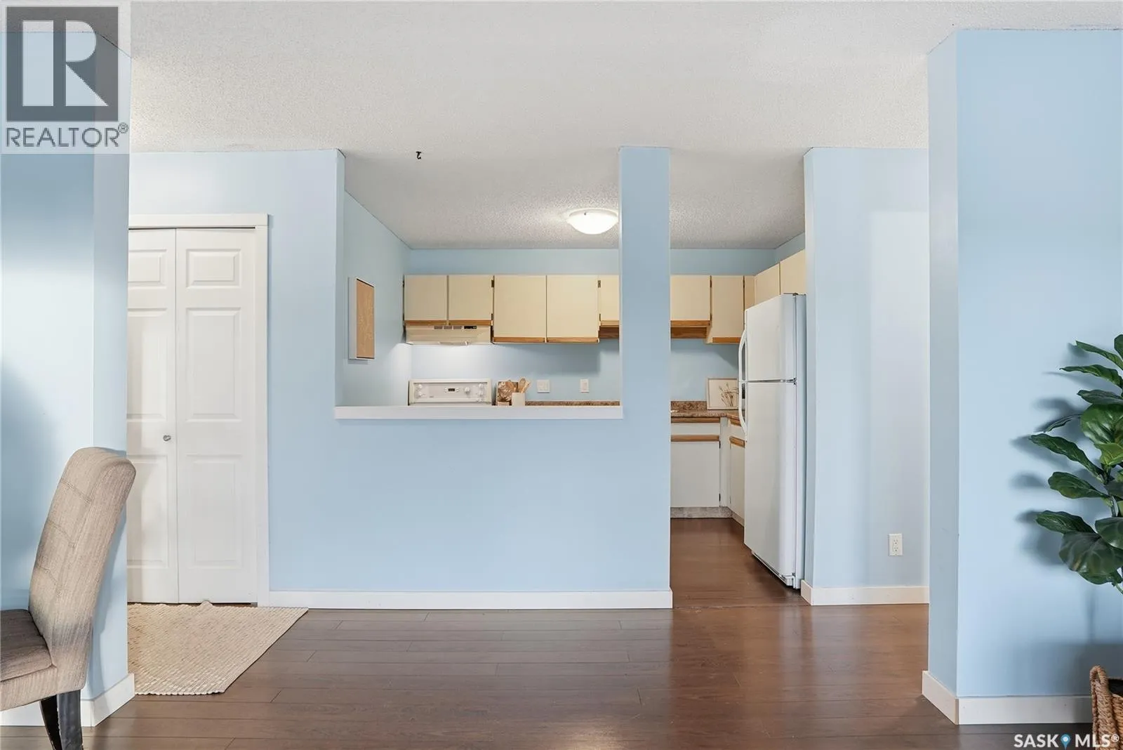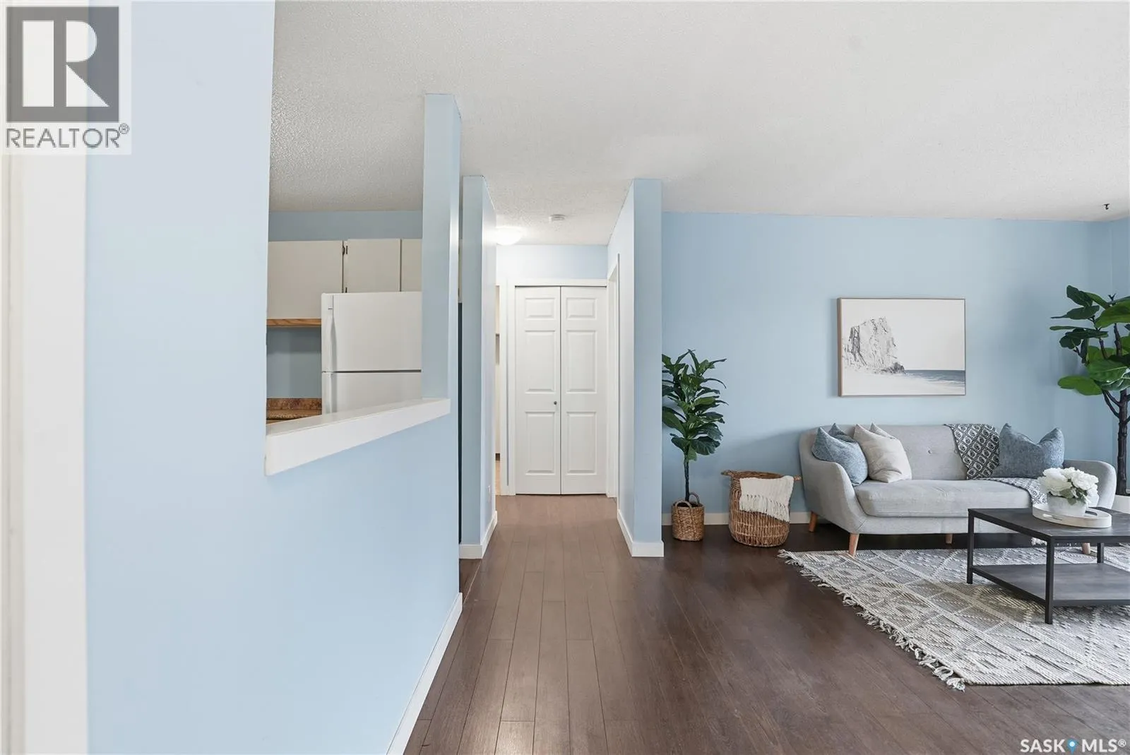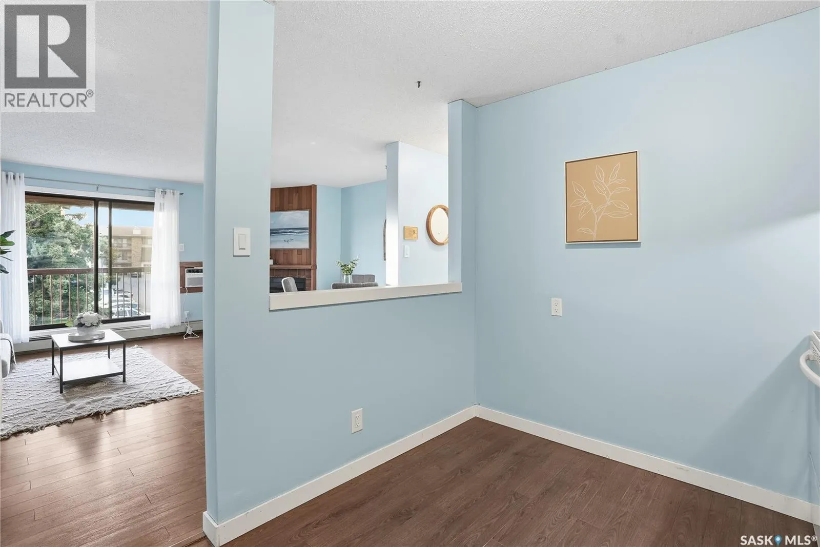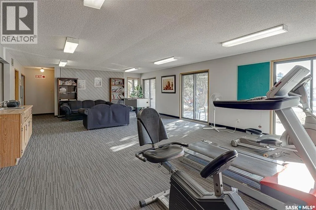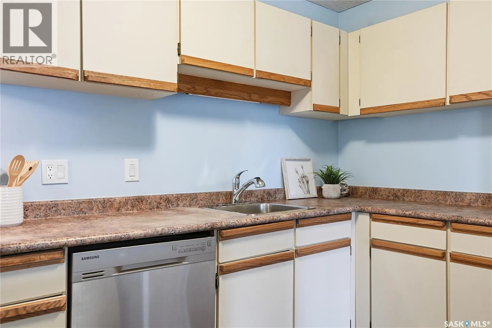 Welcome to #302-375 Kingsmere Boulevard in Lakeview, Saskatoon. This top floor corner unit offers modern living in a central location. Itâs a great investment for first time buyers, investors, those downsizing or seeking maintenance-free home ownership. Laminate flooring spans throughout the entire home (no dusty carpets here!), along with fresh paint, and neutral finishes. The kitchen includes lots of countertop area for prep, and plenty of cupboard space. The dining area nestles perfectly next to the living area, which has a lovely decorative fireplace hearth and mantle. Thereâs a âcat proofâ sliding screen door to a covered West-facing balcony, which includes a secure exterior storage room (perfect for winter tire storage, bikes, etc.). The unit includes one oversized bedroom, and one full bathroom. Extra space for storage is located in the hallway (potential future space for washer/dryer), along with a linen closet. There is one electrified parking stall conveniently located right at the front doors, plus visitor parking just steps away. The complex is a 7 minute drive from the University of Saskatchewan and is within close proximity to shopping and amenities on 8th Street. The building is situated near bus stops, and is a short walk to Lakeview pond and parks. Condo fees are $379.08/month and include all utilities with the exception of electricity. Shared coin-op/credit card laundry on 2nd floor. This building is pet-friendly (restrictions apply), and offers a recreation centre with exercise equipment, lounge area, foosball table, and an outdoor playground. (id:27476)