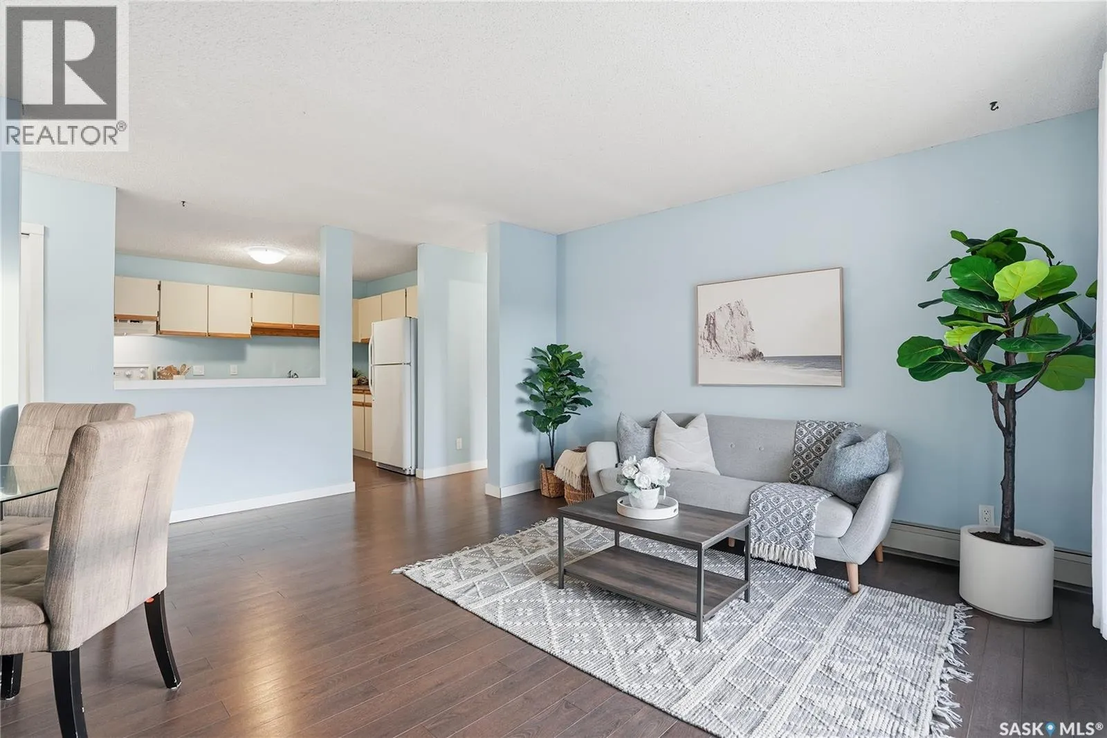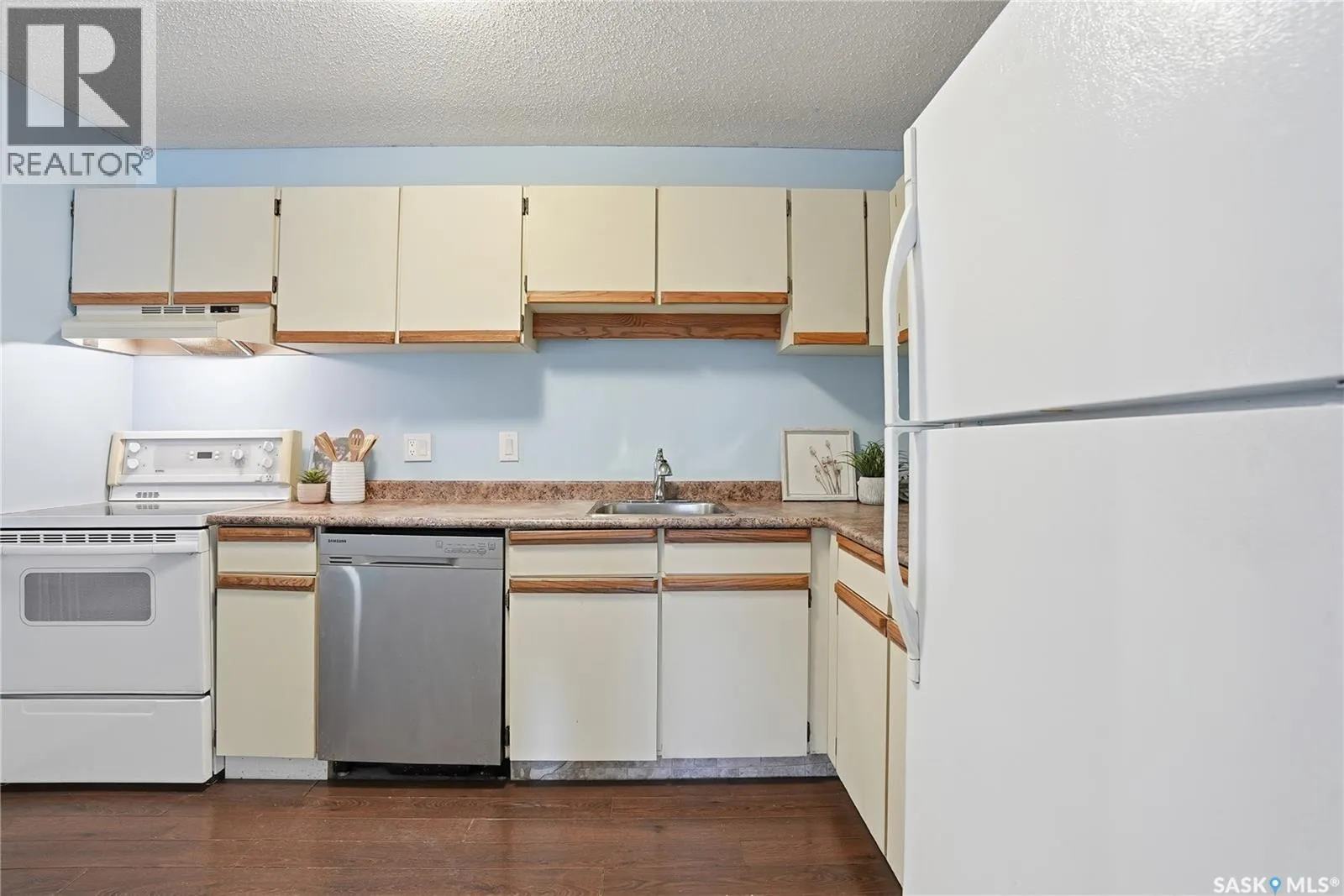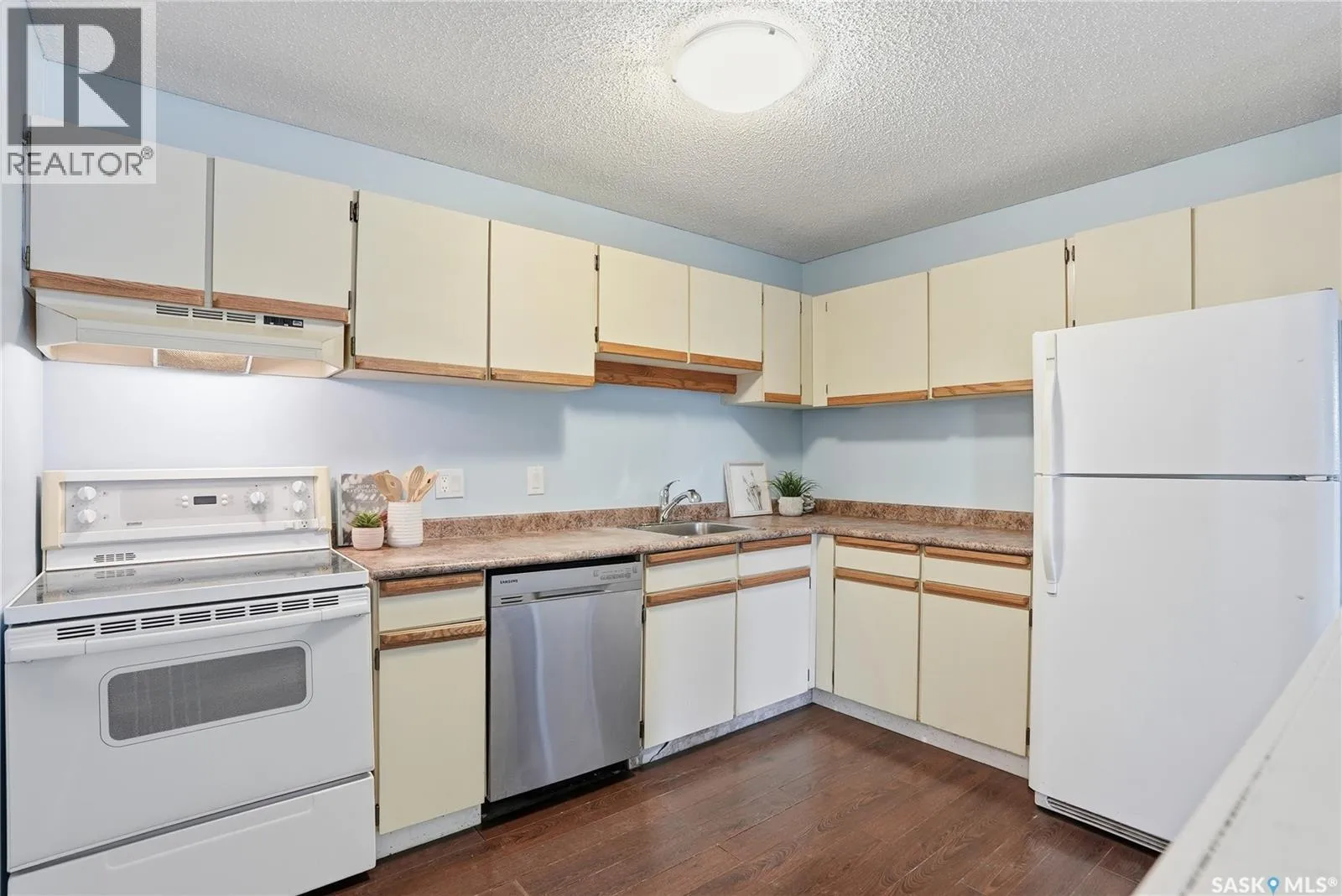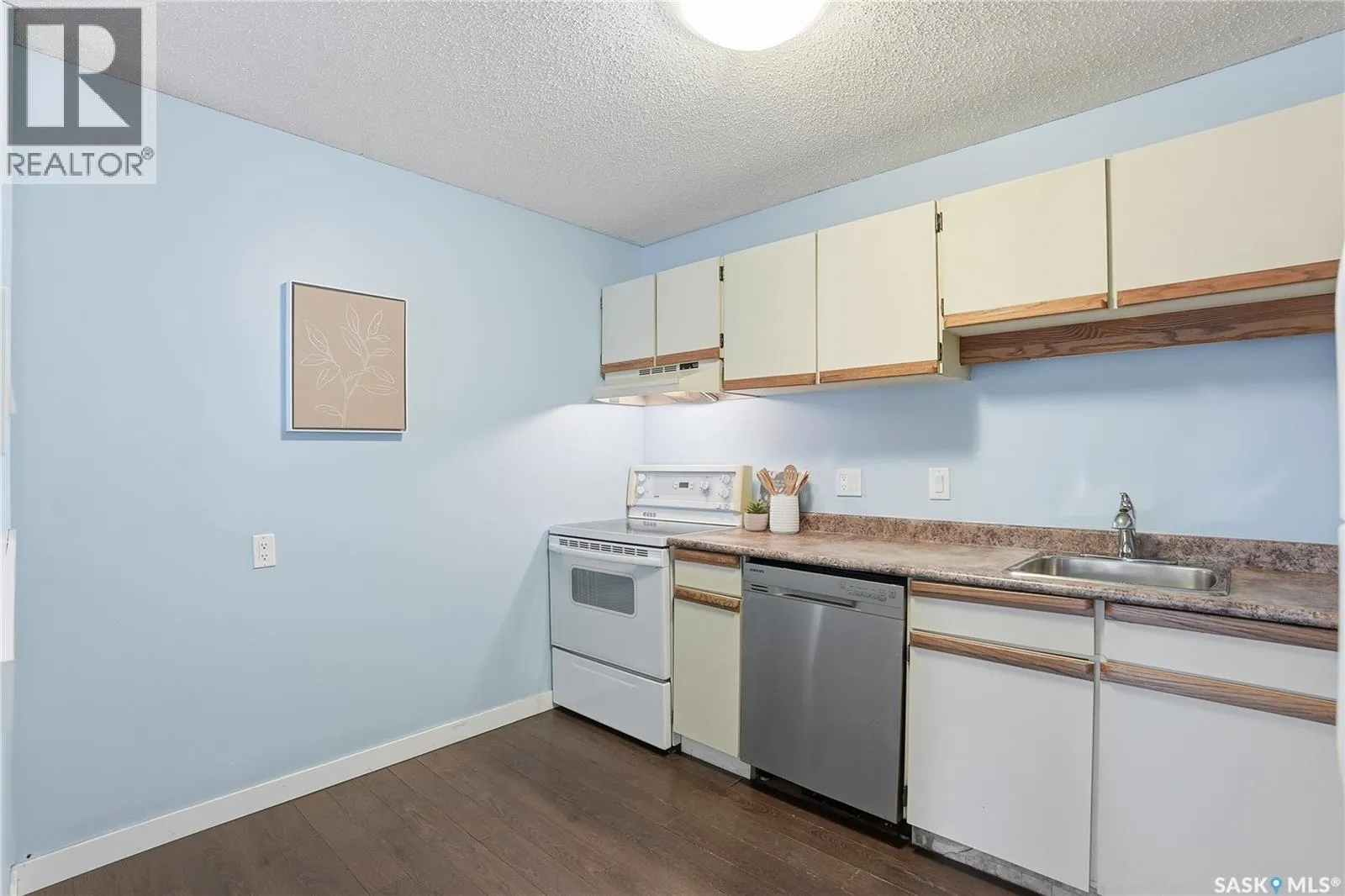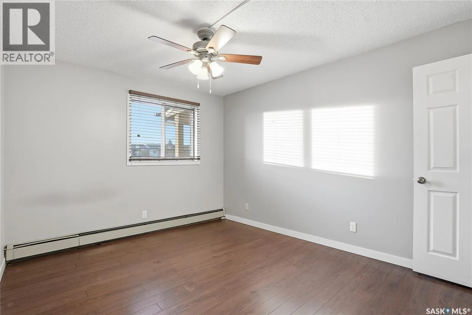 Welcome to #302-375 Kingsmere Boulevard in Lakeview, Saskatoon. This top floor corner unit offers modern living in a central location. Itâs a great investment for first time buyers, investors, those downsizing or seeking maintenance-free home ownership. Laminate flooring spans throughout the entire home (no dusty carpets here!), along with fresh paint, and neutral finishes. The kitchen includes lots of countertop area for prep, and plenty of cupboard space. The dining area nestles perfectly next to the living area, which has a lovely decorative fireplace hearth and mantle. Thereâs a âcat proofâ sliding screen door to a covered West-facing balcony, which includes a secure exterior storage room (perfect for winter tire storage, bikes, etc.). The unit includes one oversized bedroom, and one full bathroom. Extra space for storage is located in the hallway (potential future space for washer/dryer), along with a linen closet. There is one electrified parking stall conveniently located right at the front doors, plus visitor parking just steps away. The complex is a 7 minute drive from the University of Saskatchewan and is within close proximity to shopping and amenities on 8th Street. The building is situated near bus stops, and is a short walk to Lakeview pond and parks. Condo fees are $379.08/month and include all utilities with the exception of electricity. Shared coin-op/credit card laundry on 2nd floor. This building is pet-friendly (restrictions apply), and offers a recreation centre with exercise equipment, lounge area, foosball table, and an outdoor playground. (id:27476)