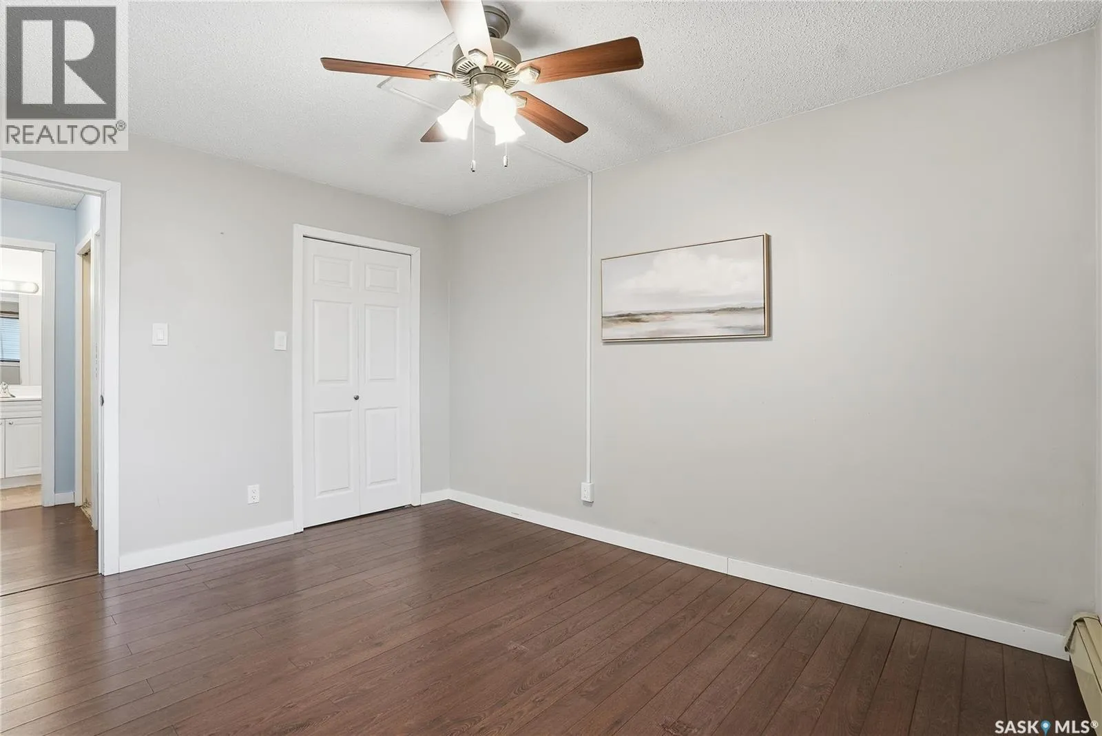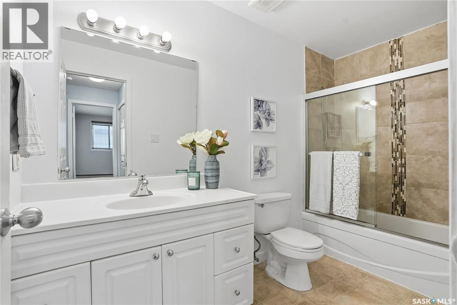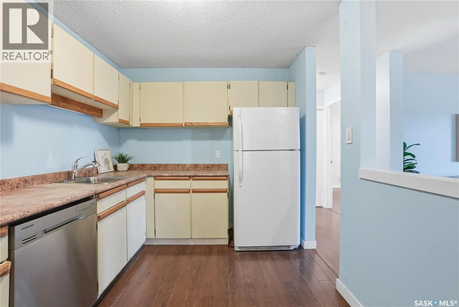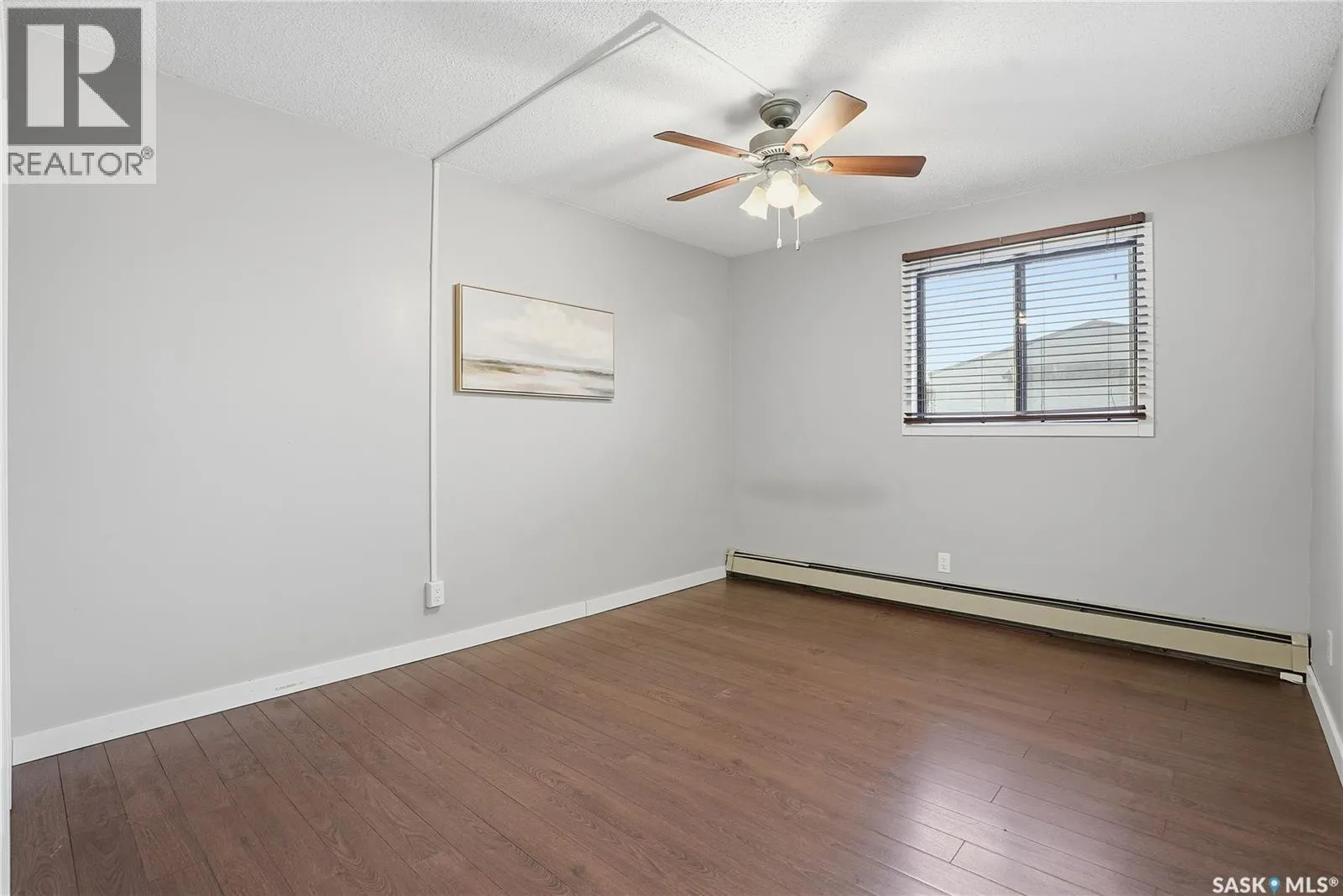 Welcome to #302-375 Kingsmere Boulevard in Lakeview, Saskatoon. This top floor corner unit offers modern living in a central location. Itâs a great investment for first time buyers, investors, those downsizing or seeking maintenance-free home ownership. Laminate flooring spans throughout the entire home (no dusty carpets here!), along with fresh paint, and neutral finishes. The kitchen includes lots of countertop area for prep, and plenty of cupboard space. The dining area nestles perfectly next to the living area, which has a lovely decorative fireplace hearth and mantle. Thereâs a âcat proofâ sliding screen door to a covered West-facing balcony, which includes a secure exterior storage room (perfect for winter tire storage, bikes, etc.). The unit includes one oversized bedroom, and one full bathroom. Extra space for storage is located in the hallway (potential future space for washer/dryer), along with a linen closet. There is one electrified parking stall conveniently located right at the front doors, plus visitor parking just steps away. The complex is a 7 minute drive from the University of Saskatchewan and is within close proximity to shopping and amenities on 8th Street. The building is situated near bus stops, and is a short walk to Lakeview pond and parks. Condo fees are $379.08/month and include all utilities with the exception of electricity. Shared coin-op/credit card laundry on 2nd floor. This building is pet-friendly (restrictions apply), and offers a recreation centre with exercise equipment, lounge area, foosball table, and an outdoor playground. (id:27476)