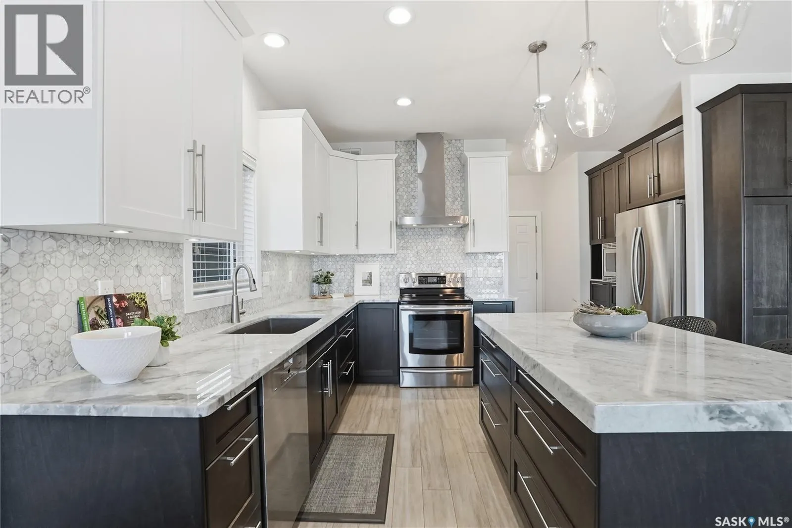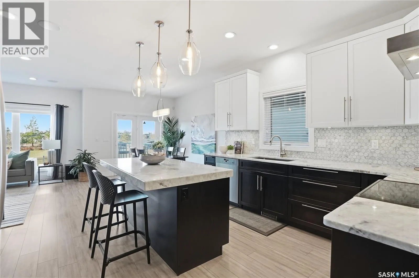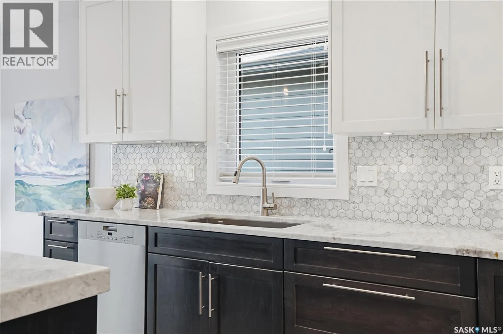 Wow! This home is truly a gem. This immaculate custom-built Fraser Homes bungalow (2014) offers 1730 ft. of fully developed living space, designed with functionality and luxury in mind. Featuring 6 bedrooms + a den, this home boasts high-end finishes, 9â ceilings, a sound system throughout, and multi-zone heating and cooling. The chefâs kitchen includes a large island, custom maple cabinetry, stainless steel appliances, marble backsplash, and quartzite granite countertops. The primary suite features a spacious walk-in closet and ensuite with dual sinks and glass shower. All three bathrooms offer heated tile floors and Kohler fixtures. Enjoy maintenance-free landscaping with zero-scape turf, flagstone pathways, composite fencing, and a two-tier deck backing the park. Exterior upgrades include Trimlight LED event lighting (phone-controlled), polyaspartic-coated garage floors, and Hardie Board siding. With southwest exposure, three natural gas outlets, and a triple concrete drive, this home blends quality, comfort, and design in every detail. (id:27476)