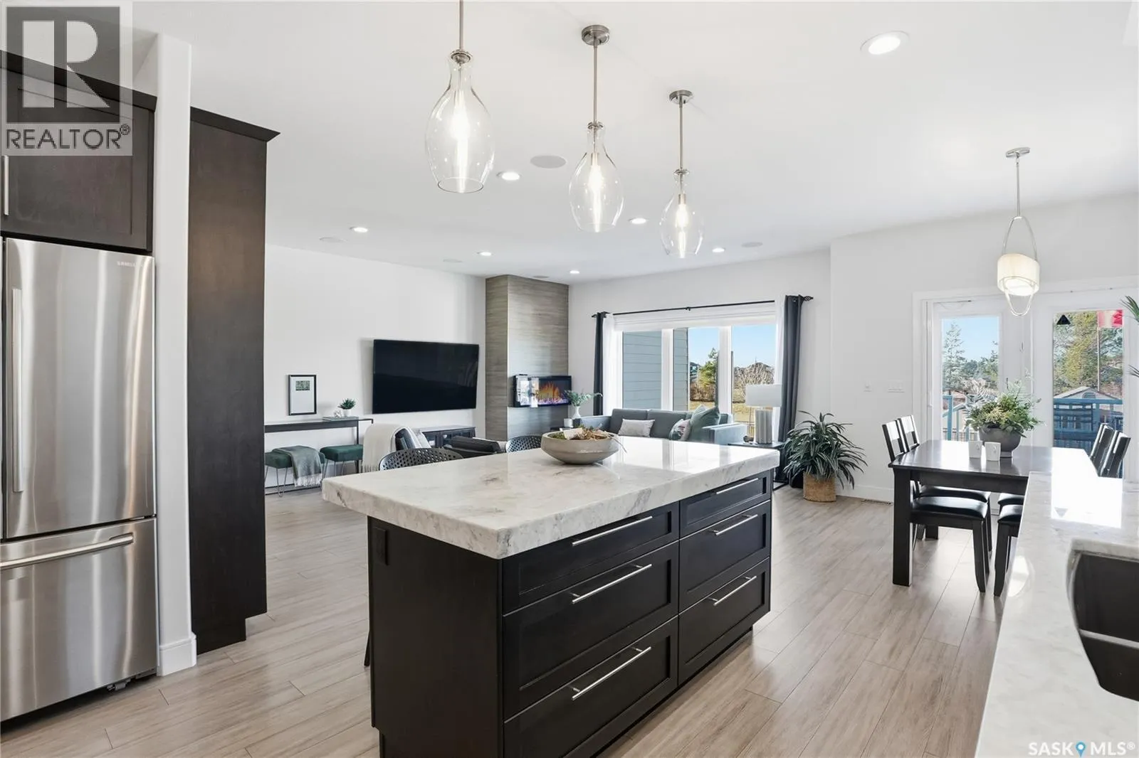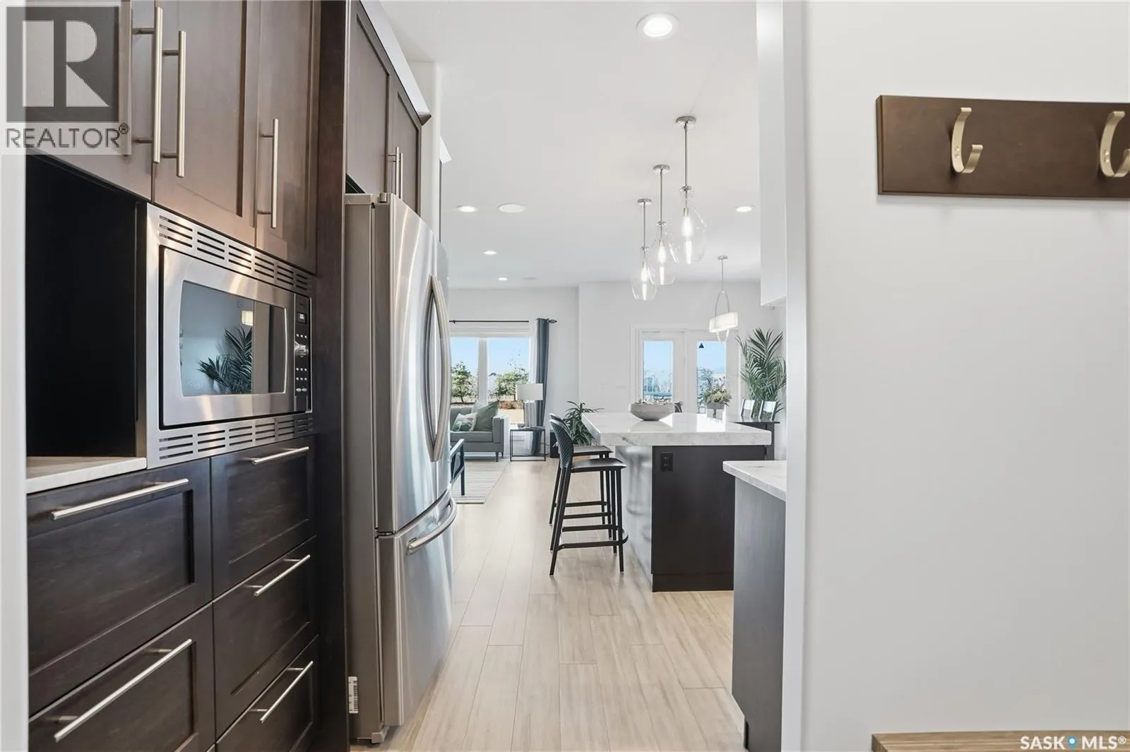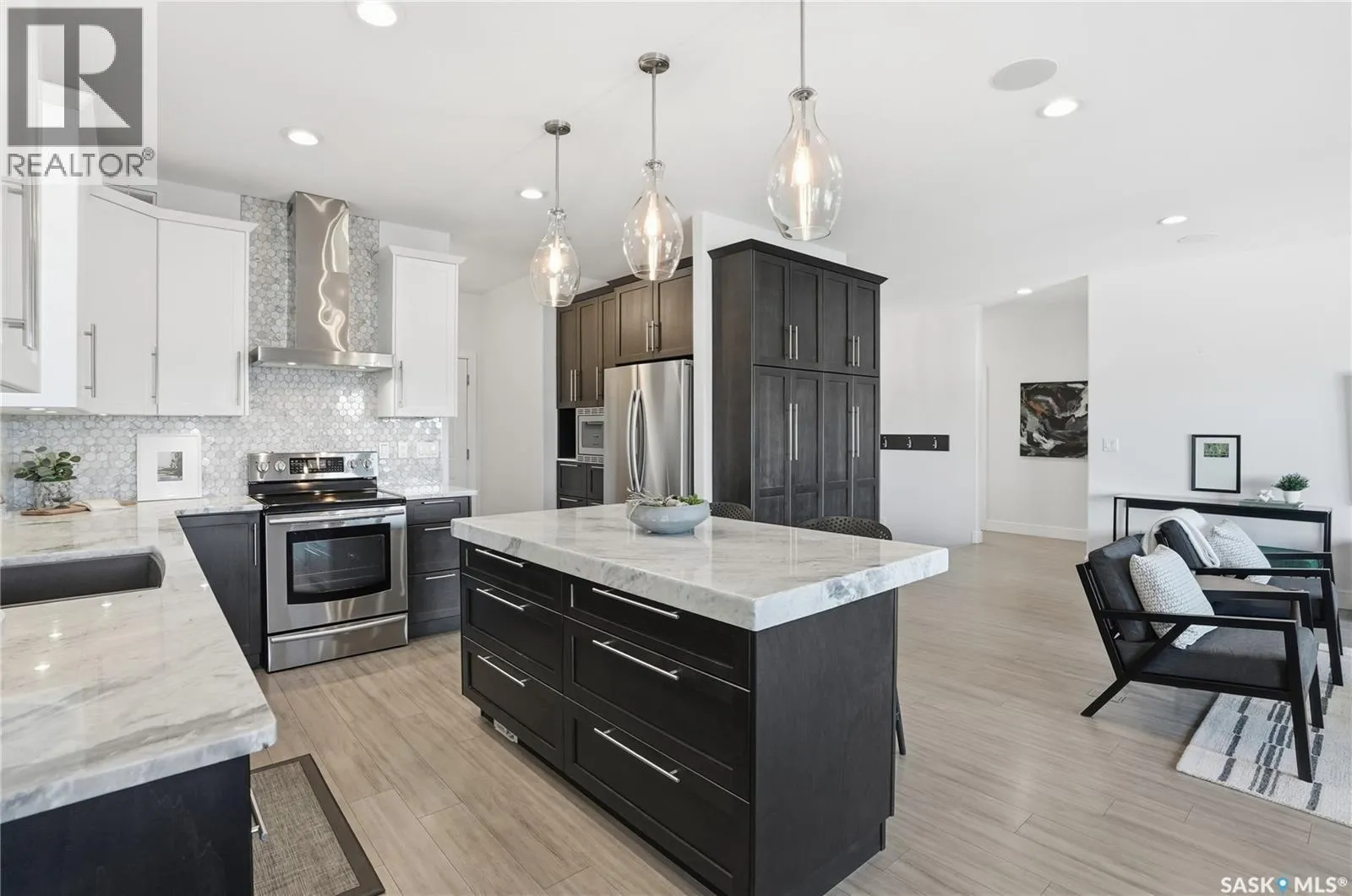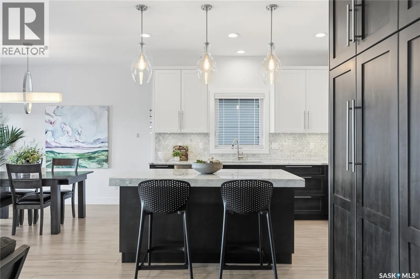 Wow! This home is truly a gem. This immaculate custom-built Fraser Homes bungalow (2014) offers 1730 ft. of fully developed living space, designed with functionality and luxury in mind. Featuring 6 bedrooms + a den, this home boasts high-end finishes, 9â ceilings, a sound system throughout, and multi-zone heating and cooling. The chefâs kitchen includes a large island, custom maple cabinetry, stainless steel appliances, marble backsplash, and quartzite granite countertops. The primary suite features a spacious walk-in closet and ensuite with dual sinks and glass shower. All three bathrooms offer heated tile floors and Kohler fixtures. Enjoy maintenance-free landscaping with zero-scape turf, flagstone pathways, composite fencing, and a two-tier deck backing the park. Exterior upgrades include Trimlight LED event lighting (phone-controlled), polyaspartic-coated garage floors, and Hardie Board siding. With southwest exposure, three natural gas outlets, and a triple concrete drive, this home blends quality, comfort, and design in every detail. (id:27476)