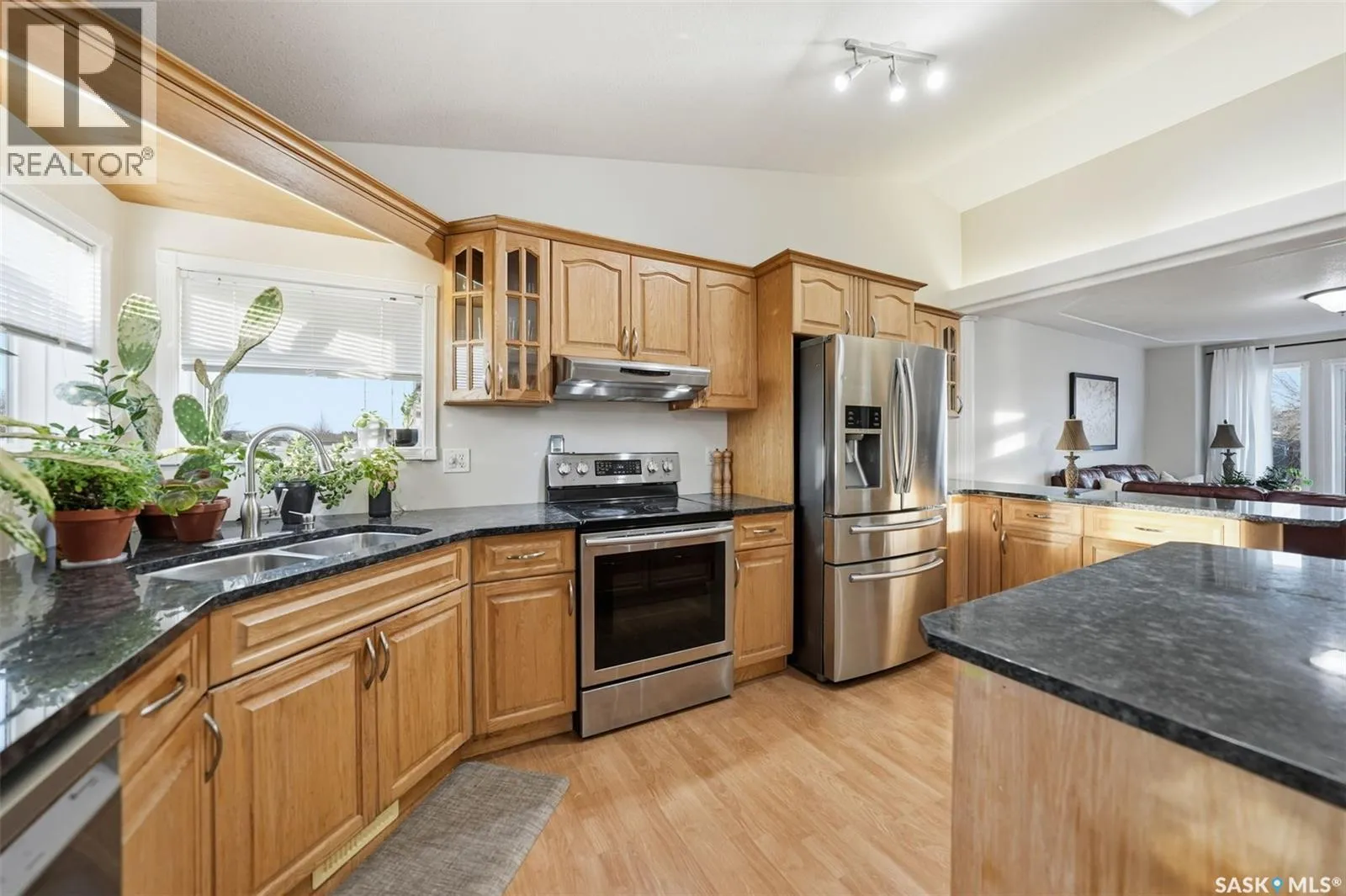Welcome to 151 Kutz Cres. in Arbor Creek, backing onto peaceful green space! This 1500 sq ft bi-level home offers a spacious foyer with a walk-through closet leading to the attached, insulated garage. The main floor is bright and open with vaulted ceilings, plenty of windows, a large dining area, and a kitchen with updated countertops and appliances. Down the hall, youâll find the laundry room, a 4-piece bath, the primary bedroom with a 4-piece ensuite and walk-in closet, plus two additional bedrooms. The lower level features a huge family room, a brand-new 4-piece bath, a large bedroom with new vinyl plank flooring, and another room perfect for a bedroom, office, or extra living space. The furnace, air conditioning, and water heater are all new, and the shingles were replaced in recent years. Outside, enjoy a large west-facing deck with no backyard neighbours, along with a sandbox, garden space, and storage under the deck. Don't miss your chance to own this spacious, well cared for home in a great area! (id:27476)