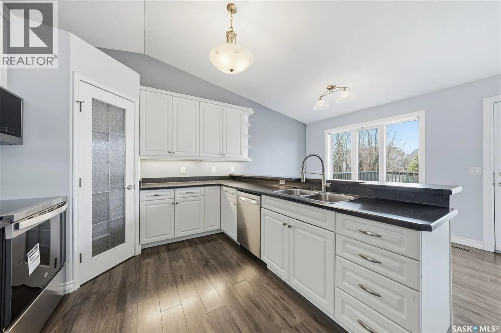 Welcome to 310 Carr Crescent, a beautifully maintained bilevel home ideally situated in the highly sought-after community of Silverspring. Thoughtfully designed for comfort and function, this property features a semi walk-out basement and an impressive 24x26 heated attached garage, perfect for those who value extra workspace or comfortable year-round vehicle storage. The main floor offers a bright and inviting layout with an abundance of natural light, highlighted by durable laminate flooring throughoutâno carpet anywhere. The living and dining areas flow seamlessly into a well-equipped kitchen with ample cabinetry and direct access to the backyard deck (with hook up for gas BBQ). Youâll find two comfortable bedrooms on the main level, along with the convenience of main floor laundry. The lower level continues to impress with large windows offering an abundance of natural light, two additional spacious bedrooms, 4 piece bathroom, a large family room ideal for relaxing or entertaining, and a semi walk-out design that offers access to the backyard. This rear entry could work perfectly for anyone with a home based business allowing their clients to access the basement from the back of the home. Practicality is evident throughout, including a two-zone heating system allowing separate temperature control for the main floor and basement as well as a new central AC in â24 for year round comfort. Outside, enjoy the large west facing deck with a generous storage area beneathâan excellent bonus for seasonal items or outdoor gear. Additional recent updates include a new dishwasher and stove. Set on a quiet crescent close to schools, parks, walking trails, and all amenities, this home offers an exceptional blend of comfort, functionality, and location. The perfect opportunity in one of Saskatoonâs most desirable neighbourhoods. (id:27476)