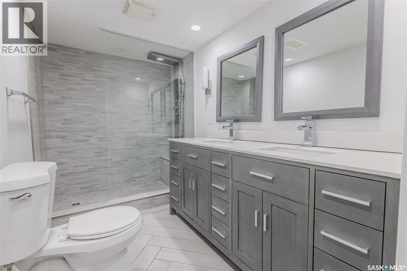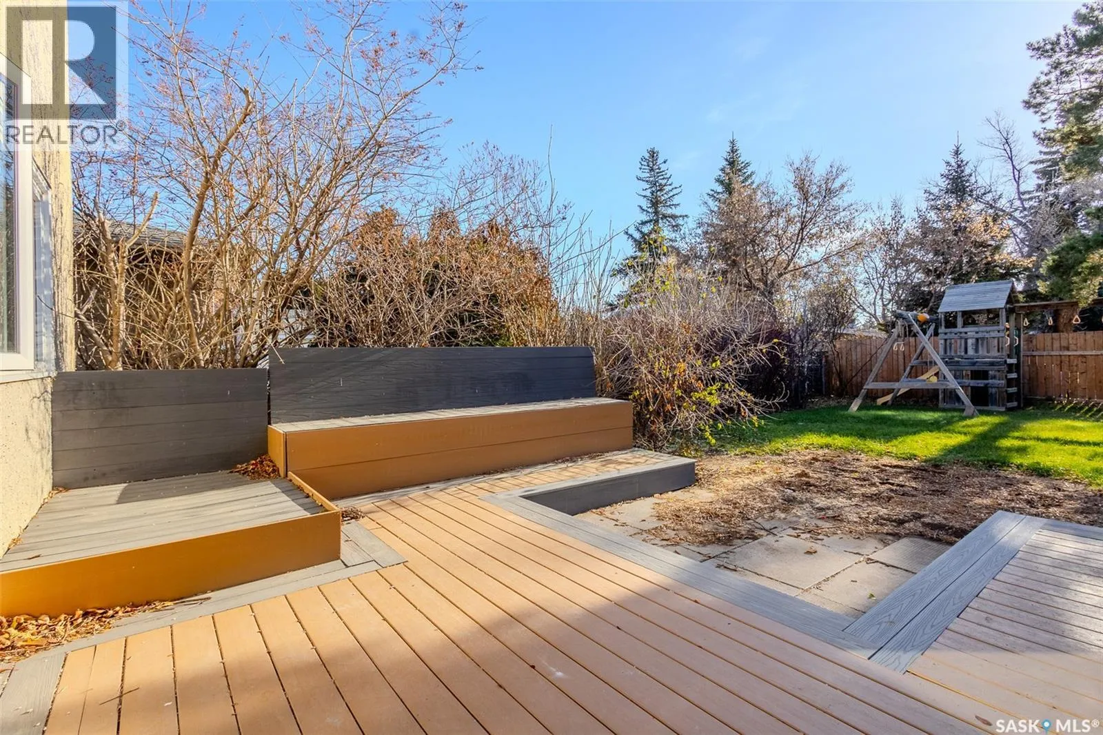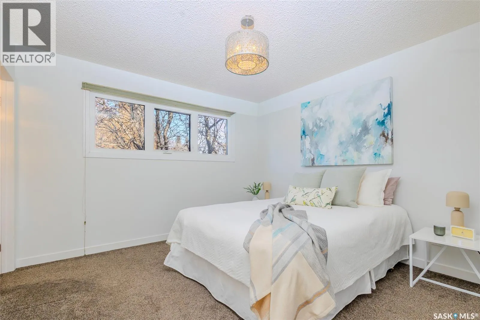 Welcome to 73 Red River Road in the highly coveted River Heights neighborhood, just steps from the Meewasin trails. This beautifully updated 4-level split offers a functional layout thatâs perfect for family living. Up a few stairs from the front entry, youâll find a bright living area with hardwood floors, a semi-formal dining space with a large window, and a kitchen featuring updated stainless steel appliances and direct access to the upper back deck, ideal for morning coffee or summer barbecues. Just off the kitchen, a few steps down, is a cozy family room with a gas fireplace and a south-facing window overlooking the backyard. Completing this level is a versatile bedroom/office and a convenient two-piece bath with laundry. Upstairs, youâll find two secondary bedrooms, an updated four-piece bathroom, and the primary bedroom complete with a three piece en-suite. The fully developed lower level adds even more living space with a rec room, a bedroom with en-suite, ideal for guests or a teenage retreat, and a crawlspace providing plenty of additional storage. Outside, the yard is fully finished with a two-tier composite deck with under-deck storage, a shed, U/G sprinklers, and a detached heated garage. Recent updates include garage heater and OSB/insulation (2018), shingles (2023), water heater (2022), basement reno with spray foam insulation (2018), composite deck (2022), blown-in attic insulation (2012), all windows (2021), and a new electrical panel (2018). Thoughtfully updated and situated in one of Saskatoonâs most sought after locations, this home combines comfort, function, and lifestyle. River Heights is known for its mature trees, quiet streets, and unbeatable access to the Meewasin Valley, making it ideal for those who enjoy an active outdoor lifestyle. This homeâs rare, highly functional split-level layout offers space and flow thatâs hard to find, perfect for both growing families and those who love to entertain. Call your Realtor® today! As per the Sellerâs direction, all offers will be presented on 11/17/2025 3:00PM. (id:27476)