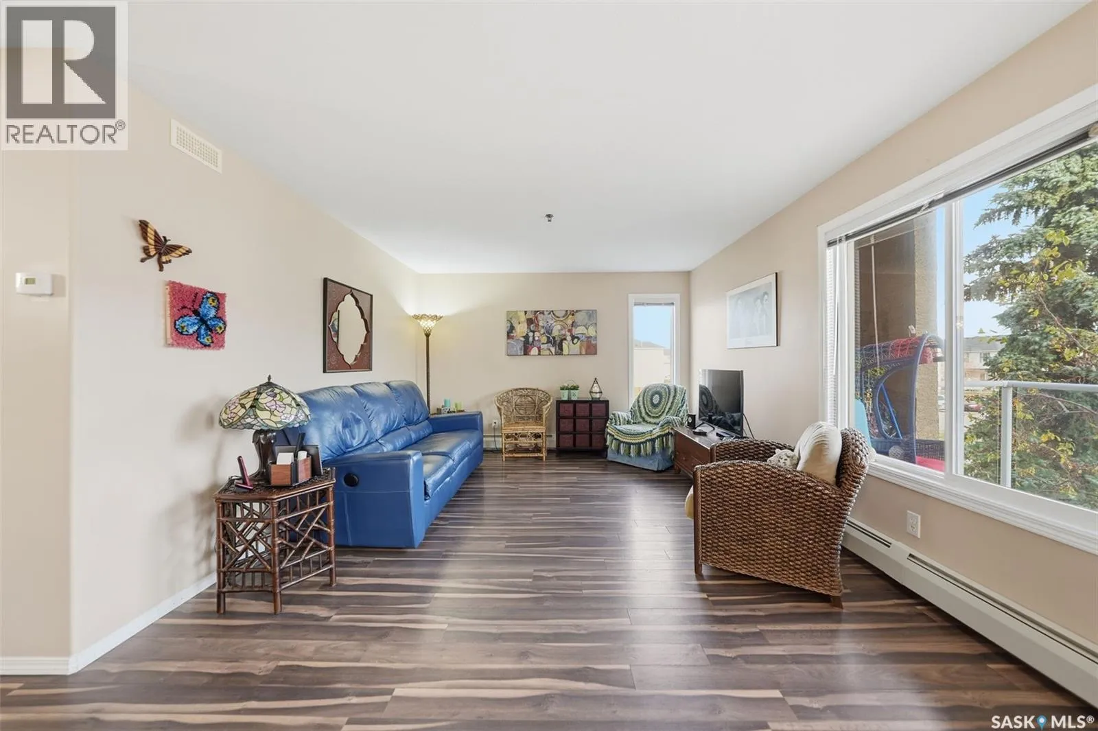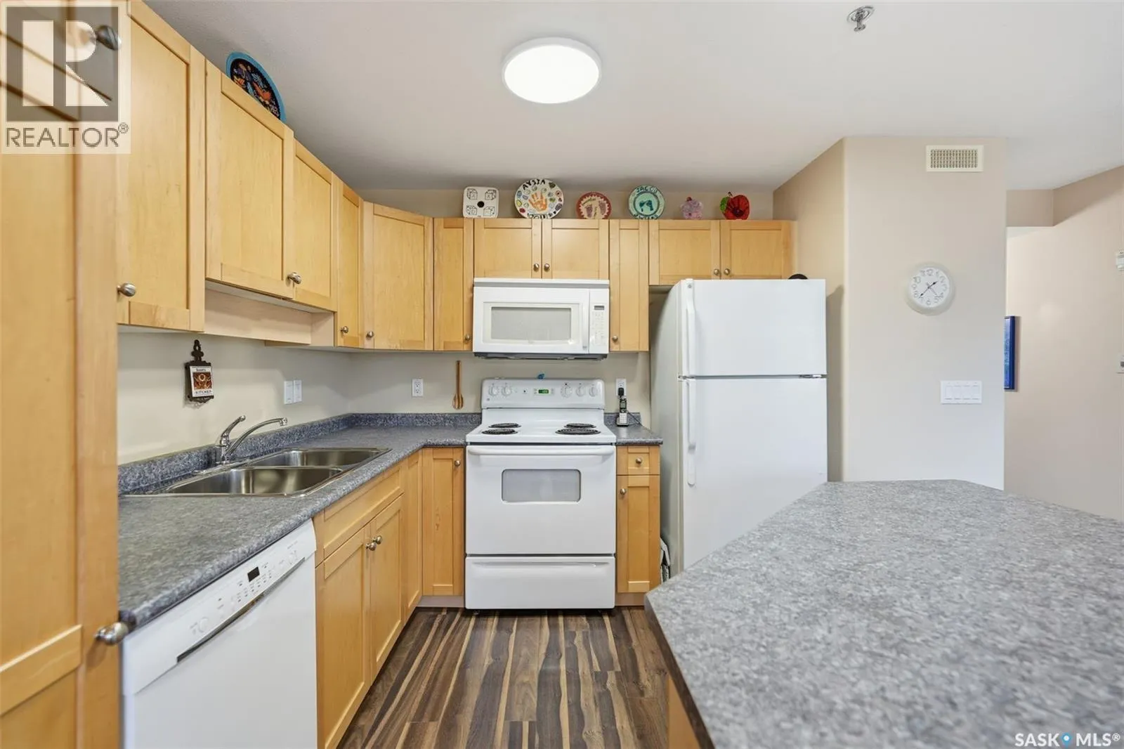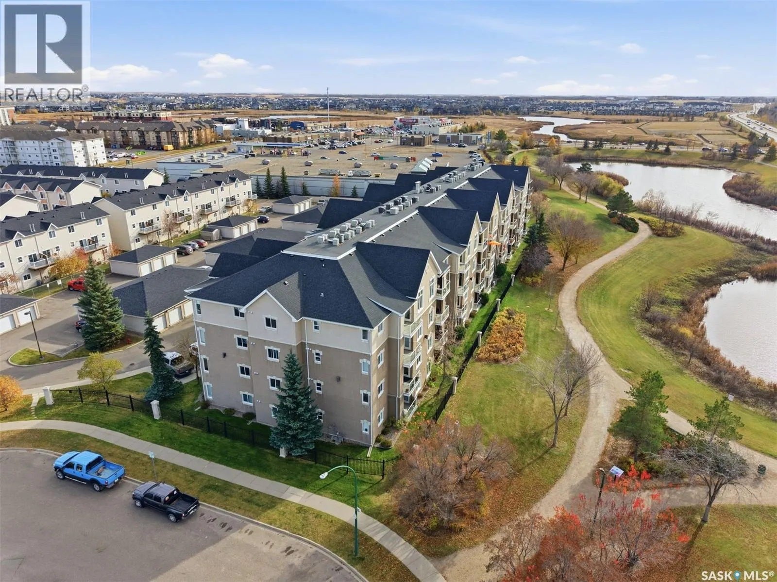 Discover this bright and inviting corner unit in the heart of Lakewood, offering more natural light, privacy, and comfort than most units. Featuring two generously sized bedrooms, the primary includes a three-piece ensuite with the potential for double sinks (the second sink is already roughed in). The open-concept floor plan connects the kitchen, complete with added pantry storage and a built-in desk area, to the dining and living room, creating a warm and functional space for entertaining or relaxing. Bedrooms and bathrooms are thoughtfully tucked away from the main living area, providing privacy. Enjoy your morning coffee or evening unwind on the east-facing balcony, perfect for catching the sunrise. This unit also features in-suite laundry, a convenient storage room, and, rare for condos, central air conditioning throughout. Beyond the unit, the building offers a welcoming community with a coffee/social room, exercise area, and BBQ patio overlooking the lake. Step outside to explore beautiful walking paths connecting to Lakewood, Rosewood, and Heritage neighbourhoods, some of the cityâs best! Walking distance to grocery store, restaurants, vet, shoppers, fire hall and some shopping. This pet-friendly building (up to 40 lbs) also includes one electrified surface parking stall. A rare blend of comfort, convenience, and natural light, donât miss your opportunity to call this corner condo home! Call TODAY to book your next showing! (id:27476)