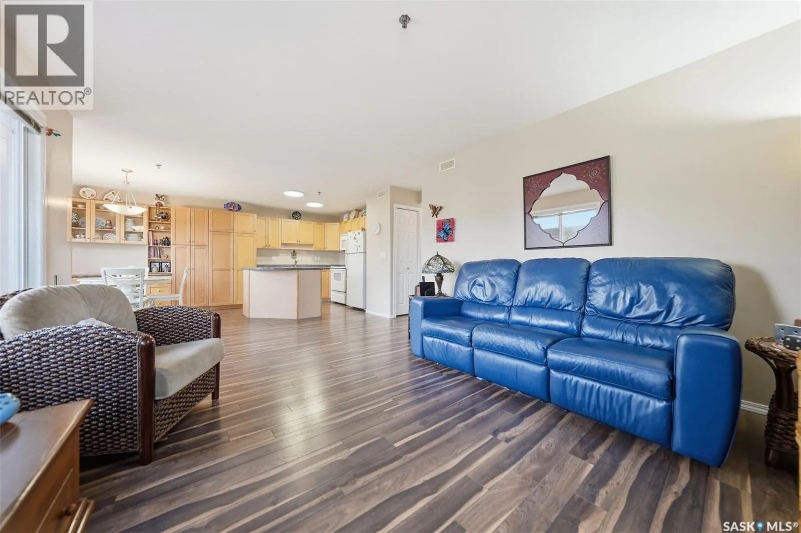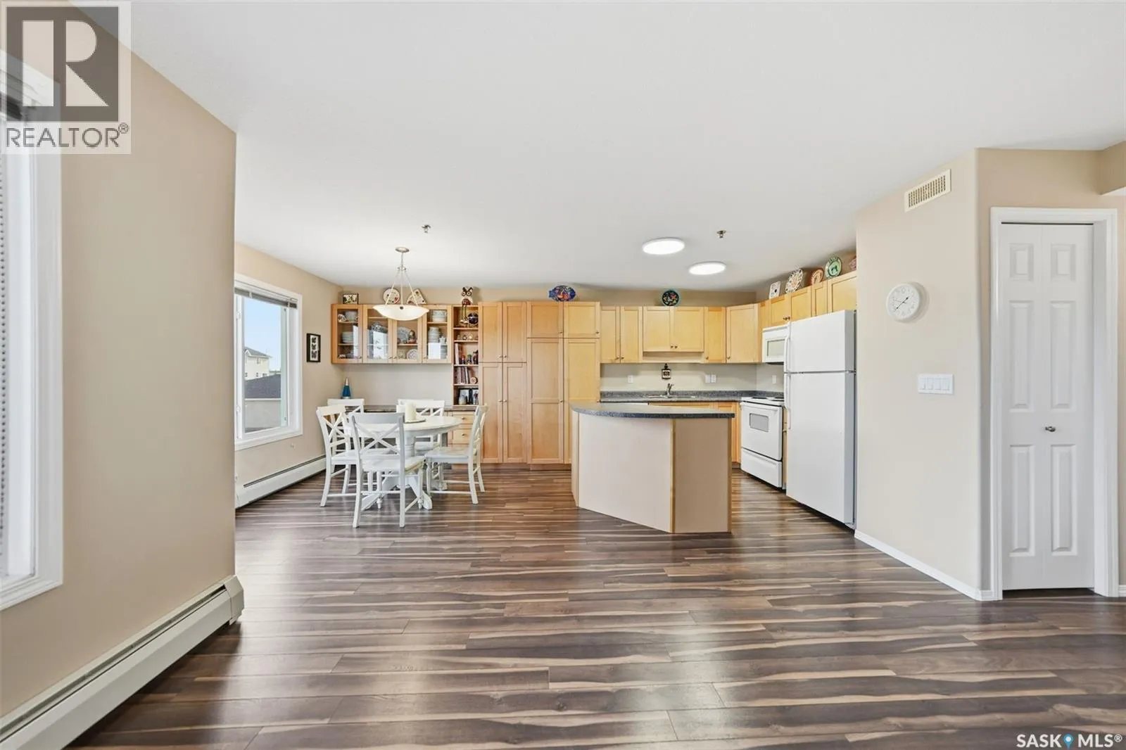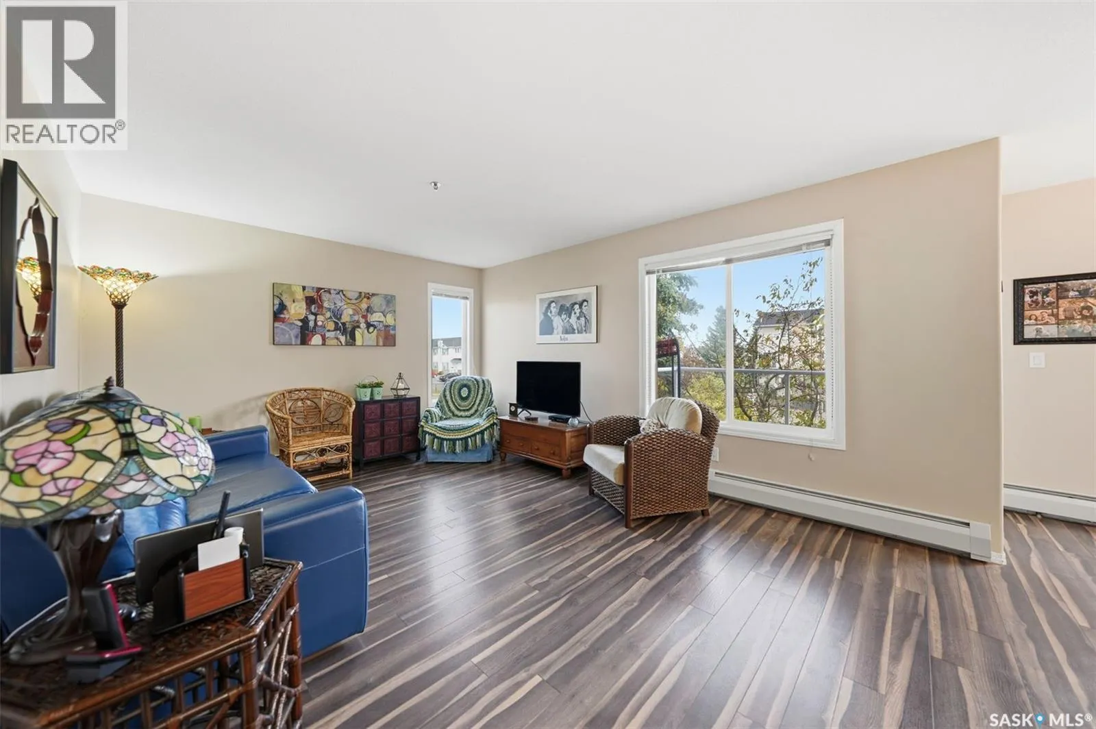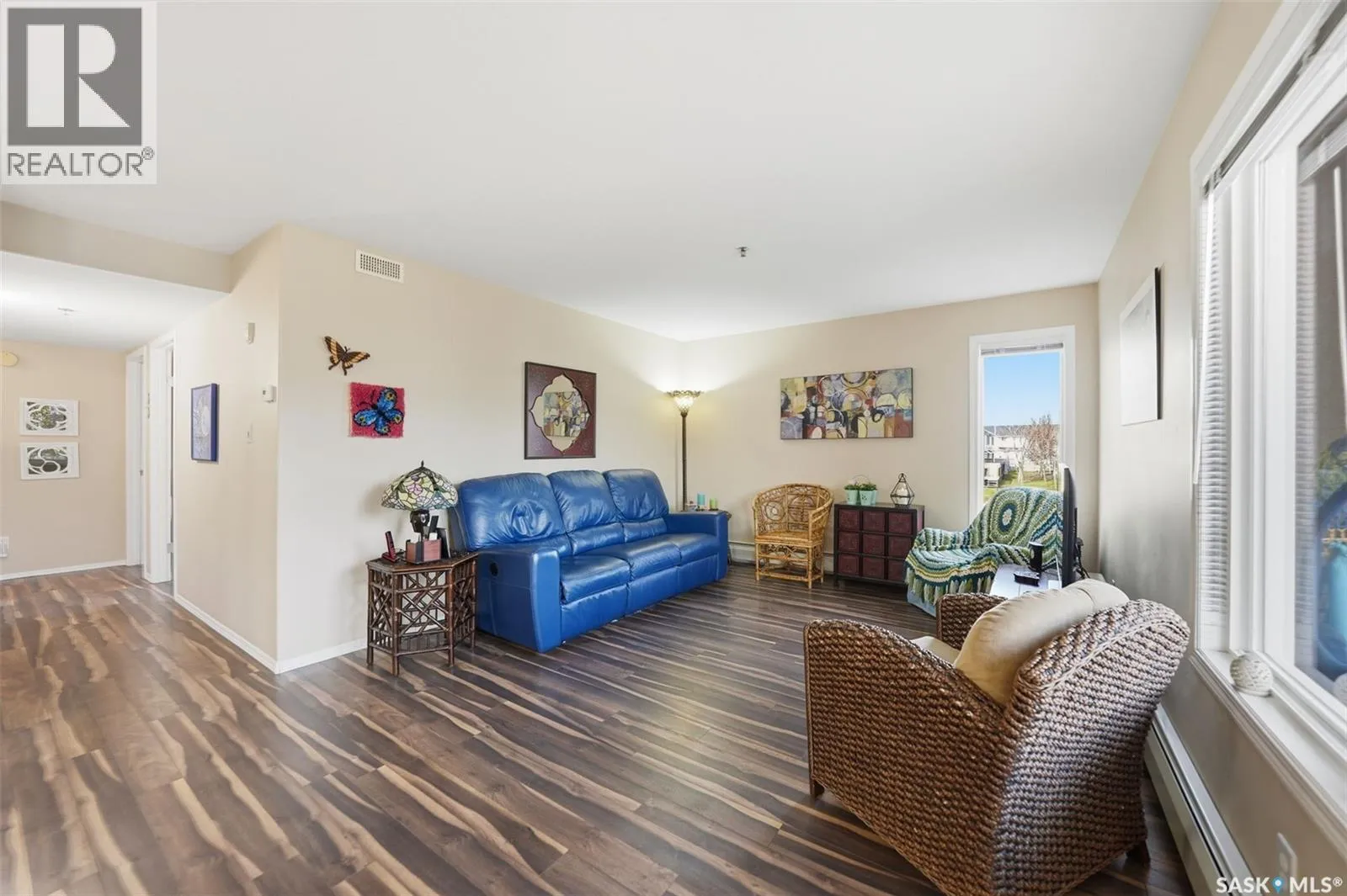 Discover this bright and inviting corner unit in the heart of Lakewood, offering more natural light, privacy, and comfort than most units. Featuring two generously sized bedrooms, the primary includes a three-piece ensuite with the potential for double sinks (the second sink is already roughed in). The open-concept floor plan connects the kitchen, complete with added pantry storage and a built-in desk area, to the dining and living room, creating a warm and functional space for entertaining or relaxing. Bedrooms and bathrooms are thoughtfully tucked away from the main living area, providing privacy. Enjoy your morning coffee or evening unwind on the east-facing balcony, perfect for catching the sunrise. This unit also features in-suite laundry, a convenient storage room, and, rare for condos, central air conditioning throughout. Beyond the unit, the building offers a welcoming community with a coffee/social room, exercise area, and BBQ patio overlooking the lake. Step outside to explore beautiful walking paths connecting to Lakewood, Rosewood, and Heritage neighbourhoods, some of the cityâs best! Walking distance to grocery store, restaurants, vet, shoppers, fire hall and some shopping. This pet-friendly building (up to 40 lbs) also includes one electrified surface parking stall. A rare blend of comfort, convenience, and natural light, donât miss your opportunity to call this corner condo home! Call TODAY to book your next showing! (id:27476)