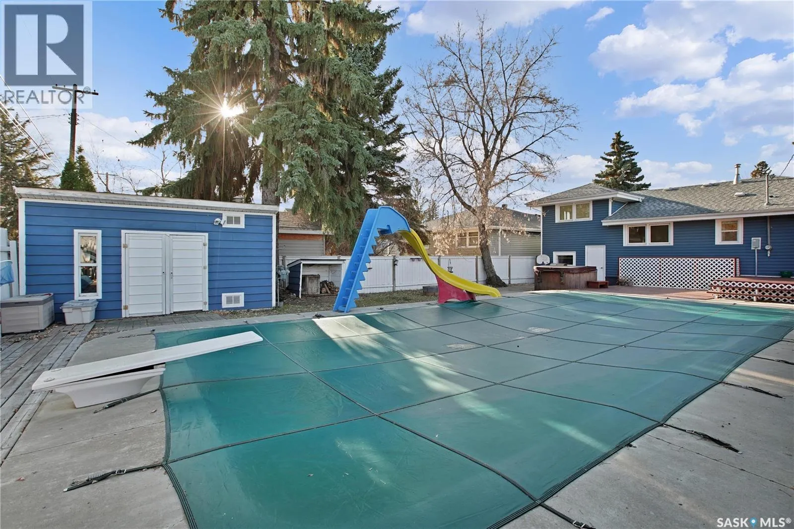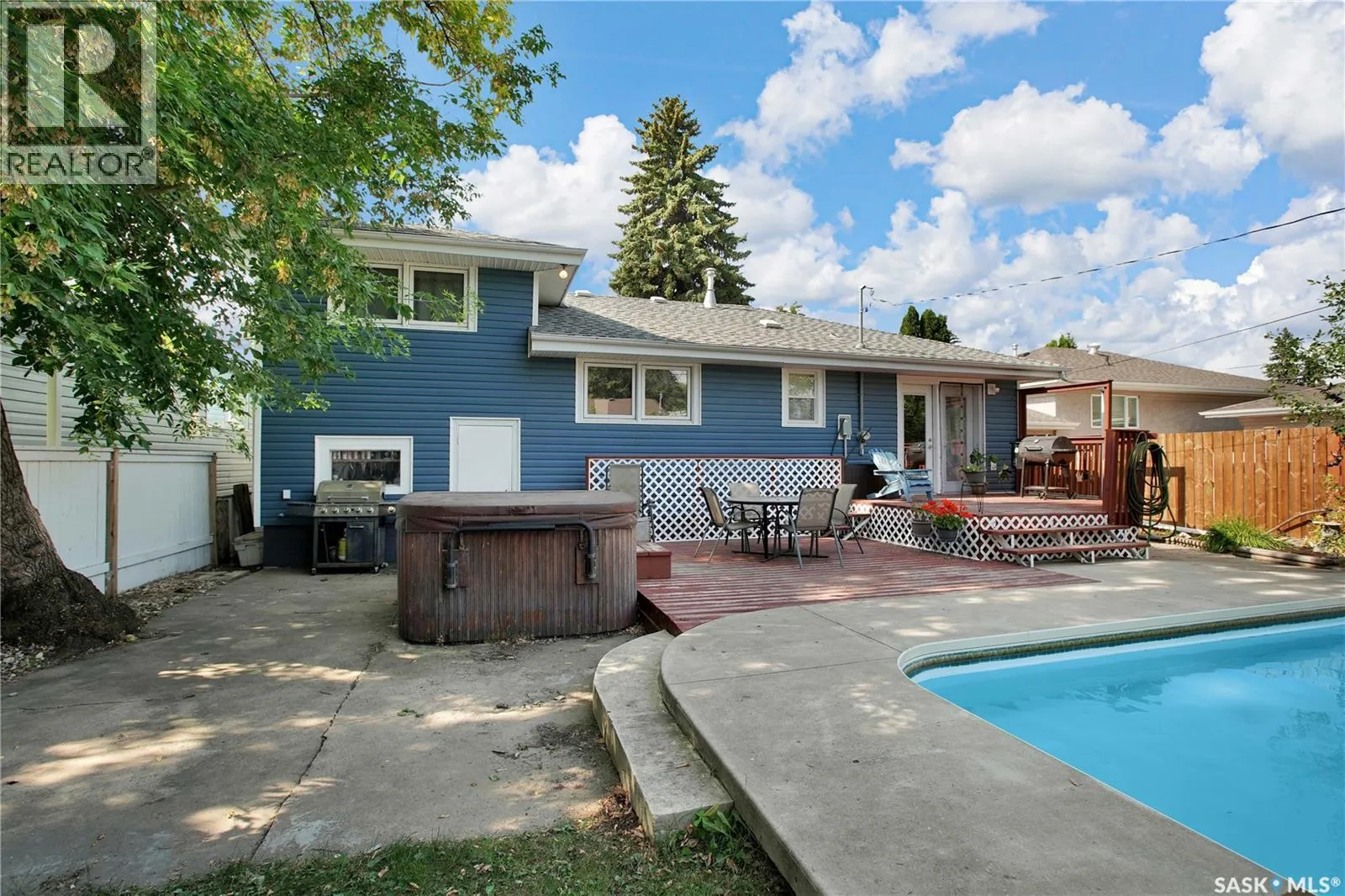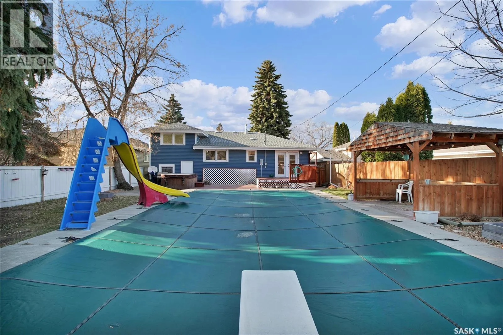 Welcome to this stunning modified bi-level in the heart of Queen Elizabeth, ideally located close to schools, parks, and all amenities. Step inside to a freshly painted main floor featuring gleaming hardwood floors in the bright living and dining areas filled with natural light. The updated kitchen offers plenty of cabinetry, modern finishes, and a gas stoveâperfect for those who love to cook. The main floor hosts a spacious primary bedroom and a den/home office, while the upper level includes two additional bedroomsâideal for kids or guests. The fully developed basement features two more bedrooms and a large family room, providing flexible living space for the whole family. Outside, youâll find an entertainerâs paradise with a massive in-ground pool complete with a slide and diving board, a relaxing hot tub, and a newly stained deckâperfect for summer gatherings. A large concrete driveway and single attached garage add convenience and ample parking. This home offers the perfect balance of comfort, function, and funâready for you to move in and make lasting memories! (id:27476)