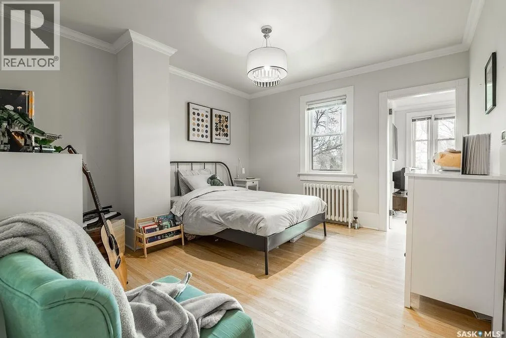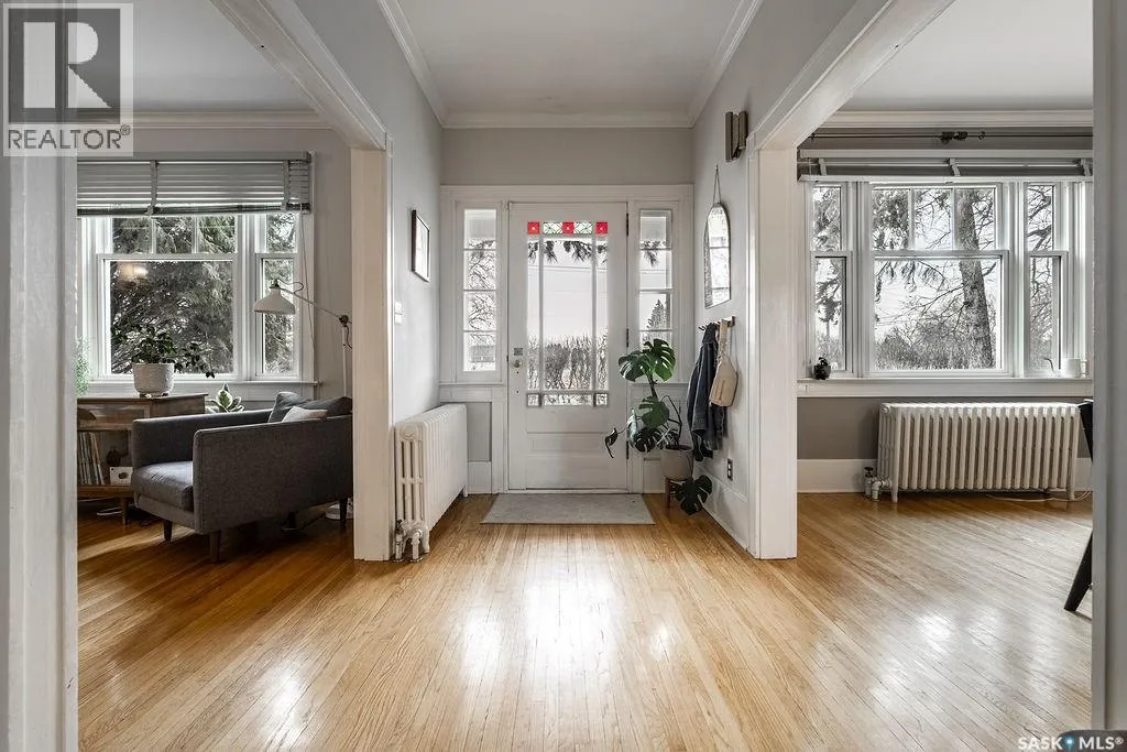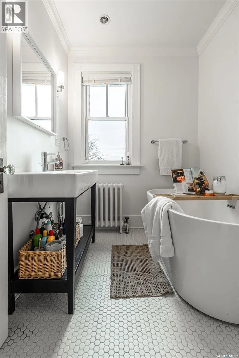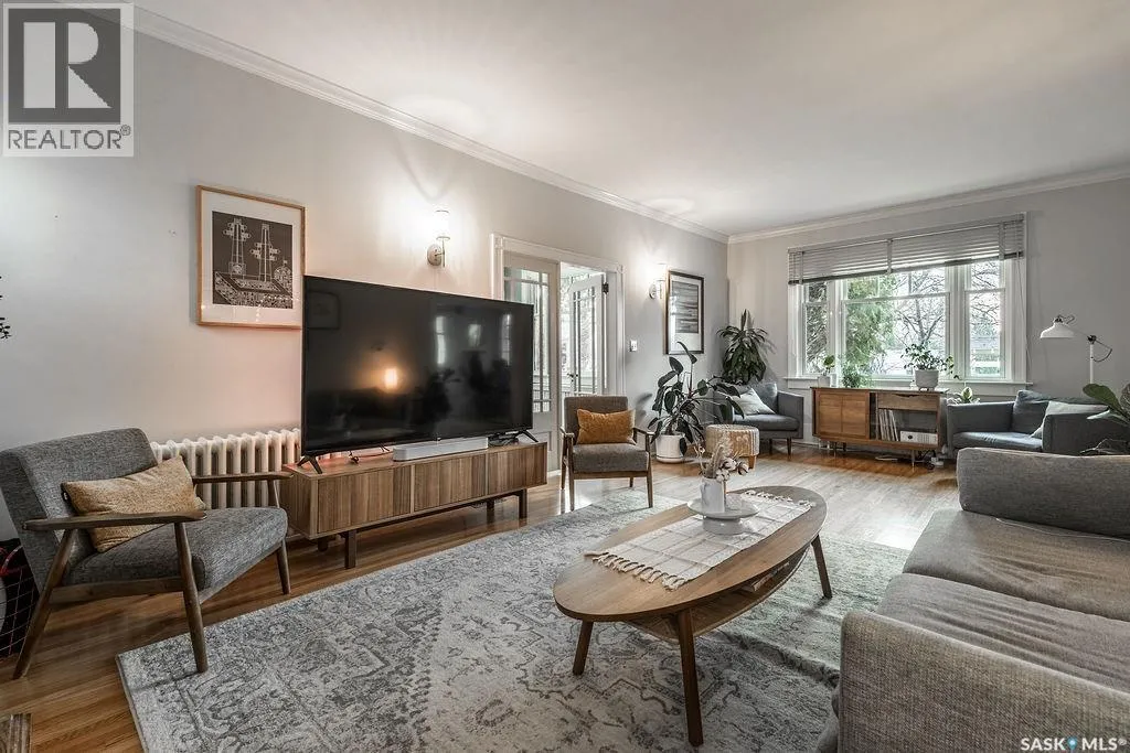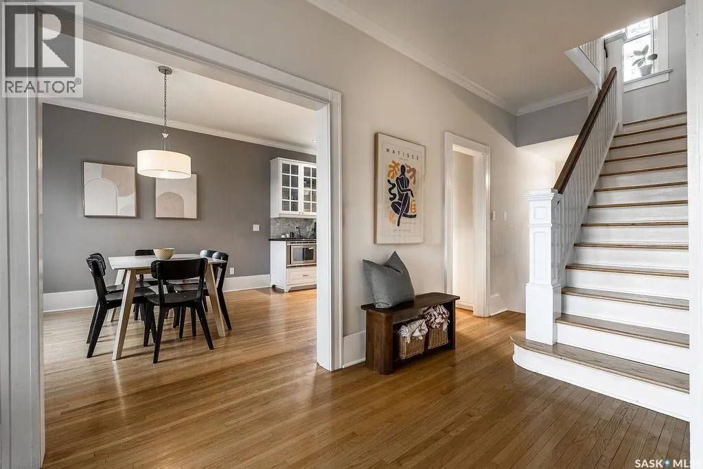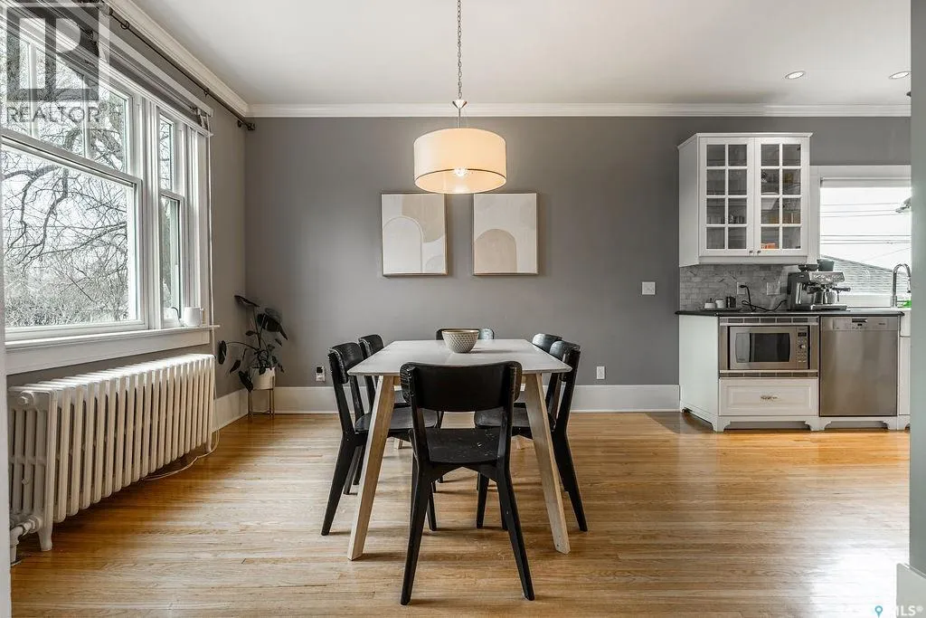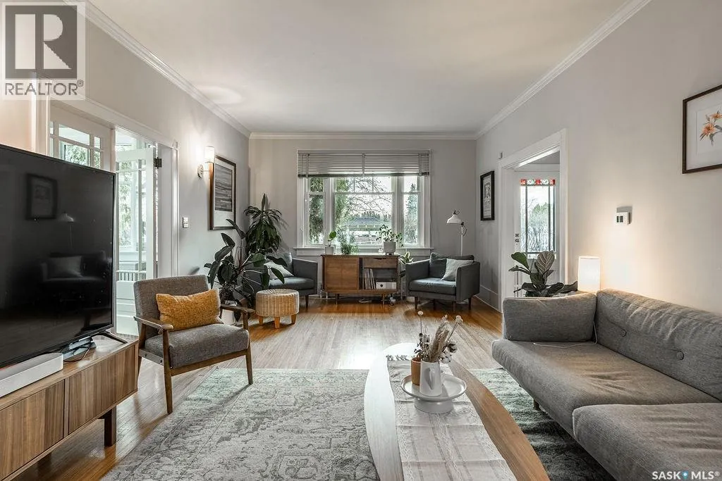 Like a private estate in the heart of the city, this beautifully updated 1,958 sqft two-storey captures your breathe from the moment you arrive. This huge lot has great street appeal with a 10ft hedge that surrounds the property. Step inside to a beautiful foyer that showcases the charming staircase. To the left of the foyer is a formal dining space and an updated modern kitchen with stainless steel appliances, gas range, built-in microwave and plenty of cabinetry. On the other side of the foyer there is a large living room with a wood burning fireplace, built-in cabinetry and two stained glass windows. A pair of french doors leads you into the bright sun-filled office. Upstairs, the primary bedroom features an electric fireplace and leads to a modern 3-pc ensuite with a walk-in tiled shower, and large walk-in closet. There are two more bedrooms and another 3-pc bathroom with a standalone soaker tub. Through one of the bedrooms is a bonus room with 2 walls of windows and tons of natural light, perfect for an office, another bedroom, sunroom or gym.. Downstairs, the fully finished basement has a spacious family room with an electric fireplace, another bedroom, a 3-pc bathroom, extra storage and a laundry room with a sink. The entire home has the perfect balance of original character details and modern updates. The yard leaves you wanting for nothing except more time outside with a firepit area, garden area, two large sheds, and tons of privacy. An oversized double detached garage with heated floors makes for easy convenience in the winters. There is also a long paved driveway perfect for RV parking. This private estate-style home is unique and impressive. Schedule your showing today! (id:27476)