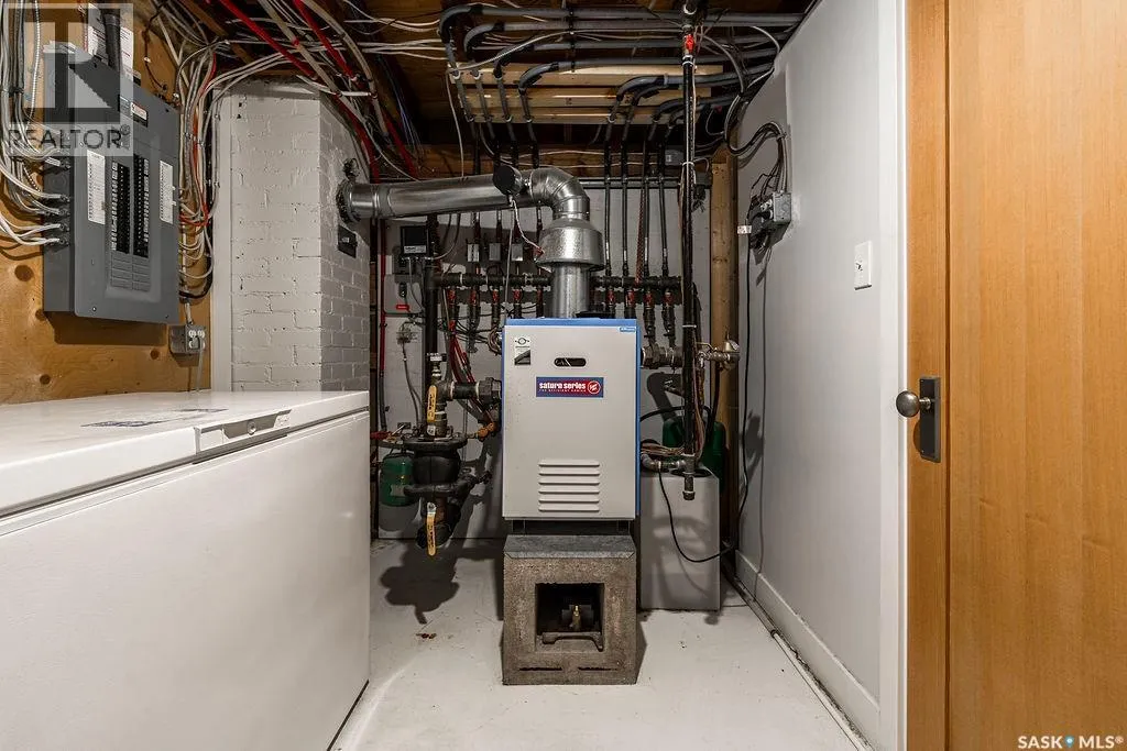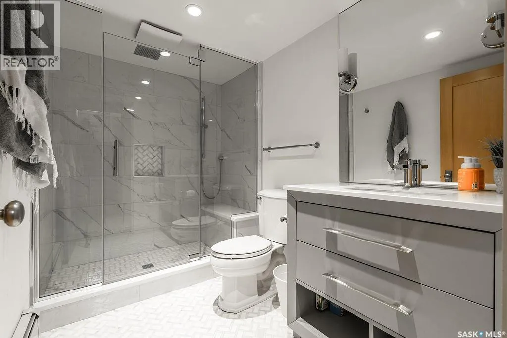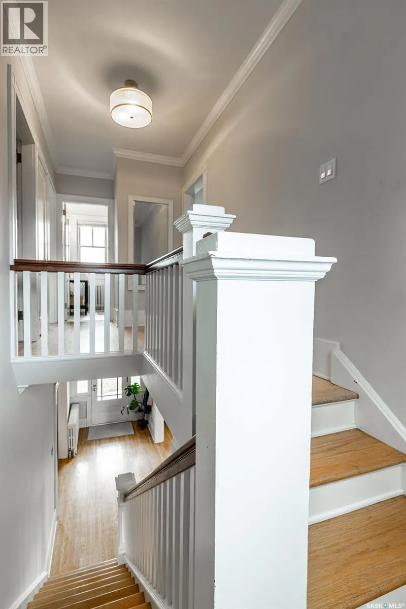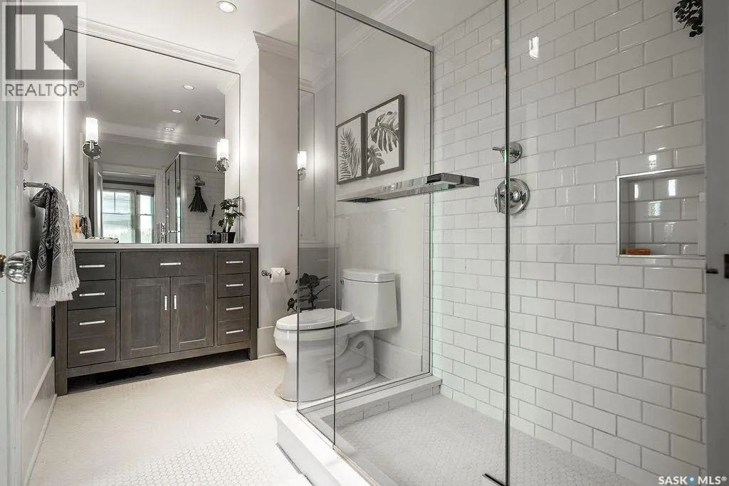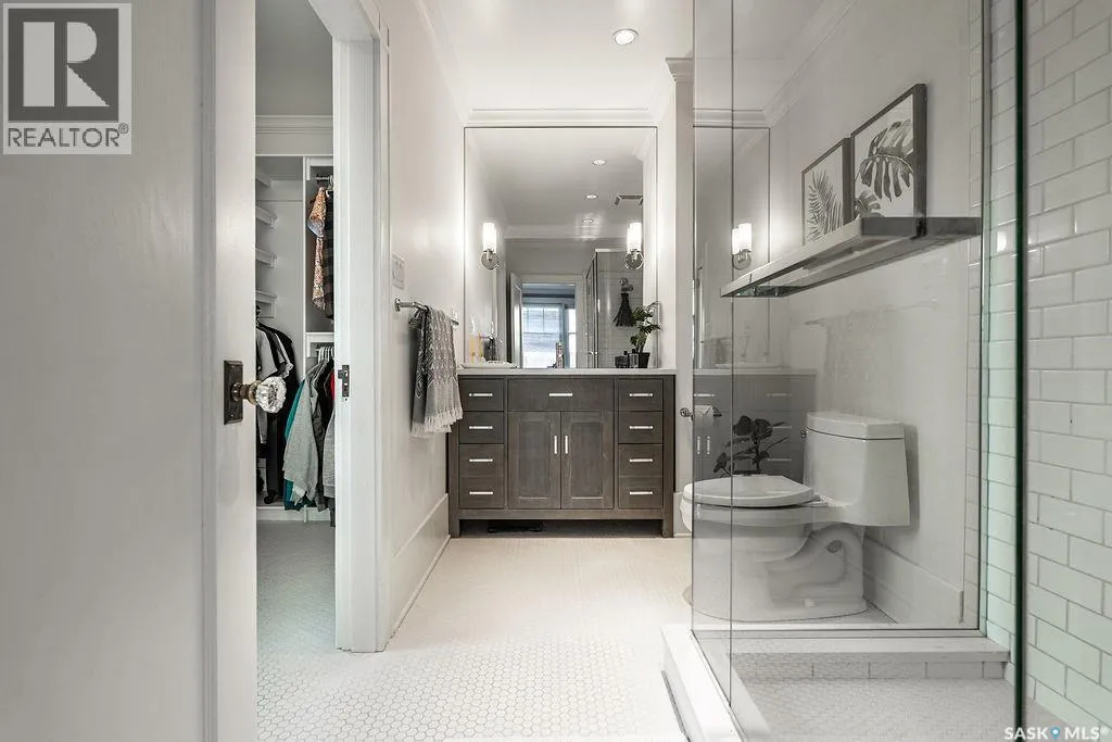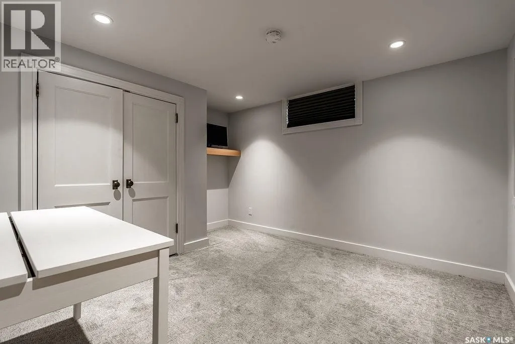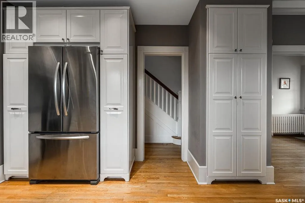 Like a private estate in the heart of the city, this beautifully updated 1,958 sqft two-storey captures your breathe from the moment you arrive. This huge lot has great street appeal with a 10ft hedge that surrounds the property. Step inside to a beautiful foyer that showcases the charming staircase. To the left of the foyer is a formal dining space and an updated modern kitchen with stainless steel appliances, gas range, built-in microwave and plenty of cabinetry. On the other side of the foyer there is a large living room with a wood burning fireplace, built-in cabinetry and two stained glass windows. A pair of french doors leads you into the bright sun-filled office. Upstairs, the primary bedroom features an electric fireplace and leads to a modern 3-pc ensuite with a walk-in tiled shower, and large walk-in closet. There are two more bedrooms and another 3-pc bathroom with a standalone soaker tub. Through one of the bedrooms is a bonus room with 2 walls of windows and tons of natural light, perfect for an office, another bedroom, sunroom or gym.. Downstairs, the fully finished basement has a spacious family room with an electric fireplace, another bedroom, a 3-pc bathroom, extra storage and a laundry room with a sink. The entire home has the perfect balance of original character details and modern updates. The yard leaves you wanting for nothing except more time outside with a firepit area, garden area, two large sheds, and tons of privacy. An oversized double detached garage with heated floors makes for easy convenience in the winters. There is also a long paved driveway perfect for RV parking. This private estate-style home is unique and impressive. Schedule your showing today! (id:27476)