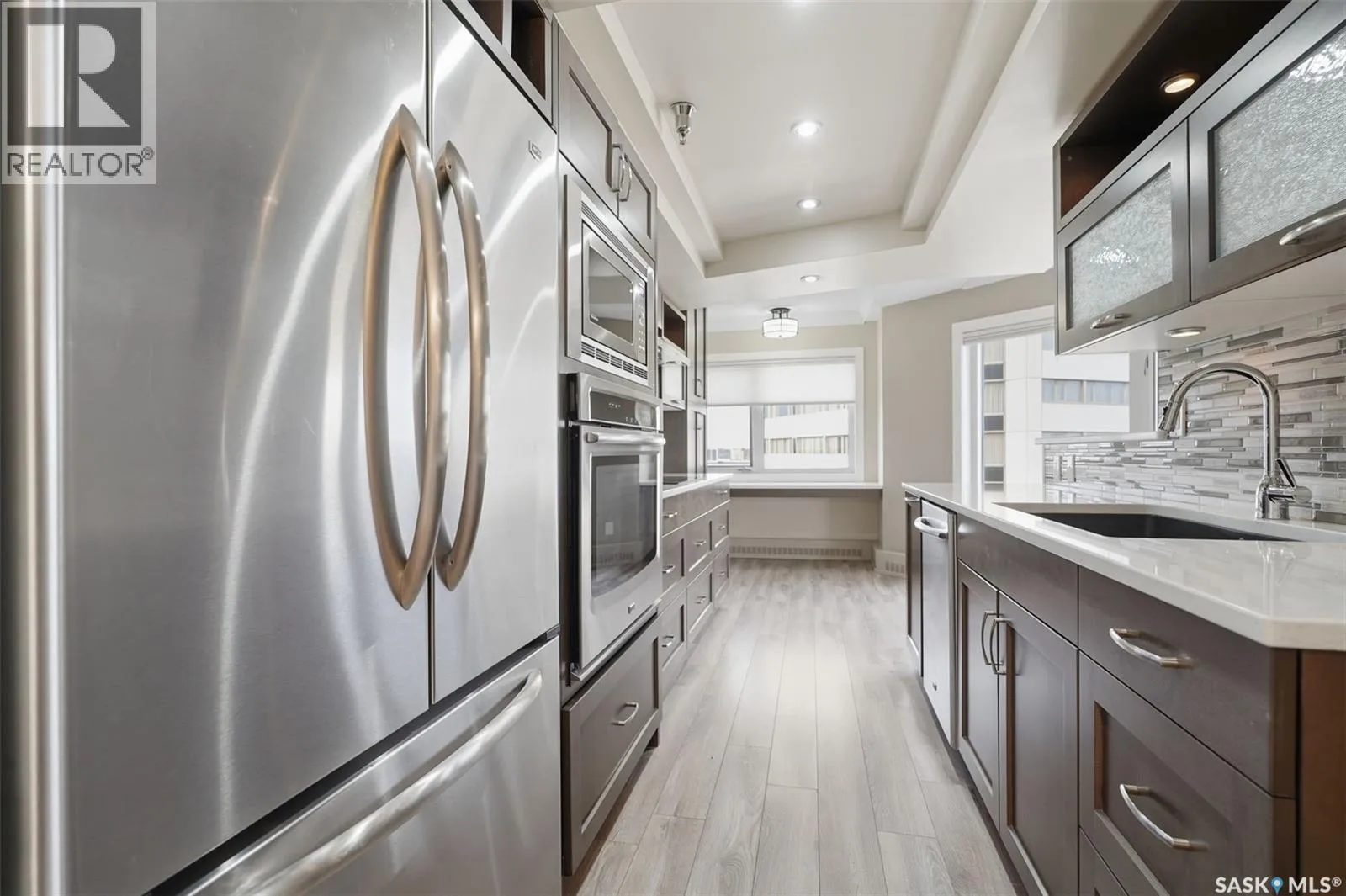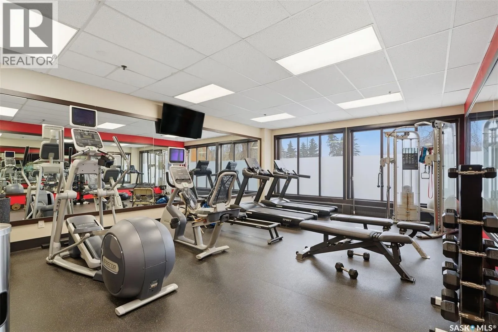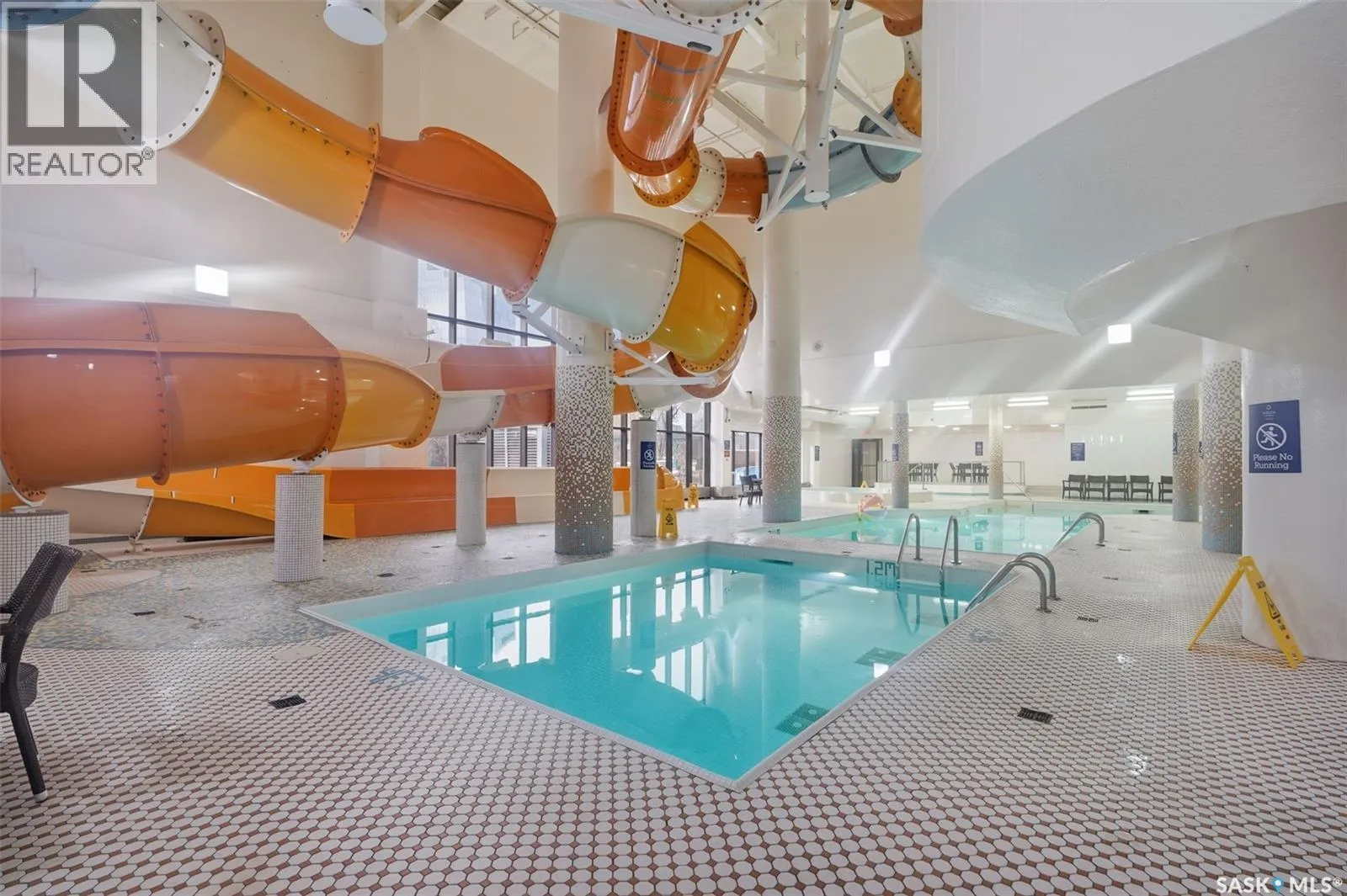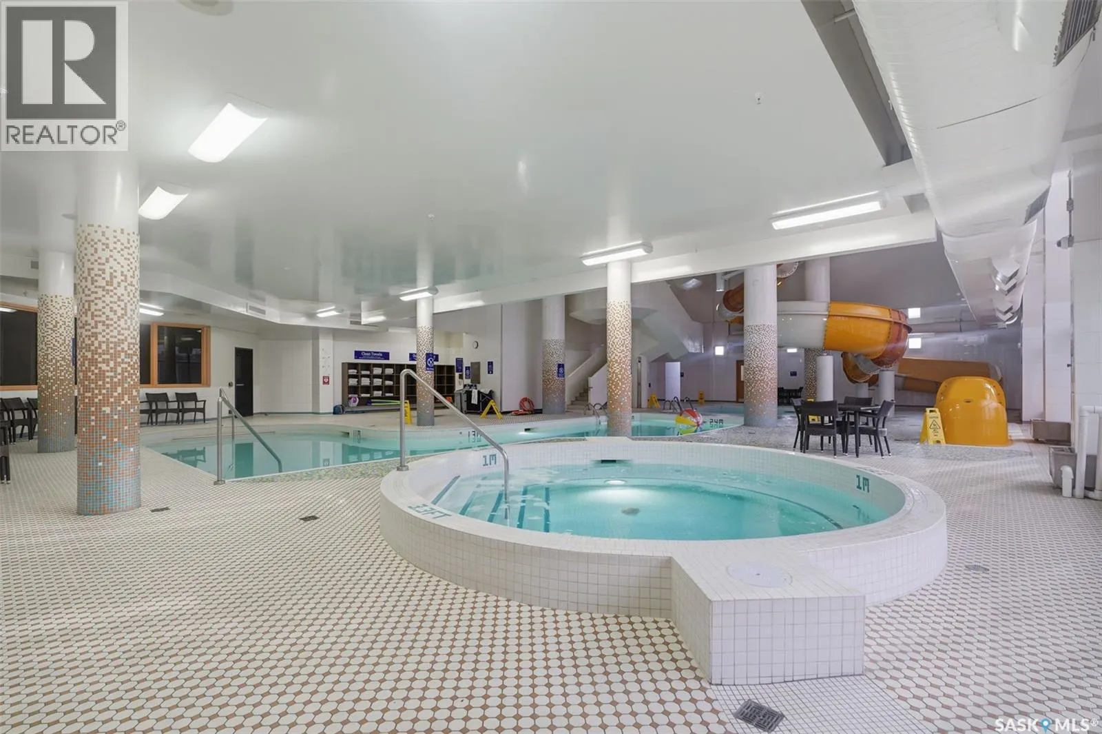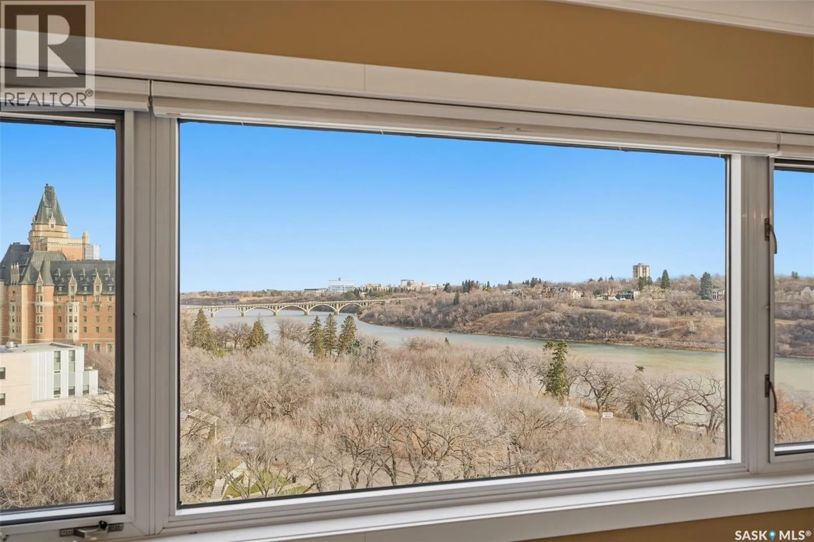 VIEW!! Welcome to this beautifully maintained stylish condo at The Renaissance, offering breathtaking views of the river and city skyline throughout. Condo Fees INCLUDE HEAT, WATER, INTERNET, CABLE AND MORE! This is a lifestyle that can't be beat. Wake up to one of the best views in the city and enjoy every inch of this luxury condo, from its spacious one bedroom with two closets and en suite, to its gorgeous modern kitchen with quartz countertops and stainless steel appliances. Get ready curl up by your captivating fireplace and watch the snow fall across the city. If you can bring yourself to leave your peaceful oasis, downstairs you have access to an indoor pool, hot tub and gym...and just steps out the front door enjoy easy access to the Meewasin Valley Trail, restaurants, shopping and more. This particular unit shows pride of ownership throughout. You won't be disappointed. With underground parking, an extra storage unit and one of the best locations and views Saskatoon has to offer....call your favourite realtor today to book a private showing! (id:27476)
