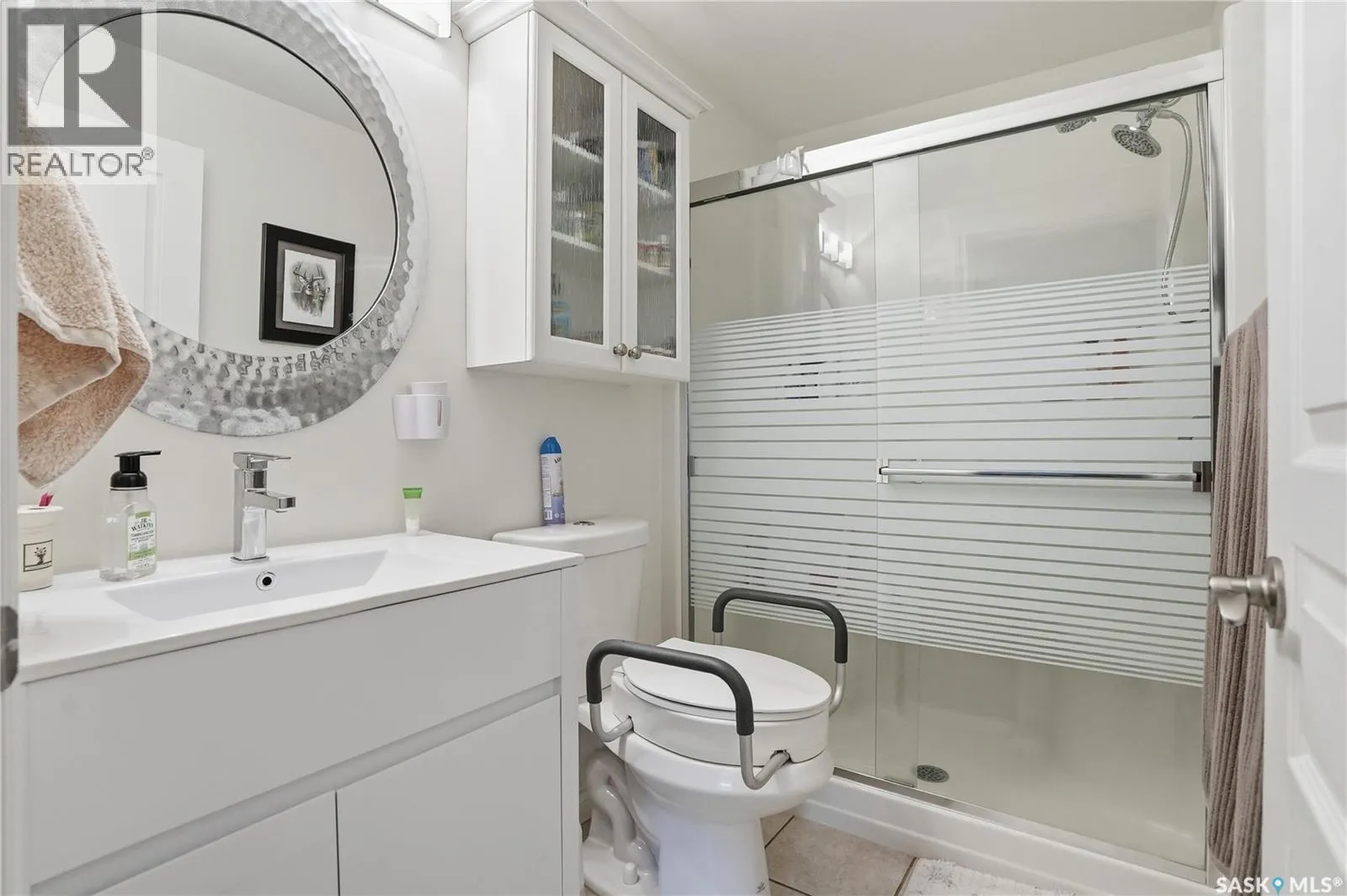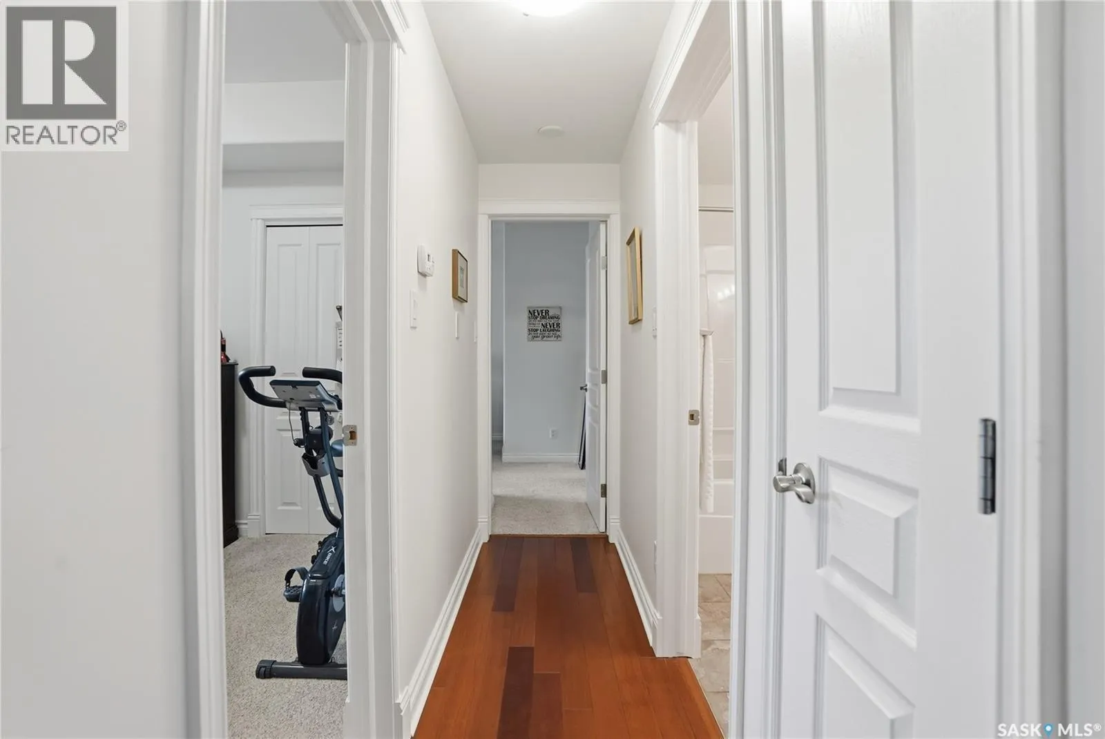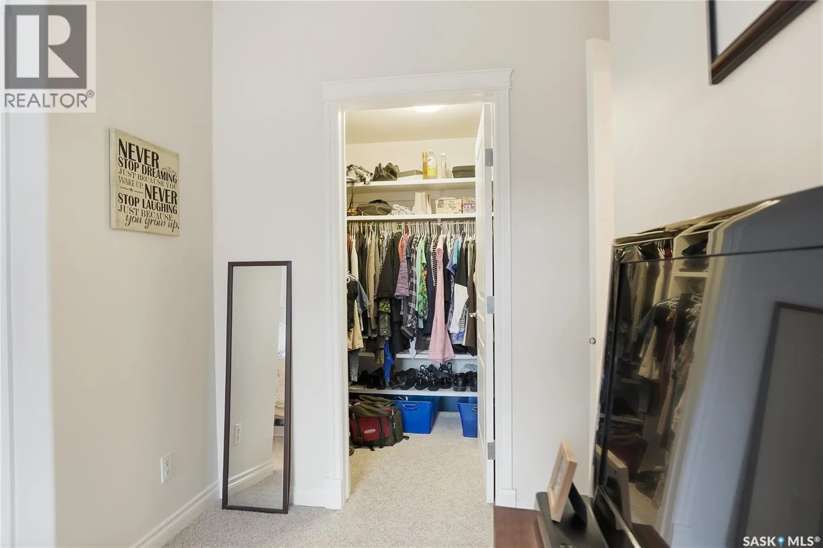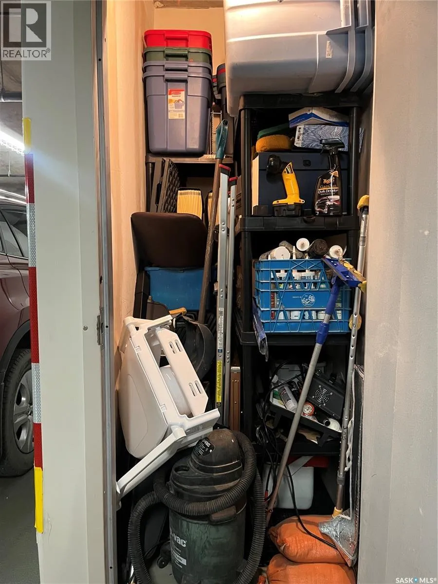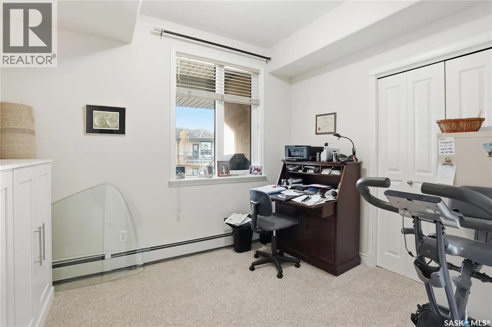Welcome to The Landing and this well cared for, professionally managed condo, located on the river bank with a great river view, location for both quiet living and easy access to down town, shopping and freeways out of the city. The moment you walk in you are greeted by the clean and bright kitchen with white quartz countertops, light maple wood cabinets, stainless steel appliances including fridge, stove, dishwasher and microwave hood fan with direct vent to outside. It also has undercabinet accent lighting, pendant lights over the island with breakfast bar, a couple cabinet display doors and built in wine rack. Behind the kitchen is the dining area with rich hardwood floors that run into the living room and fill the condo with warmth. The off white walls in this living area add brightness and a lovely contrast to the flooring, there is plenty of space for your furniture and huge windows that fill the space with natural and healthy sunlight while giving you a fabulous view of the South Saskatchewan river side below. You can also access the back deck from here where you can relax and enjoy the suns warmth with your favorite bevy and prepare a meal on your barbeque that is connected to the natural gas outlet, and listen to the geese as they float by on the river. Down the hall you will find the spare bedroom with plush carpet across from the 4 piece bathroom. The master bedroom found at the end of the hall is huge, has cozy carpet flooring, a walkin closet and a 3 piece ensuite for your convenience. Across from the kitchen is a double wide coat closet and the laundry/storage room with stacked washer/dryer included. New to this unit is the stove, microwave, garburator, quartz countertops, sink and kitchen faucet. Enjoy the convenience of the heated underground parking and your own storage room, there is new clearcoat surface underground and new pavement outside. Close to the Meewasin Valley trail, Fred Mitchell and Gabriel dumont parks. Call today! (id:27476)