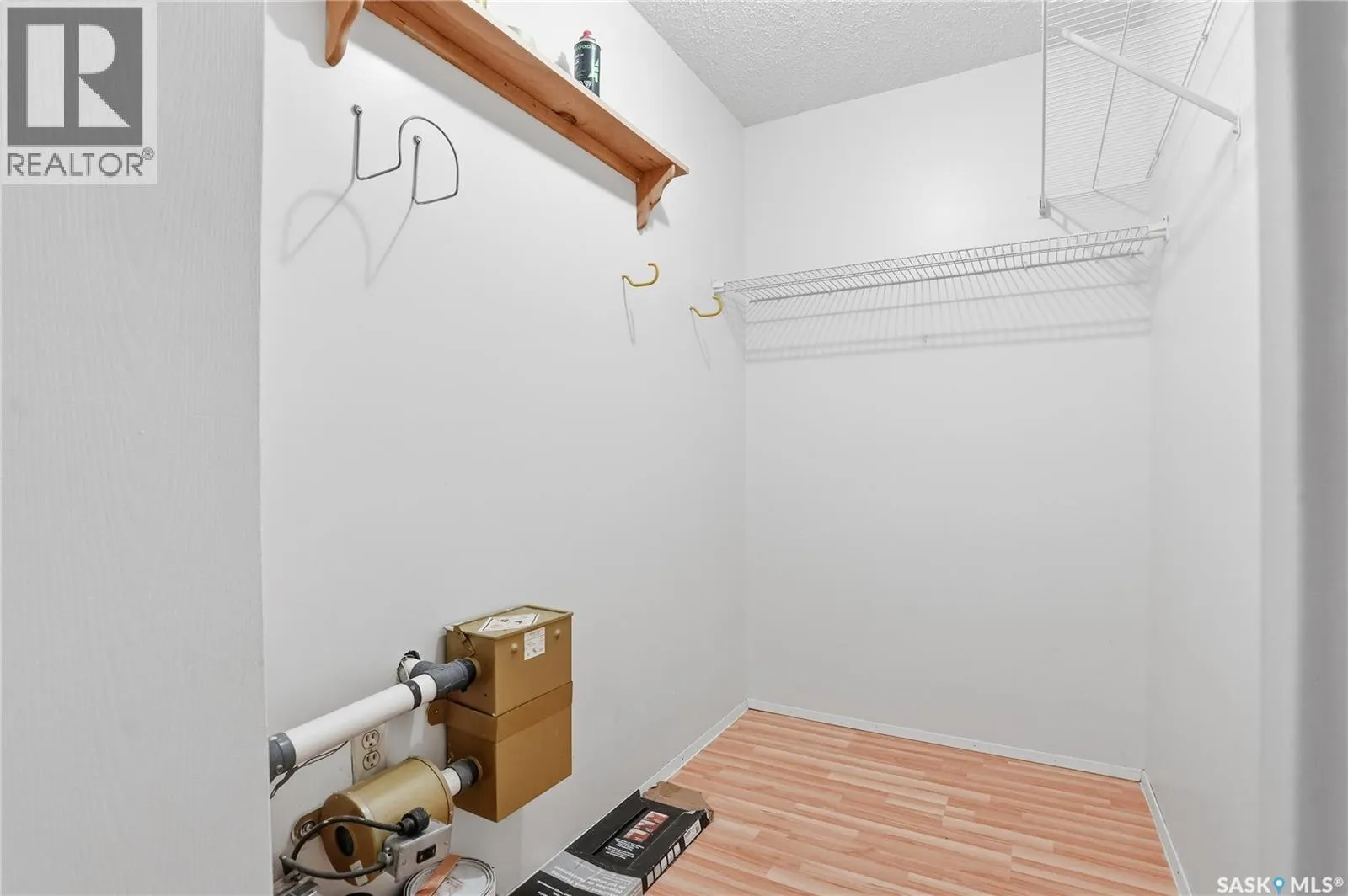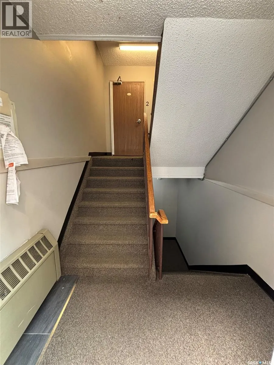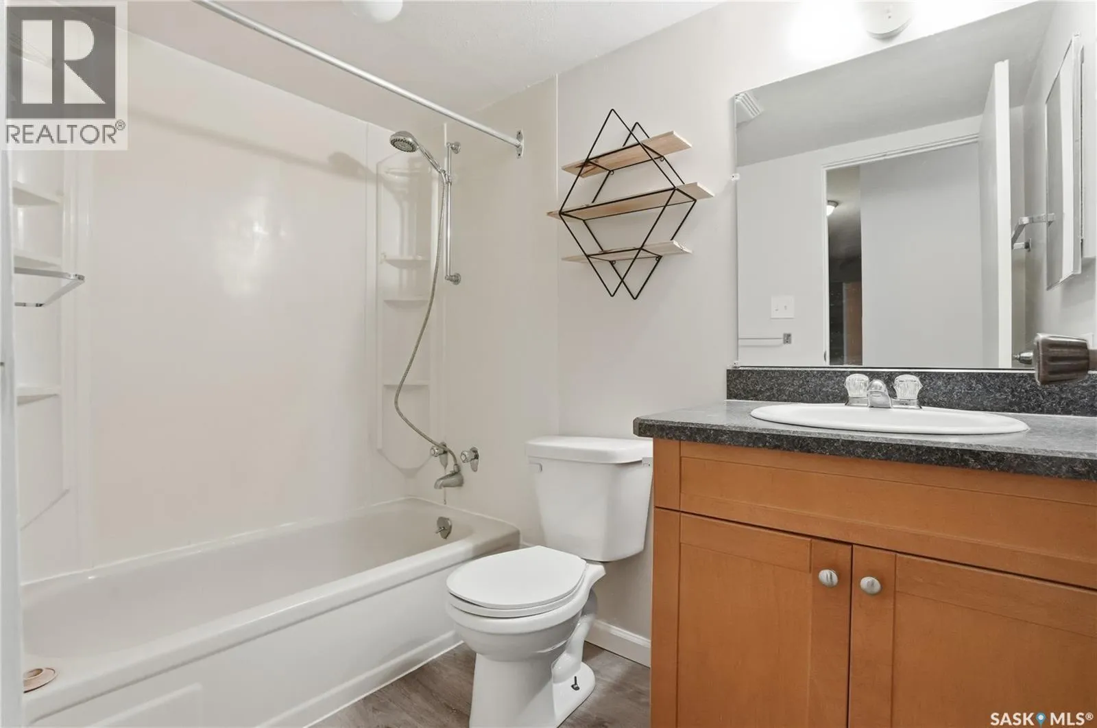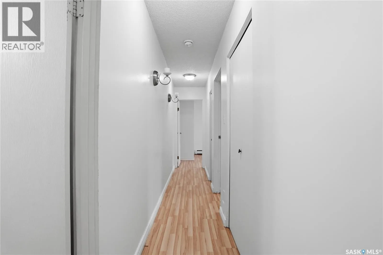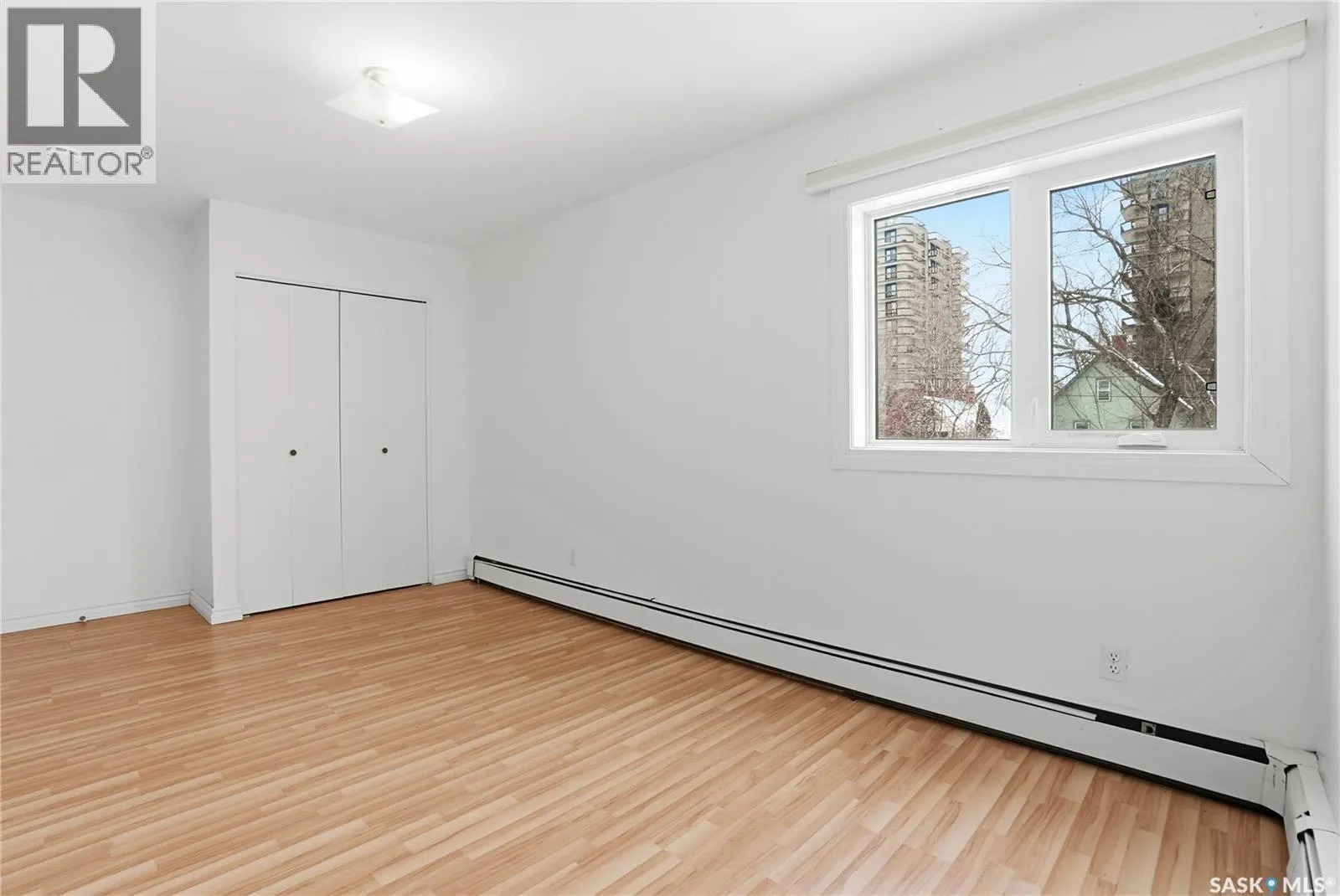 Welcome to unit 304 in the Chateau on 4th Avenue, centrally located in the mature City Park neighbourhood. Located in close proximity to the City Hospital, downtown, U of S, Starbucks, public transport, the scenic river valley and Meewasin Trail. This 2 bedroom 1 bath unit features a unique layout with a well appointed west facing balcony for some evening sun or entertaining guests. Perfect for a first time buyer or revenue property for university students. Includes many upgrades including newer maple cabinetry in the kitchen and bathroom, upgraded windows and exterior patio door, laminate flooring throughout. Includes 1 covered electrified parking stall. Don't miss out! This unit shows excellent! (id:27476)