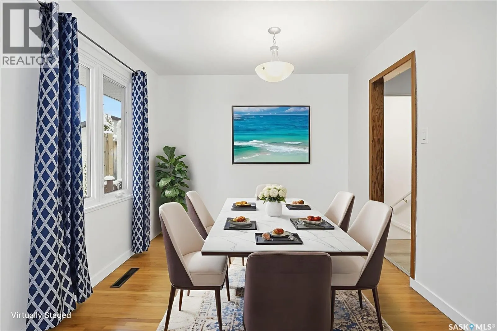 Welcome to 2126 William Avenue, a charming 966sqft bungalow in the heart of Queen Elizabeth, offering a blend of modern updates and timeless character. This well-kept home features beautiful original hardwood floors on the main level, complemented by an updated kitchen with modern cabinets, upgraded taps, sink, and fresh plumbing. The main floor also includes two comfortable bedrooms and a recently updated 4-piece bath. The basement, fully developed in 2013, adds two additional bedrooms, a bright family room, and an updated 3-piece bathroomâperfect for guests or growing families. Extensive upgrades throughout the home over recent years include newer windows, exterior paint, soffit, fascia, eaves shingles, sewer line, electrical panel, furnace, water heater, central air conditioning, and a newer washer & dishwasher for added convenience. The home also has a back patio, garden area, shed, 12'x22' detached garage, and a large gate to the rear yard for RV parking and access to the whole yard. Situated in an excellent location close to parks, schools, and all the amenities Queen Elizabeth has to offer, this move-in-ready property delivers comfort, style, and peace of mind. (id:27476)