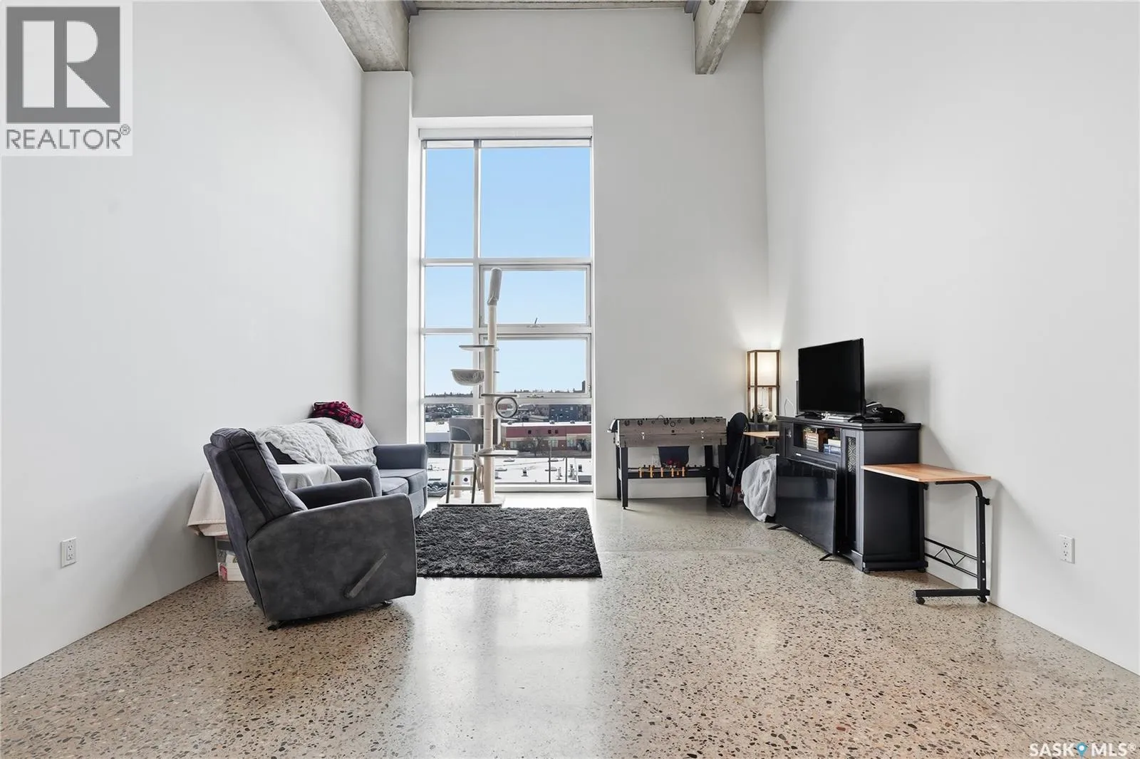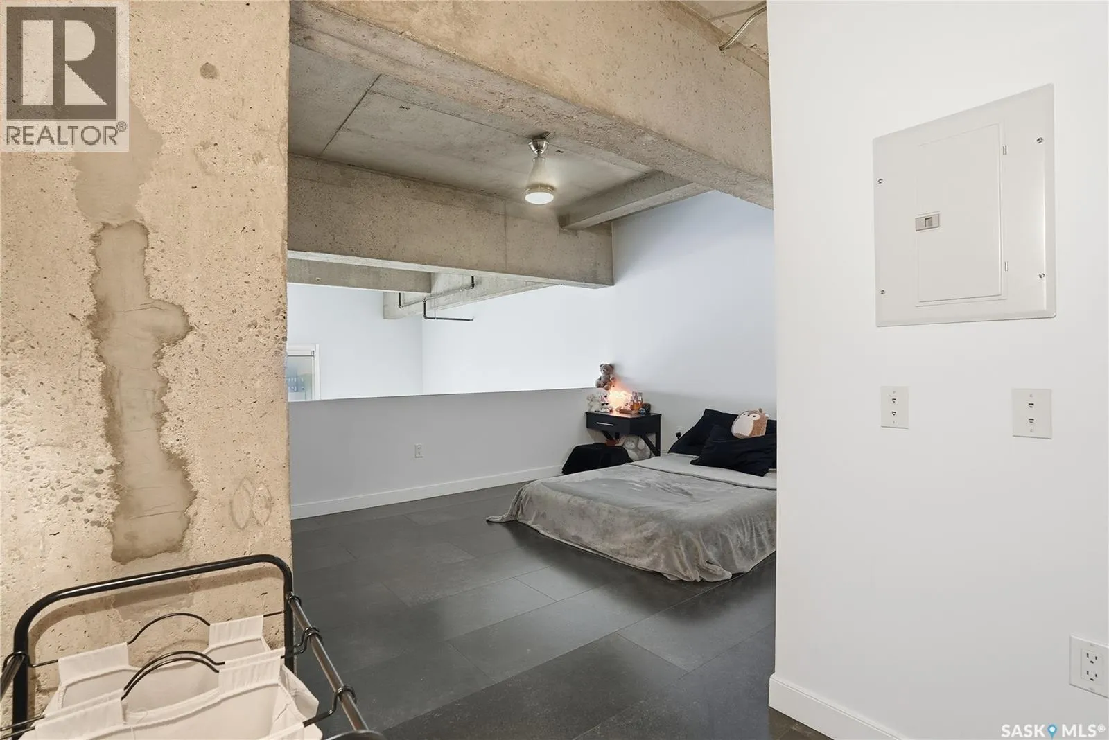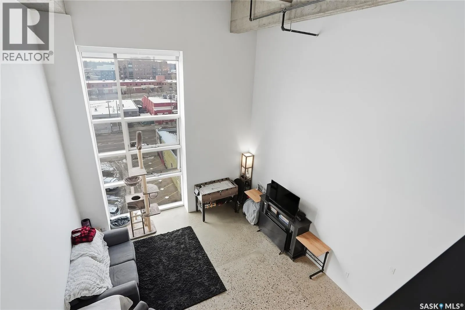 Experience iconic urban living in the heart of downtown with this stylish loft in the sought-after 2nd Avenue Lofts. Located on the fourth floor, this unit offers soaring ceilings, large windows, and a bright, open layout that truly captures the charm of this historic building. The main level features an open-concept living and kitchen area with plenty of room for furniture arrangements, dining, and entertaining. Floor-to-ceiling windows fill the space with natural light, creating an airy, modern feel. The updated kitchen includes stainless-steel appliances, large island and ample cabinetry, making everyday living both functional and inviting. Upstairs, the loft bedroom overlooks the main living area. Additional features include underground heated parking (stall 2 near main lobby), concrete construction, in-unit laundry, and access to fantastic building amenities â a rooftop terrace with BBQs, a fully equipped fitness center, and a rec room. Perfect for first-time buyers, professionals, or anyone seeking a true downtown lifestyle. This loft places you steps from restaurants, shopping, entertainment and transit. Perhaps one day this unit will have views of the new downtown arena. Donât miss your chance to own a piece of Saskatoonâs most recognized loft development. Contact your REALTOR® today to book a private showing today. (id:27476)