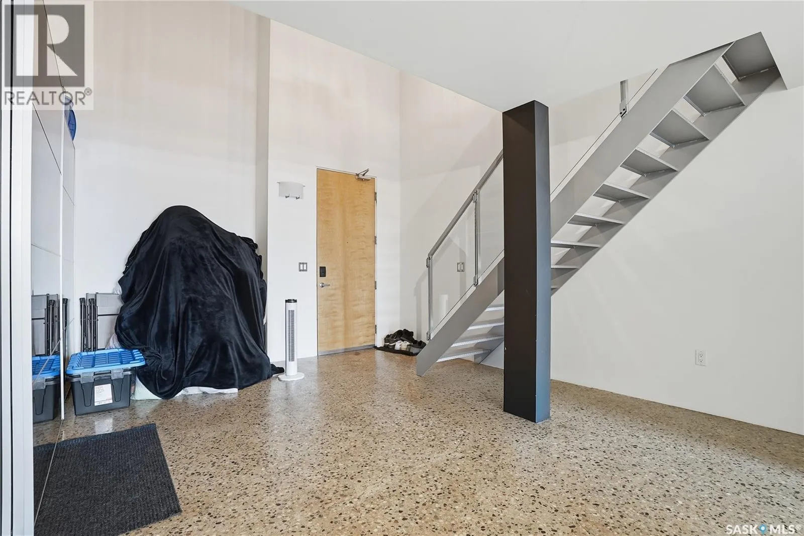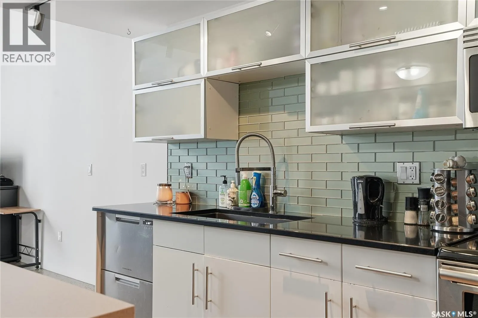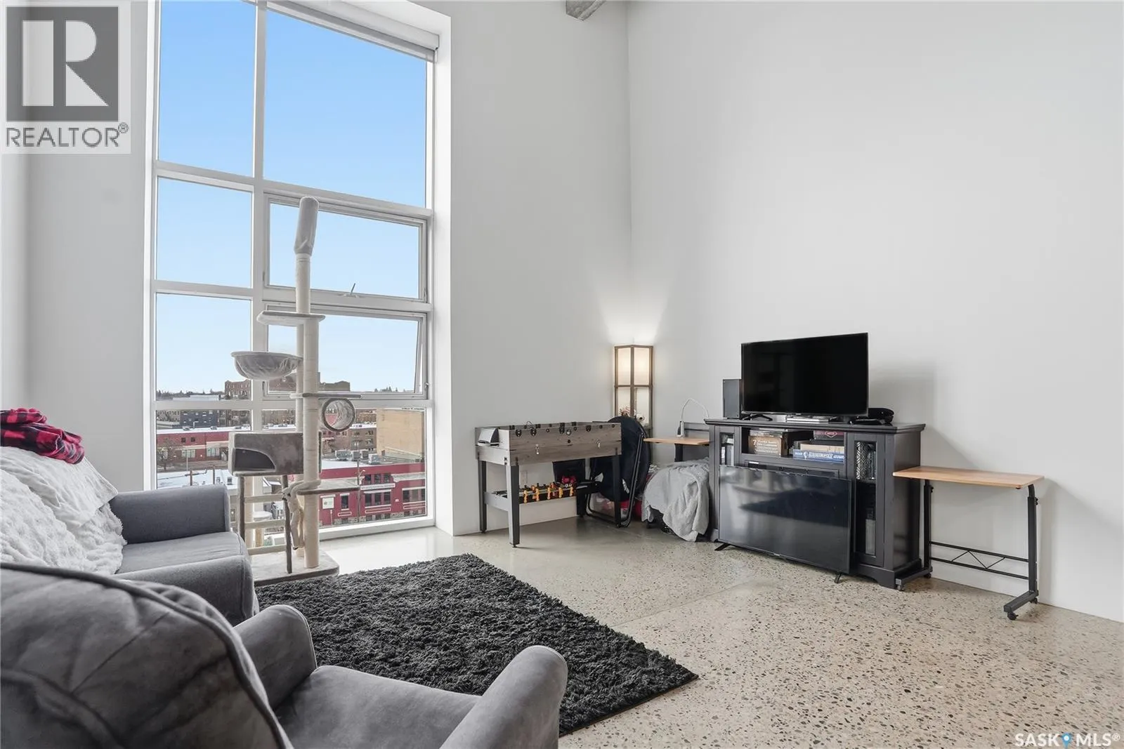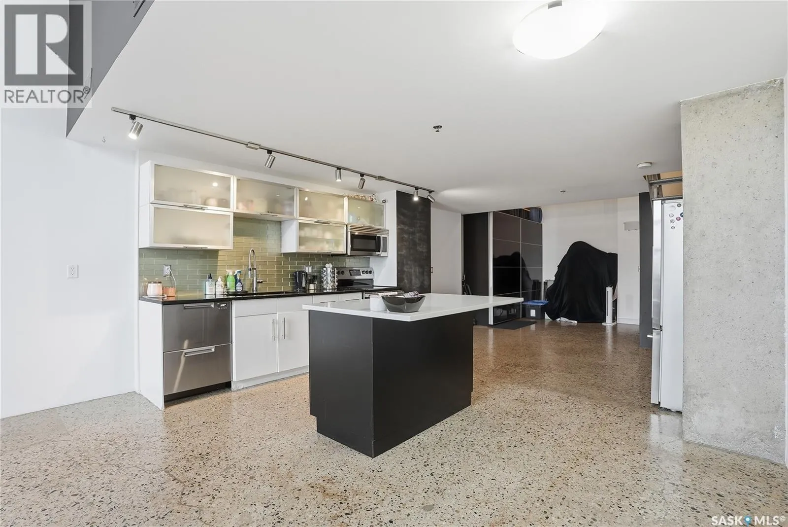 Experience iconic urban living in the heart of downtown with this stylish loft in the sought-after 2nd Avenue Lofts. Located on the fourth floor, this unit offers soaring ceilings, large windows, and a bright, open layout that truly captures the charm of this historic building. The main level features an open-concept living and kitchen area with plenty of room for furniture arrangements, dining, and entertaining. Floor-to-ceiling windows fill the space with natural light, creating an airy, modern feel. The updated kitchen includes stainless-steel appliances, large island and ample cabinetry, making everyday living both functional and inviting. Upstairs, the loft bedroom overlooks the main living area. Additional features include underground heated parking (stall 2 near main lobby), concrete construction, in-unit laundry, and access to fantastic building amenities â a rooftop terrace with BBQs, a fully equipped fitness center, and a rec room. Perfect for first-time buyers, professionals, or anyone seeking a true downtown lifestyle. This loft places you steps from restaurants, shopping, entertainment and transit. Perhaps one day this unit will have views of the new downtown arena. Donât miss your chance to own a piece of Saskatoonâs most recognized loft development. Contact your REALTOR® today to book a private showing today. (id:27476)