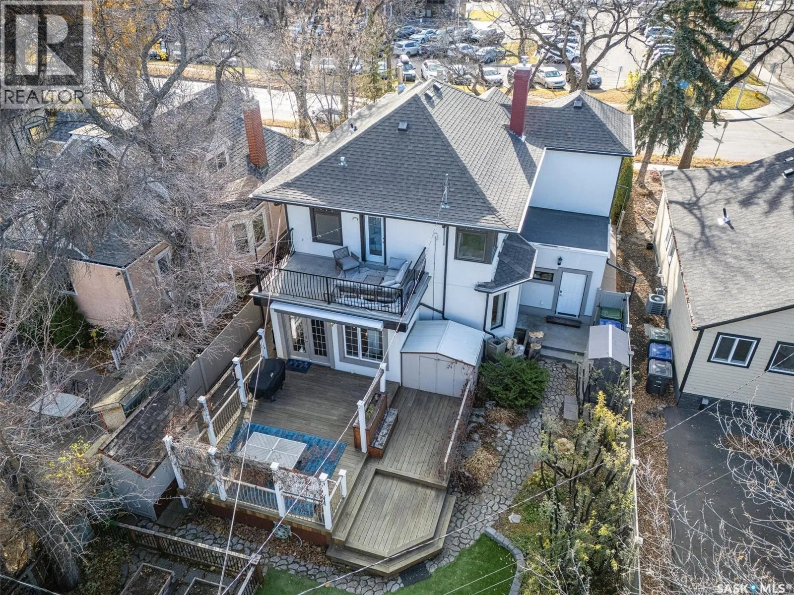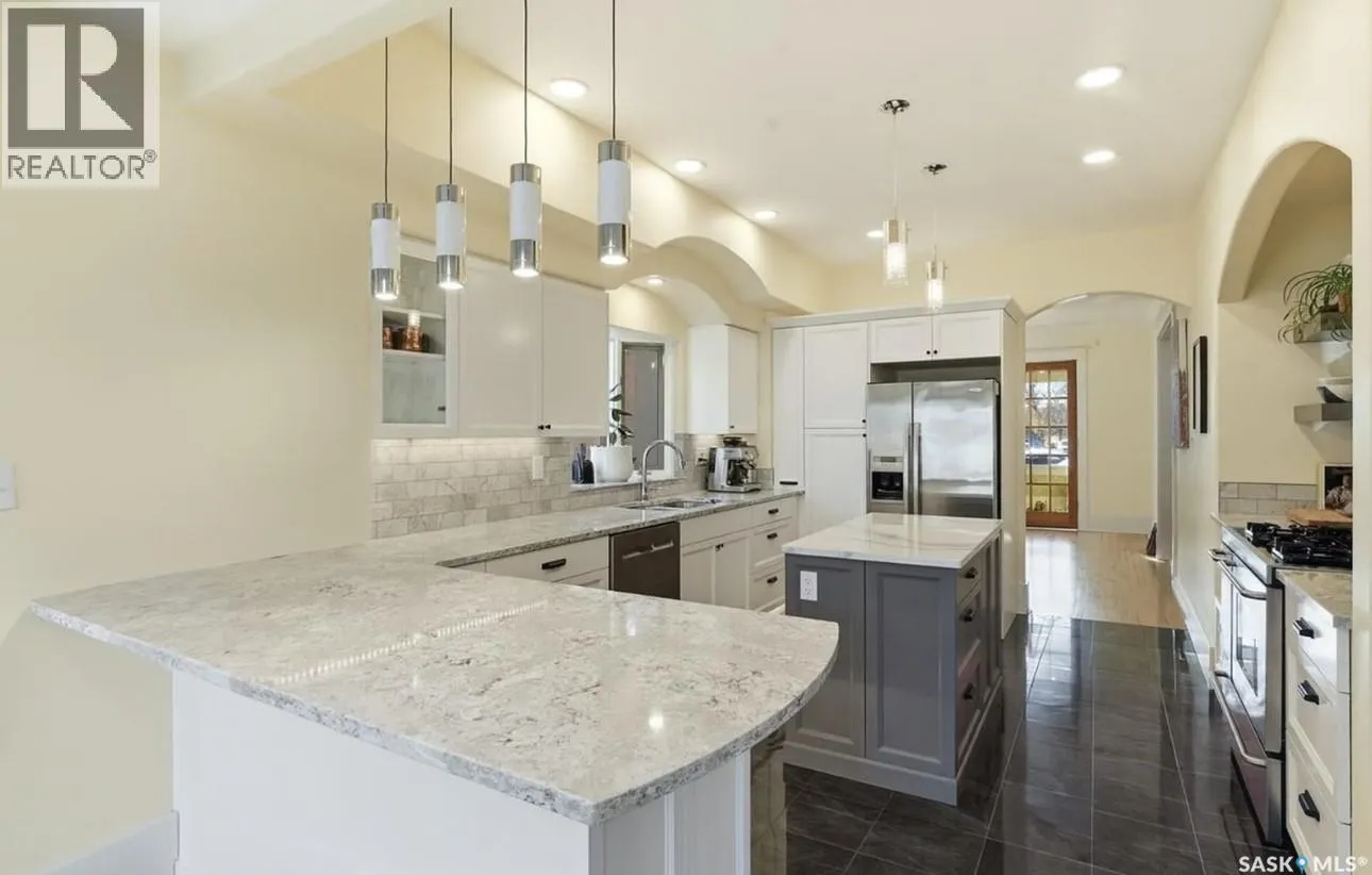 Donât miss this INCREDIBLE character home in one of Saskatoonâs most desirable neighbourhoods! A stately family home with a modern income generating suite / AIRBNB!! This property exudes pride of ownership with charm and professional updates throughout. Enter into the main floor to find a welcoming sunroom and lrg foyer, living room with wood burning fireplace, and a formal dining with a bay window. At the heart of the home is a chefâs DREAM KITCHEN- spacious and beautifully appointed with quartz countertops, stainless appliances, and a sit-up eating area that opens onto a sitting room, overlooking a large deck and private yard. A 2-pc bath completes the main. Upstairs, youâll find 3 bedrooms: a primary suite with an ensuite and a charming private deck of the master. Two additional lrg bedrooms and a newly renovated 3-piece bathroom complete 2nd flr. Large windows flood every room with natural light, highlighting the significant character. Extensive renovations and upgrades have been meticulously completed recently, blending heritage with modern class. The unique dev basement offers a modern 1 bed suite / AIRBNB income generator with a sep entrance, 4-pc bath, 2 x laundry, kitchen, and a family room w/ gas fireplace â ideal for additional cash flow. The oversized, heated att garage includes a large attic storage area above. The front yard is low maintenance with a stamped concrete driveway providing parking 3 vehicles. The private backyard will impress w/manicured grounds: a two-tiered deck, garden boxes, artificial turf, curbing, and climbing vines. In total, there are three decks, including a covered front deck and the private balcony of the master. Upgrades include: furnace, hot water heater, shingles, garage, decks, kitchen, two bathrooms, basement development, many new windows, updated exterior, and driveway â the list goes on! This gem is ideally situated within walking distance to the river, downtown, U of S, and all hospitals, the location is unbeatable! (id:27476)