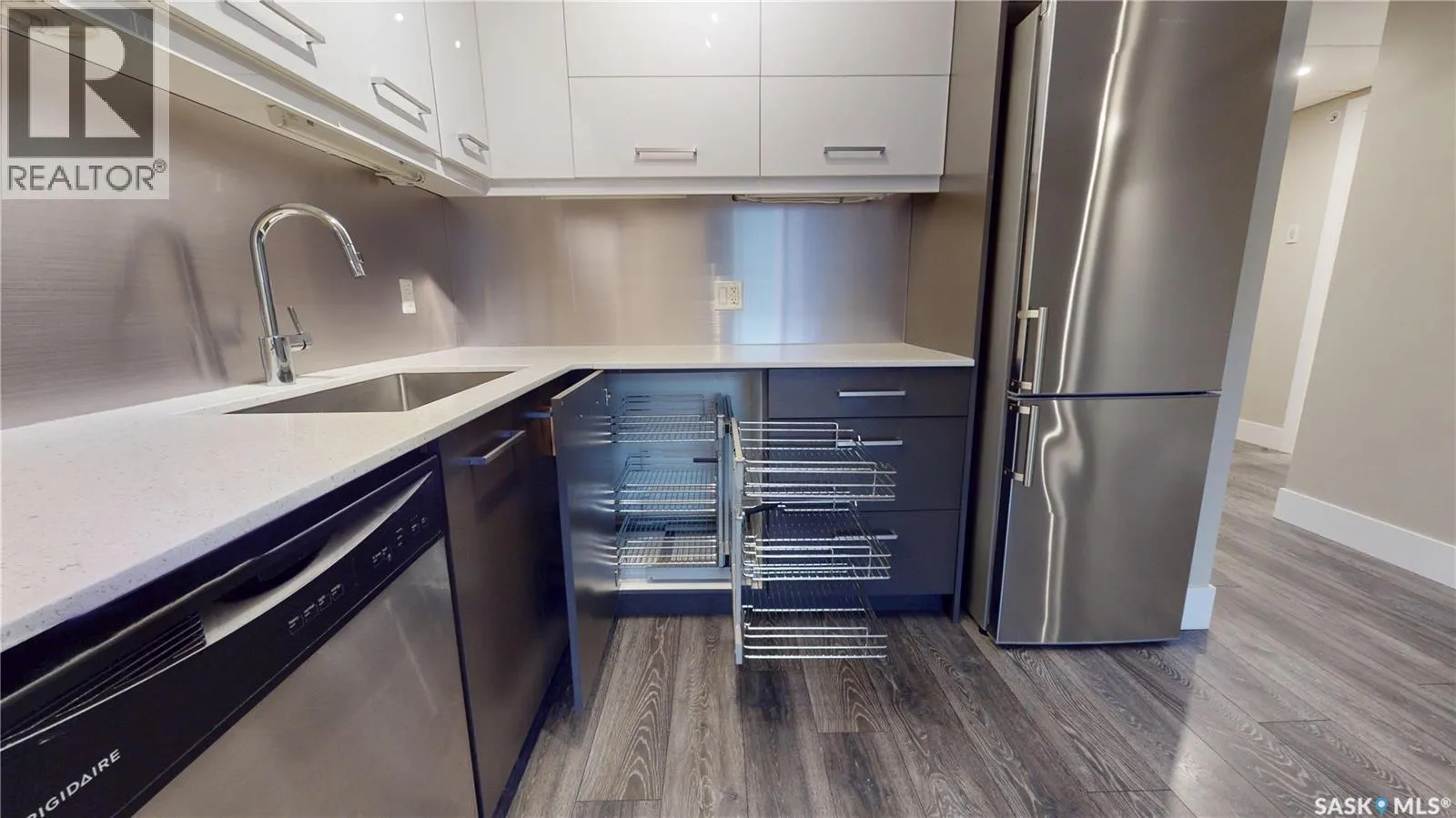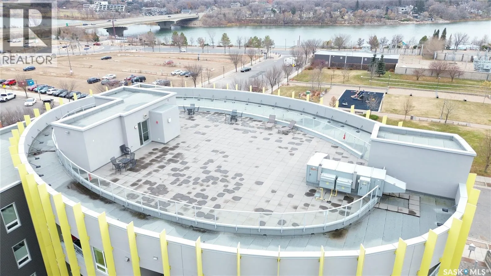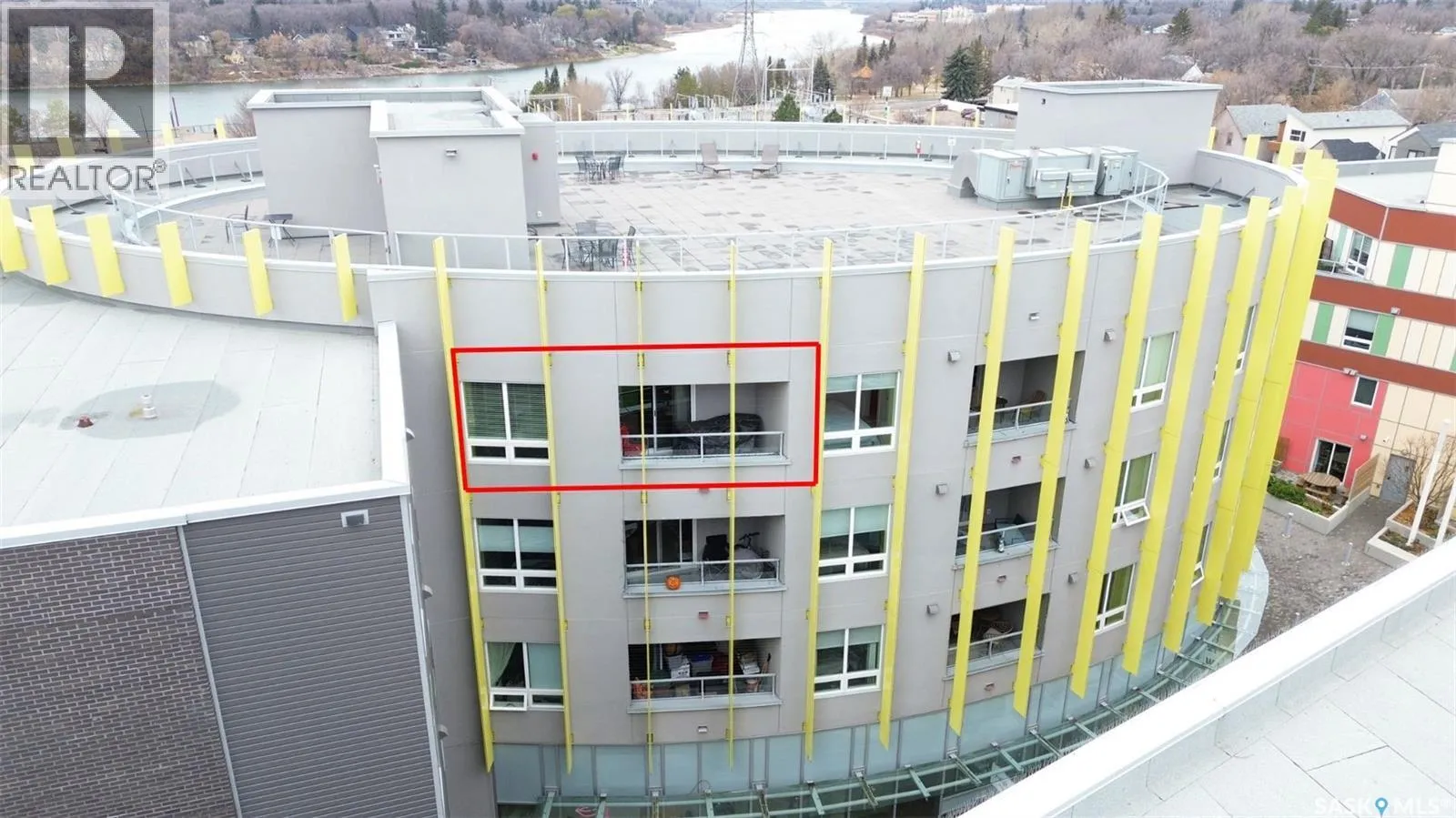 Discover this fantastic top-floor unit in The Banks, featuring one bedroom and a den in the heart of Riversdale, walking distance from the river and surrounded by some of Saskatoon's hottest restaurants. Please view the Matterport 3D virtual tour and floor plan in this listing. This beautifully kept top-floor unit offers a bright, modern kitchen with quartz countertops, lots of storage, and thoughtfully designed organizing systems. The open-concept kitchen flows into a warm and inviting living room, where patio doors lead directly to your private, recessed balcony, already equipped with professionally-installed "invisible" bird wire. The den adds functional space that can easily adapt to your needs, whether for work, creativity, or storage. The bathroom boasts a floating vanity and attractive tile work on the floor and surround above the relaxing soaker tub. The building features a shared rooftop patio, an ideal spot to unwind and enjoy city views. Additional highlights include nine-foot ceilings, in-suite laundry, heated underground parking, a dedicated storage cage, and both the unit and parking are conveniently close to the elevator. You'll enjoy close proximity to Bistro on B, Odd Couple, Bar Stella, Midtown Plaza, Cineplex, the Remai Modern Art Gallery, River Landing, and the front door of the building is just steps from HomeQuarter Bakery. Immediate possession is available; call now for your own private viewing! (id:27476)