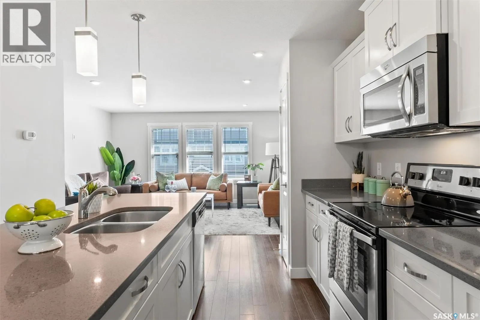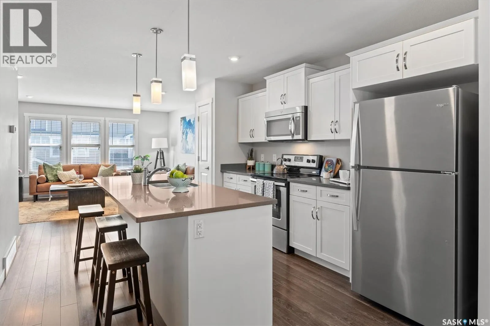 Stay out of the COLD! This unit has a 2 car tandem garage!!!! Welcome to Unit 229 at 1220 Pringle Way â a beautifully maintained 3-storey townhome nestled in the desirable neighborhood of Stonebridge. With over 1,300 sq ft of thoughtfully designed living space, this multi-level condo offers both comfort and functionality. Featuring 2 spacious bedrooms and 2 bathrooms, the layout is perfect for professionals, first-time buyers, or those looking to downsize without compromising on style. The open-concept kitchen and dining area boast modern laminate flooring, generous cabinetry, and room to host, while the adjacent living room is bathed in natural light from east and west-facing windows. Upstairs, the primary bedroom includes a walk-in closet and a private 3-piece ensuite. Additional features include central air conditioning, second-floor laundry, a dedicated storage room, and a heated, fully insulated attached 2-car garage â a rare find at this price point. Step outside to enjoy your own balcony, deck, and patio â ideal for relaxing or entertaining. Residents benefit from low condo fees, which cover snow removal, water, common area maintenance, and more. The âLiving Stoneâ complex is well-managed by North Prairie Developments and includes visitor parking and beautifully maintained grounds. Located minutes from schools, parks, shopping, restaurants, and all Stonebridge amenities, this home offers unbeatable convenience in a vibrant community. Donât miss your opportunity to own a move-in ready home in one of Saskatoonâs most sought-after areas! (id:27476)
