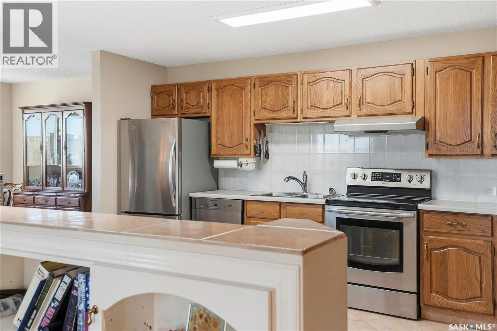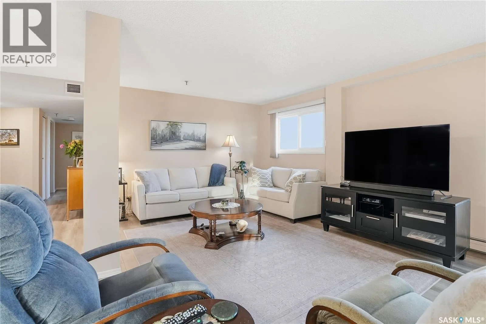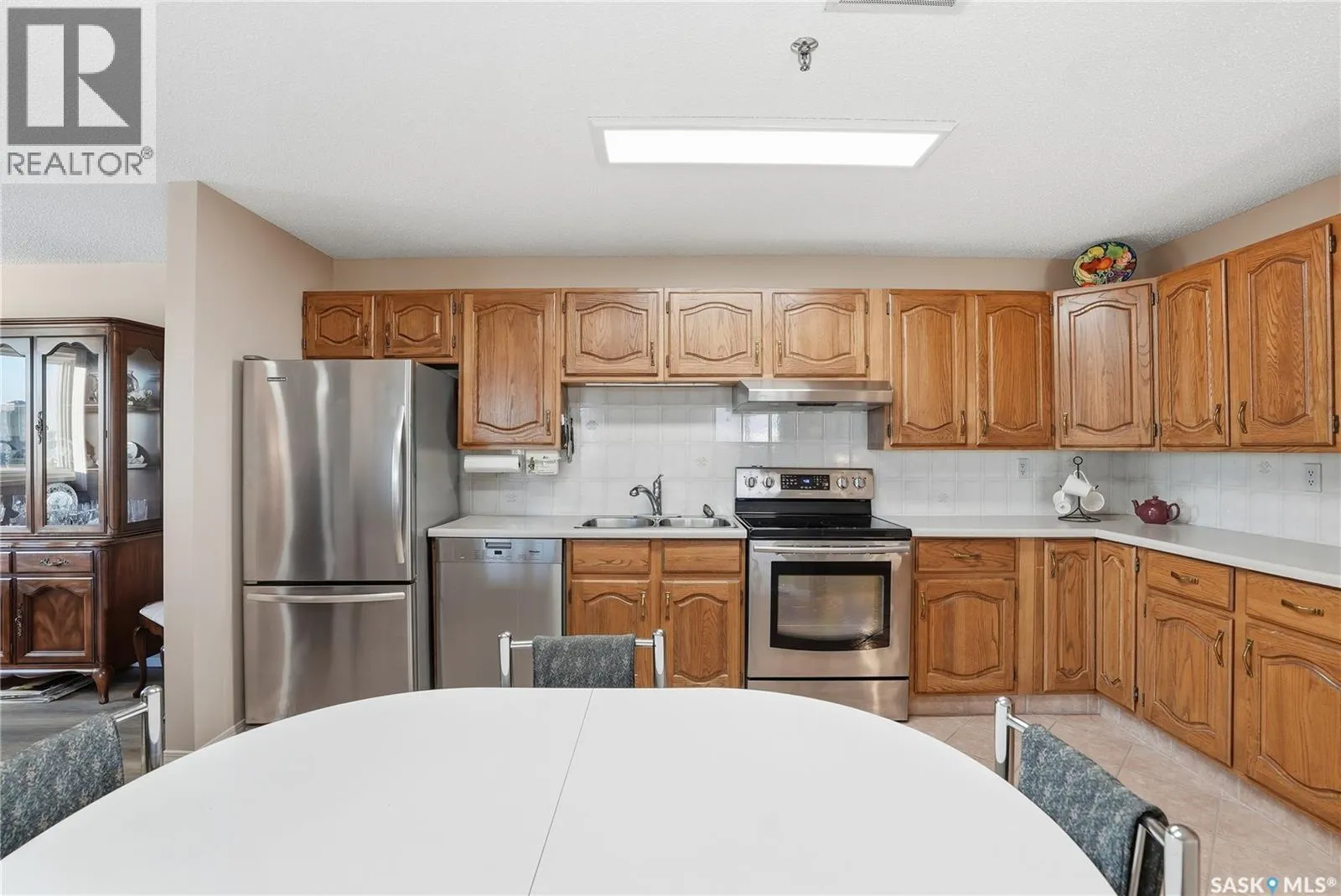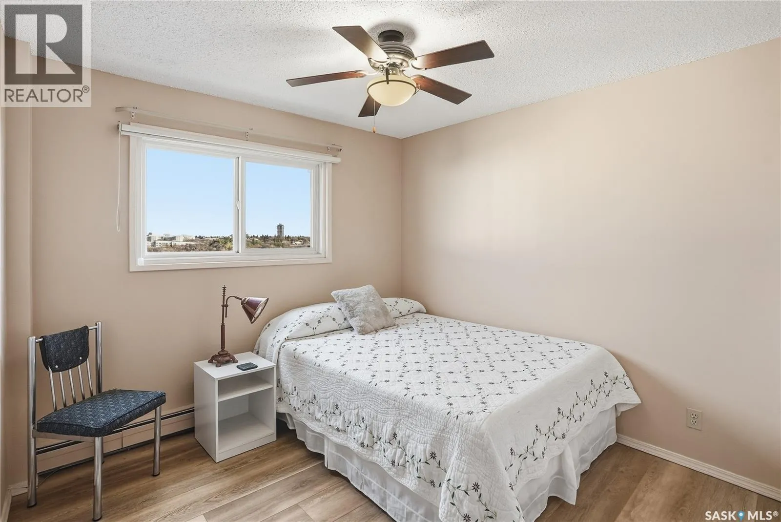 Welcome to unit 1003 â 510 5th Ave North located in the heart of Saskatoonâs desirable City Park neighborhood! This condo greets you with plenty of natural light flowing, a functional layout, and spectacular views overlooking Kinsmen Park! Step into your open concept living area, with laminate flooring, sliding glass door to your balcony with picturesque park views, gas fireplace against a tiled mantle, and recessed lighting. Your kitchen provides ample oak cabinetry, tiled backsplash, stainless steel appliances including fridge, stove, dishwasher and hood fan. Open to your formal dining space with a chandelier for a touch of elegance. Your king accommodating primary bedroom features a walk-through closet leading you to your 3-pc ensuite with glass shower and modern vanity. Second bedroom + a den, as well as a 4-pc bath with tile surround tub, a storage room with freezer and laundry hookup, completes this unit! The Discovery Park complex has it all â including an indoor pool, sauna, hot tub, fitness area, amenities room and library! With an unmatched location, only steps away from City Hospital, quick access to the U of S, downtown and our beautiful South Saskatchewan River, this is one you wonât want to miss! (id:27476)