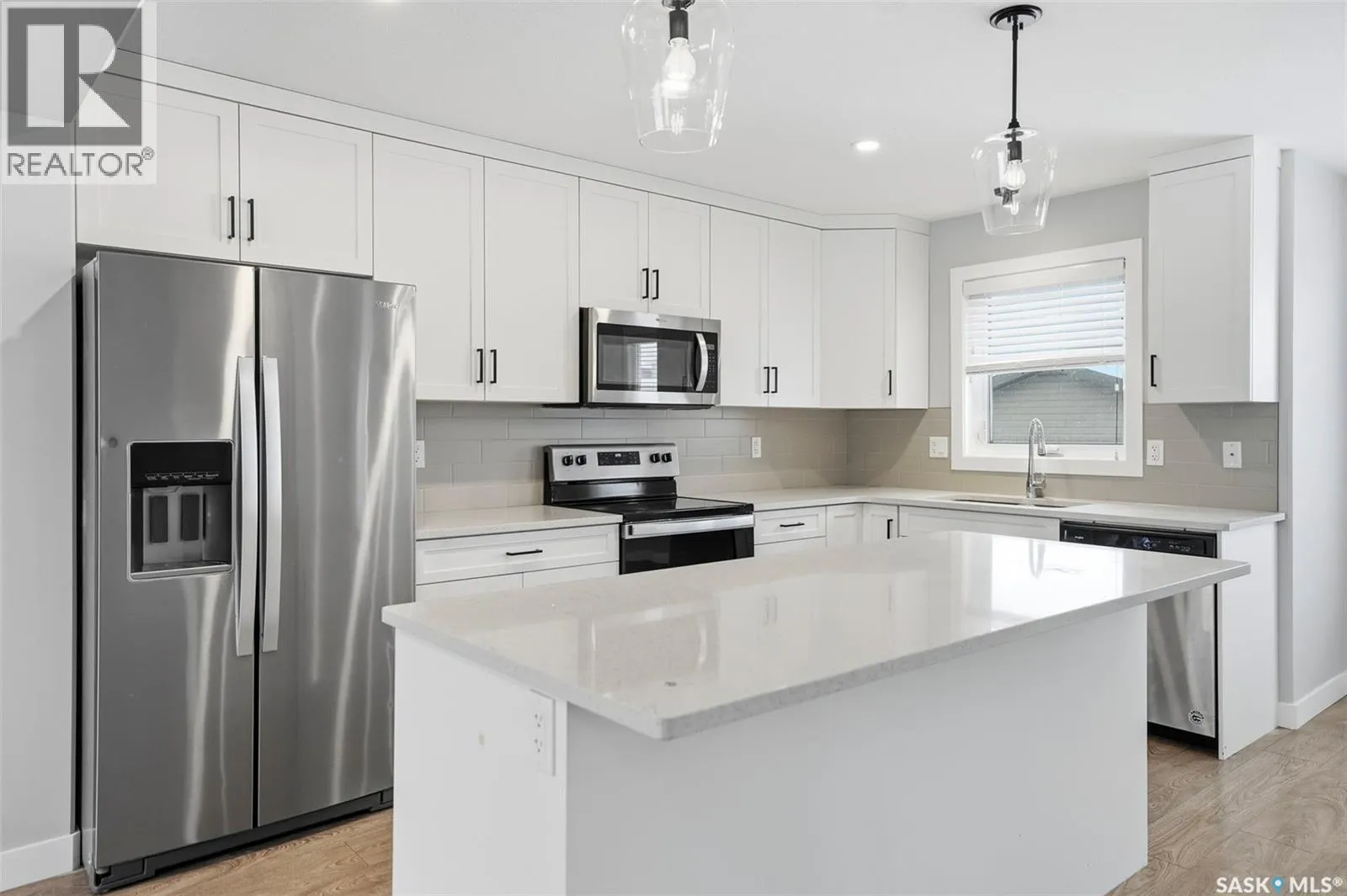 Welcome to this beautifully maintained two-storey in Brighton, offering 1,470 sq. ft. above grade plus a fully developed basement completed with city permits. The main floor features an inviting open concept with quartz countertops, custom cabinetry, modern fixtures, and a sit-up island thatâs perfect for family gatherings. Oversized windows fill the living room with natural light, while the electric stone fireplace creates a cozy focal point. Upstairs, three spacious bedrooms provide comfort and flexibility, including a primary suite with vaulted ceilings, walk-in closet, and a 4-piece ensuite. A convenient second-floor laundry adds everyday ease. The basement expands your living options with a large bedroom, open area, kitchenette, full bathroom, and a second washer and dryer, ideal for extended family or income potential. Outside, enjoy landscaped front and back yards, a welcoming porch, private deck and patio, and a double detached garage for winter parking. Stylish, practical, and perfectly located near the Brighton Marketplace, Brightonâs parks and amenities, this home is move-in ready and offers exceptional value. (id:27476)