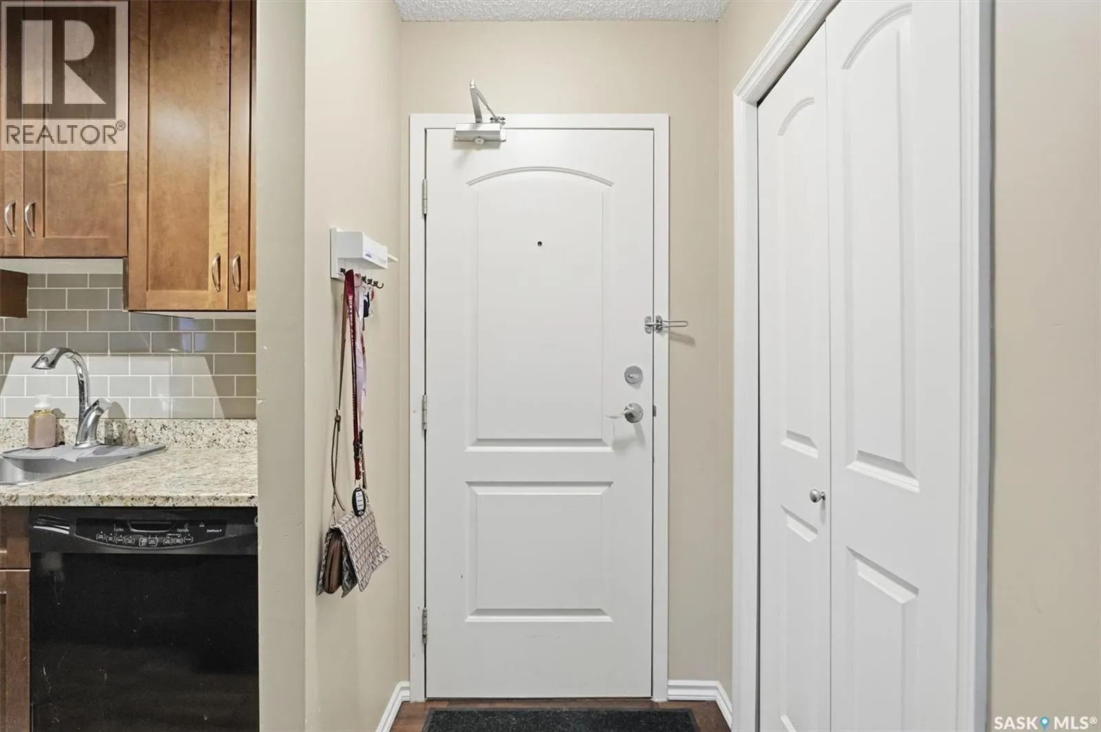 Welcome to the Lexington building in Lawson Heights! This updated 1-bedroom apartment condo located on 2nd floor has been tastefully updated. Kitchen boasts newer cabinets, granite countertops, a stylish tile backsplash, Enjoy the convenience of in-suite laundry with newer ventless washer/dryer combo unit. The large bedroom provides ample space for relaxation, and there is plenty of storage throughout the suite. This pet-friendly building allows pets with restrictions. One electrified parking stall is included, adding to the convenience. Quick possession is possible. Close to Lawson Heights Mall that has most amenities within walking distance. (id:27476)