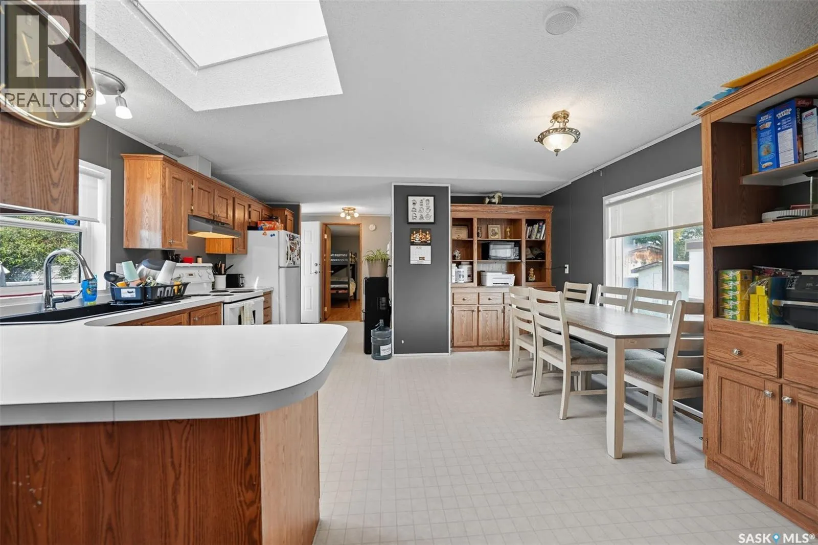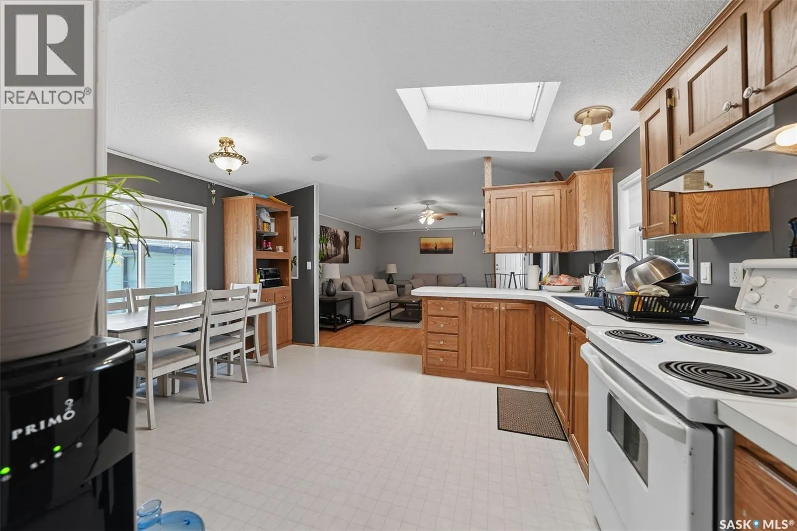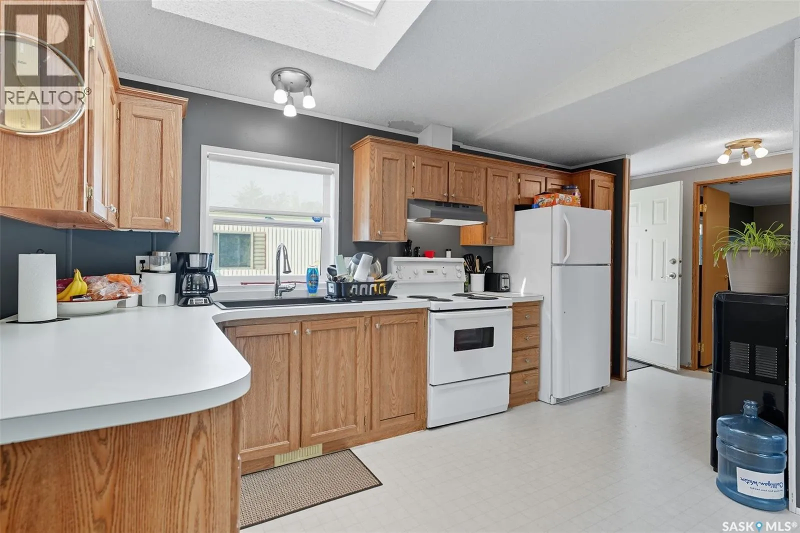 EXTREMELY well-maintained mobile home in Wildwood Mobile Estates. 3 bedrooms and 2 full bathrooms spread out over 1,200+ square feet. Lots of living space here, and even more outside with attached deck and nicely manicured yard. Large foyer as you enter the home that leads into a great room concept with open layout between living room, kitchen and dining areas. Skylight in the kitchen for added natural light, big windows throughout, and good-sized laundry room with storage. Master bedroom is huge with walk-in closet and 4-piece ensuite bathroom. At the far end of the home are another two bedrooms and another 4-piece bathroom. Other features are: built in sound system, Central Air, alarm system, new shingles (approximately 3 years ago), Built-in China cabinet, tandem driveway (fits two vehicles), and a fully-fenced yard. Lot fees ($1,158/month) include: water/sewer, taxes, garbage/recycling, snow removal, park maintenance. Immediate Possession available! (id:27476)