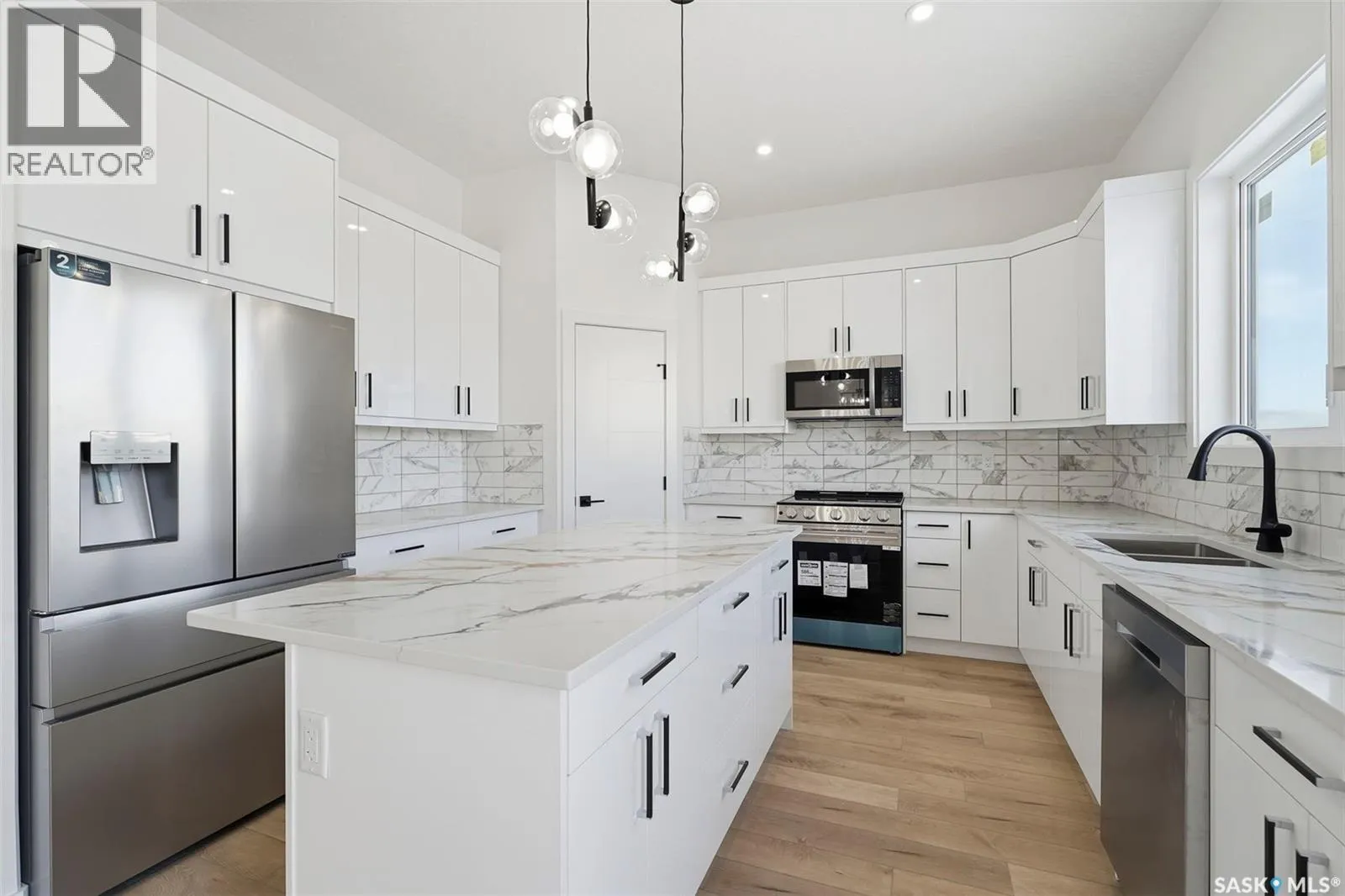 Step inside this modern modified bi-level where sunlight, space, and smart design come together for comfortable family living with valuable mortgage-helper potential. The main floor opens into a bright living area with soaring 10-foot ceilings, luxury vinyl plank flooring, and oversized windows that fill the space with natural light. The kitchen sits slightly tucked away, keeping the main area open while still feeling connected. Two bedrooms, a full bathroom, and deck complete this levelâan ideal outdoor extension year-round. Upstairs, the entire top floor becomes your private retreat. The primary suite is wrapped in panoramic windows, creating a calm sanctuary with a walk-in closet and spa-inspired ensuite featuring dual vanities, a tile-surround soaker tub, and standing shower. Downstairs offers exceptional flexibility with 9-foot ceilings. A heated double attached garage adds year-round comfort and can double as a workshop, gym, or office. The efficient mechanical room houses on-demand hot water and smart controls. The lower level features two separate spaces accessed through a shared exterior entry with stackable washer/dryer. The first is a bright flexible room with a 3-pc bathroom, quartz counter with bar sink, full ventilation installed (ready for optional kitchenette), and its own entranceâideal as extra living space, private office, or non-conforming accommodation. The second is a fully legal 2-bedroom suite with its own furnace (not baseboard), modern finishes, and separate power meterâperfect for extended family or rental income. Additional highlights include triple-glazed windows, central AC, smart thermostat, LED lighting, completed sidewalk entry with retaining wall, security camera wiring with cameras installed before possession, and front landscaping completed by builder when weather allows. Available for immediate possession. Designed for growing households, or buyers seeking smart flexibility and income potential. (id:27476)