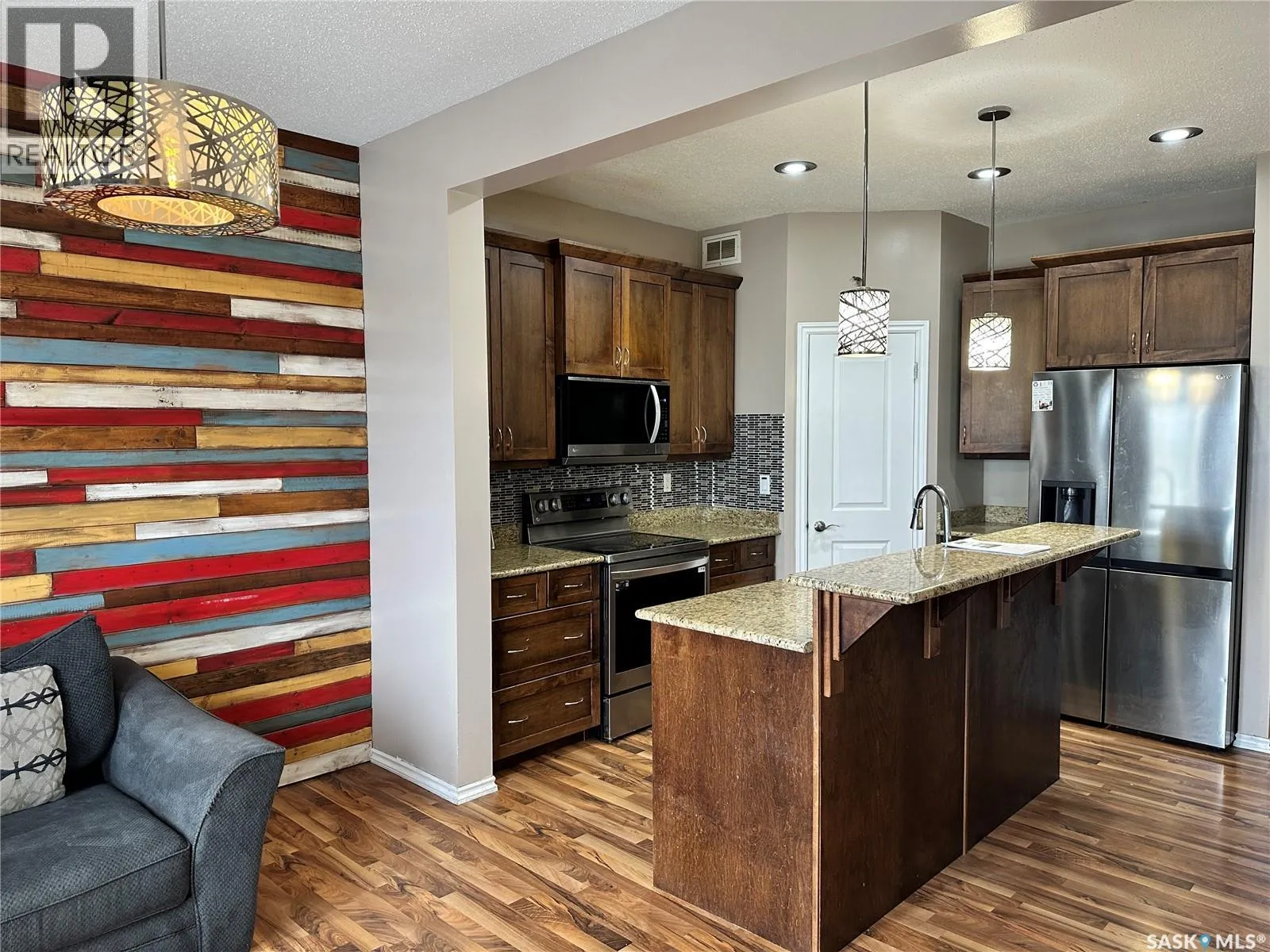 Welcome to 1,456 sq. ft. of Modern Living in Stonebridge This impeccably maintained semi-detached duplex offers the perfect blend of style, space, and convenience. Situated close to all amenities, this two-level home is move-in ready with thoughtful upgrades throughout. Main Floor Highlights: The open-concept floor plan showcases upscale laminate flooring and floods the space with natural light. The stunning kitchen is a chef's dream, featuring maple cabinets, granite countertops, an elevated eating bar with sink, corner pantry, and sleek black appliances. The sunny dining area, enhanced by abundant windows, flows seamlessly to a multi-level deck with southern exposureâideal for entertaining or relaxing outdoors. Upper Level: Three spacious bedrooms include a master suite with a walk-in closet. Two full 4-piece bathrooms provide ample convenience for the whole family. Additional Features: Central A/C for year-round comfort Washer and dryer included Complete blind package throughout Main floor 2-piece bathroom Double detached garage with privacy fence Unfinished basement ready for your visionâor enjoy the existing 1-bedroom nanny suite/rec room with wet bar New furnace (2021) This pride-of-ownership home is waiting for you to make it yours! (id:27476)