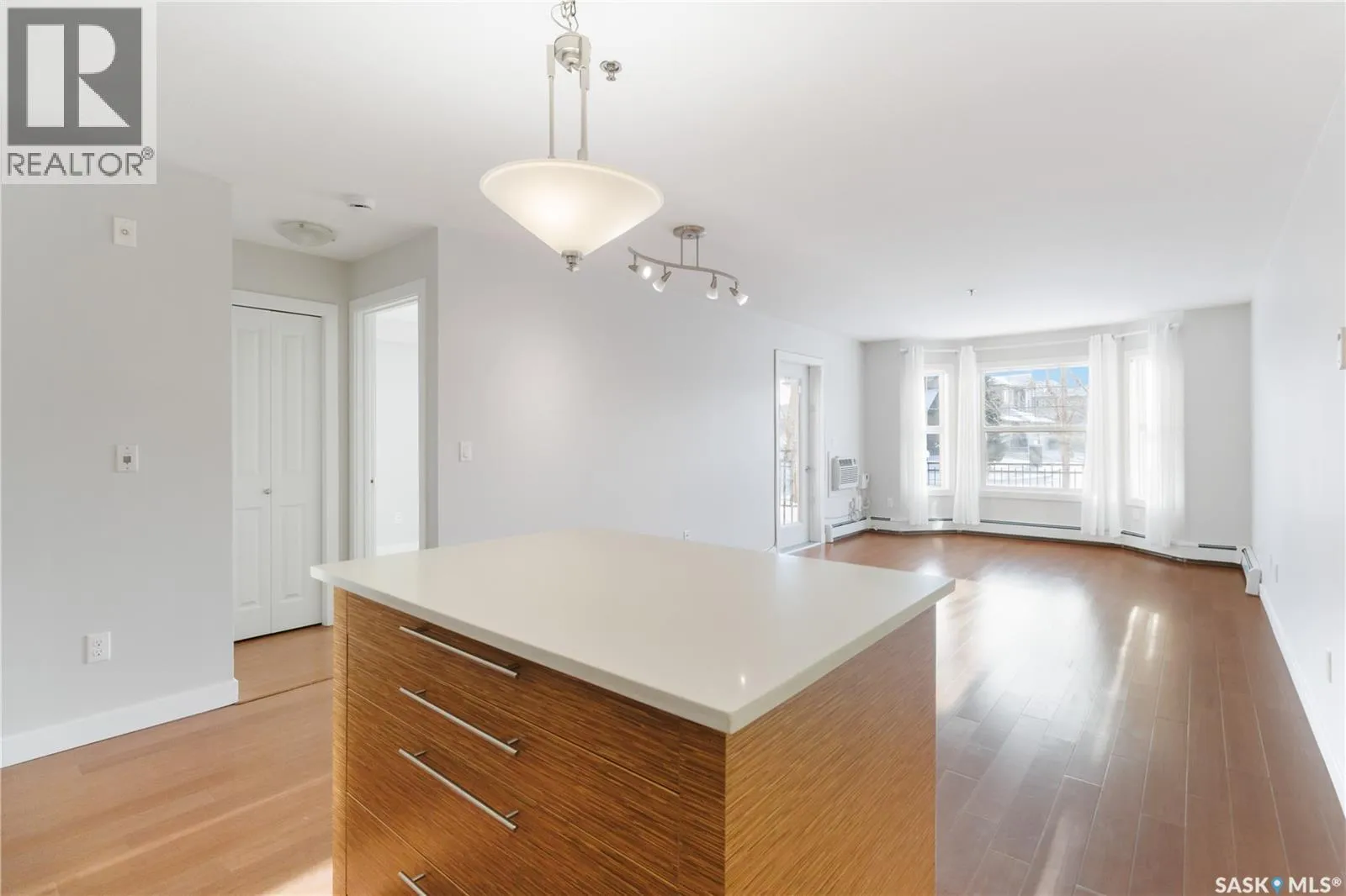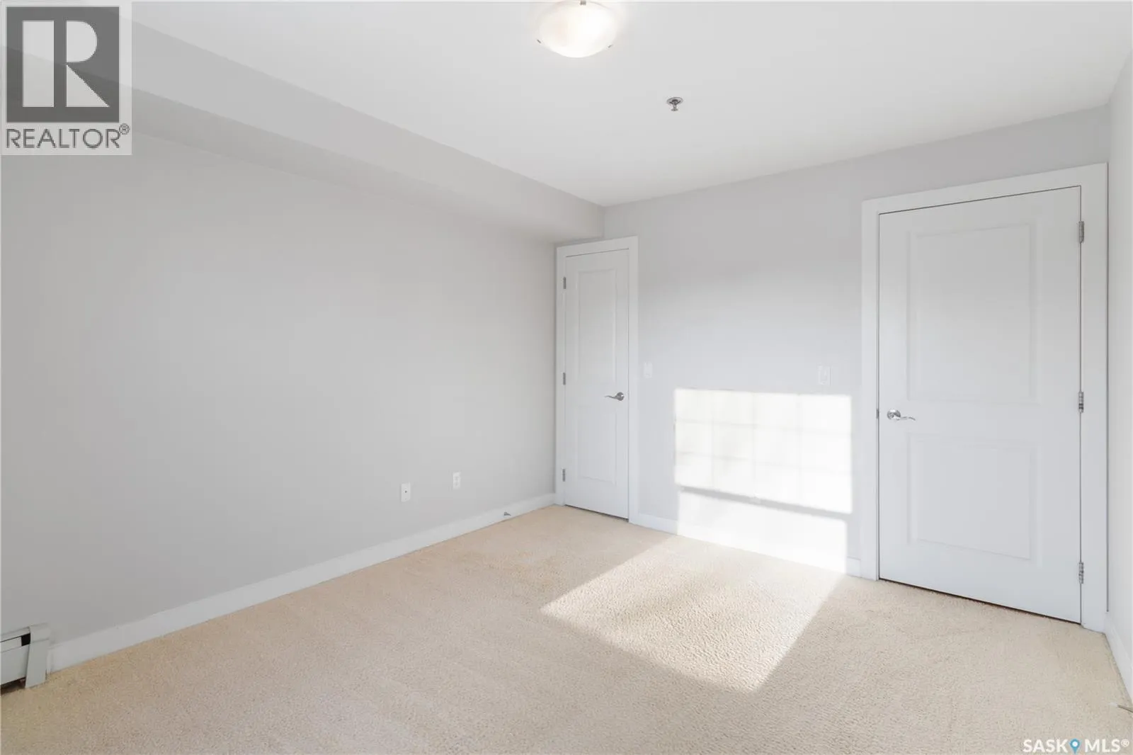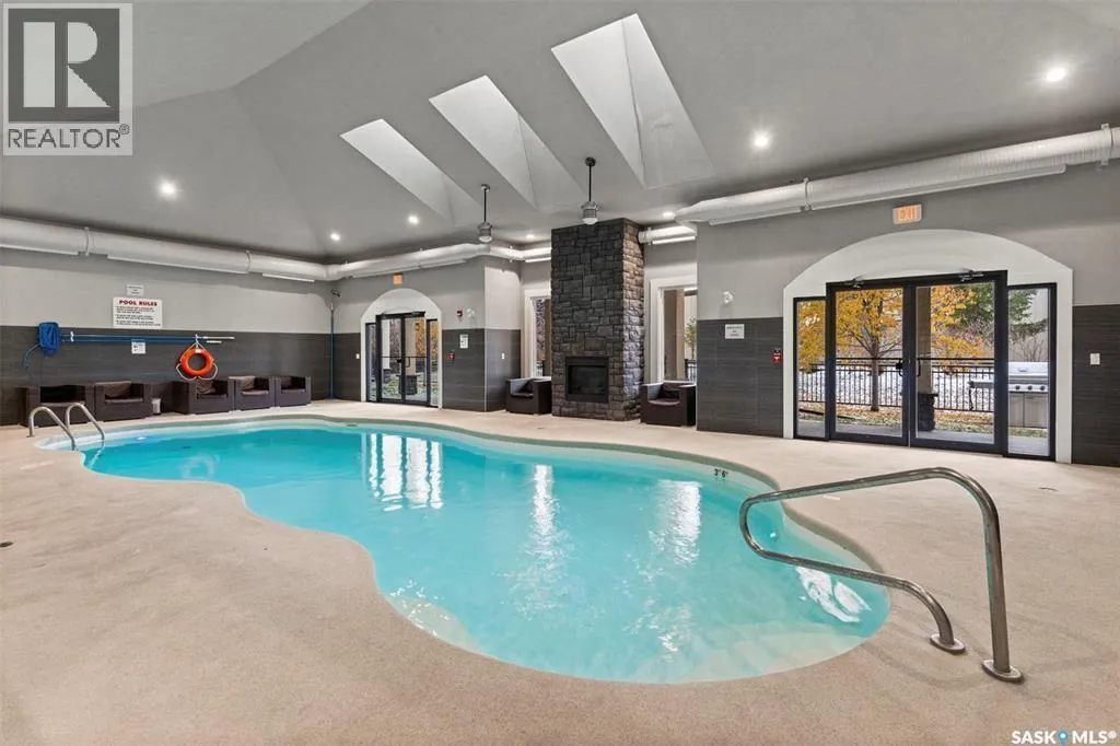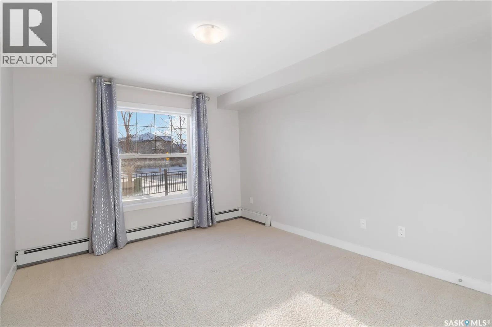 Welcome to 103C-415 Hunter Road in Stonebridge! This main floor, south facing two bed, one bath condo has everything one could need. Freshly repainted and ready for immediate possession. The condo boasts a smart layout with two bedrooms on opposite ends, a four-piece bath with a quartz countertop, and a kitchen with ample cabinet space and a functional island. The in-suite laundry room is convenient and the bedrooms features large closets. 2 parking stalls are included close to the entry. The complex is among the best in town, featuring an indoor pool and gym. Itâs within walking distance to many amenities and offers quick, easy access out of Stonebridge to Circle Drive. Owners are allowed to have 2 animals with board approval - smaller dogs allowed under 35 lbs allowed or two cats. Condo fees include water, insurance, heat, reserve fund, lawn care and snow removal. (id:27476)