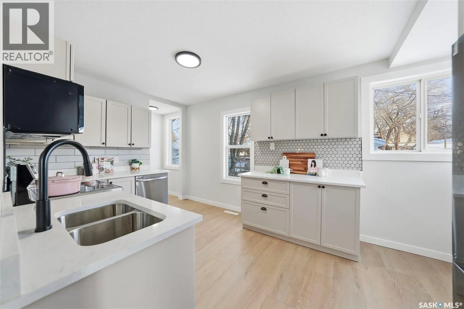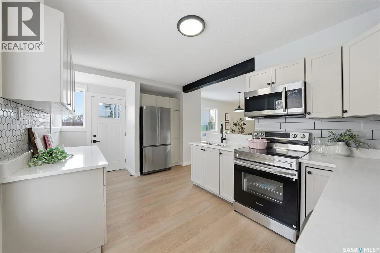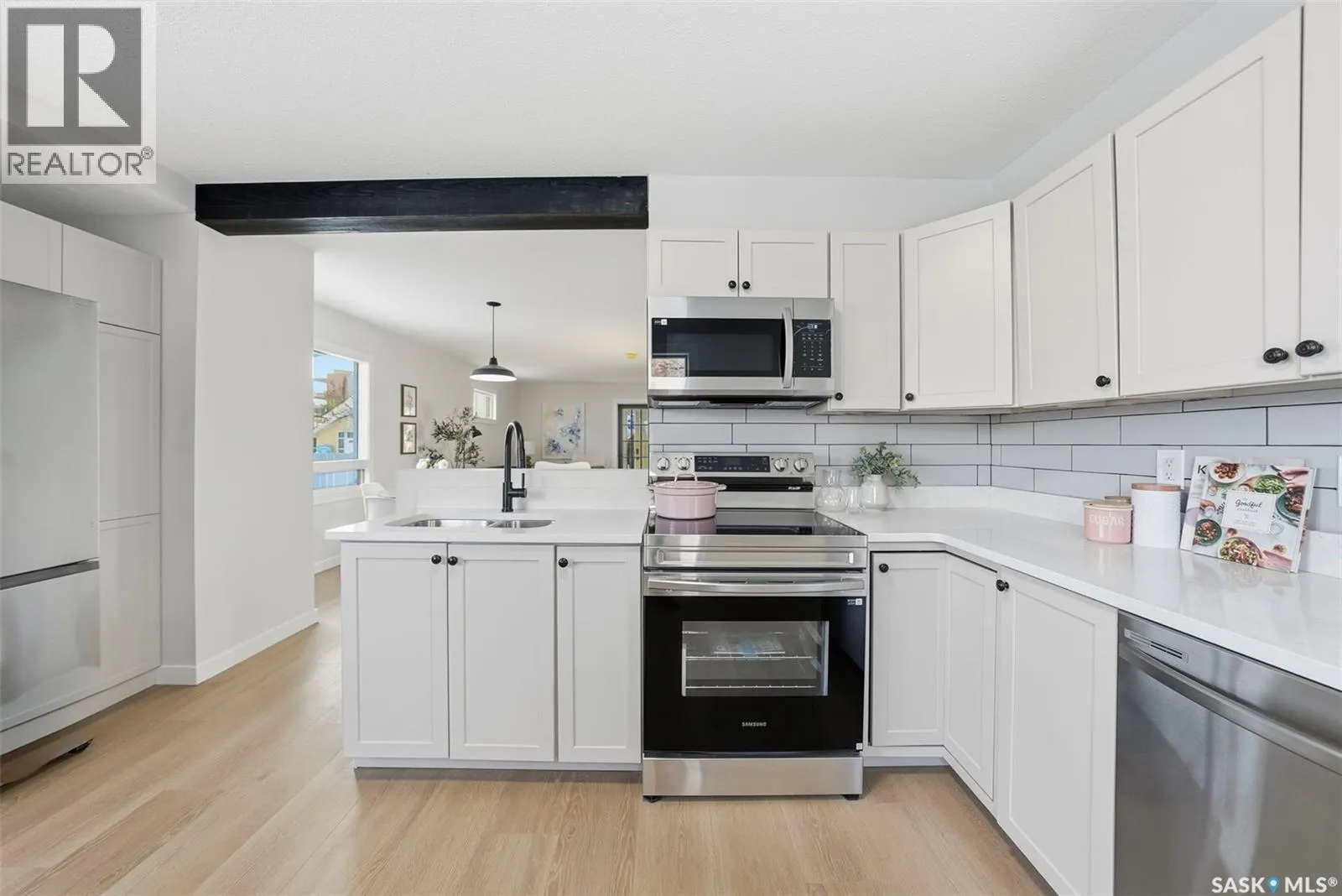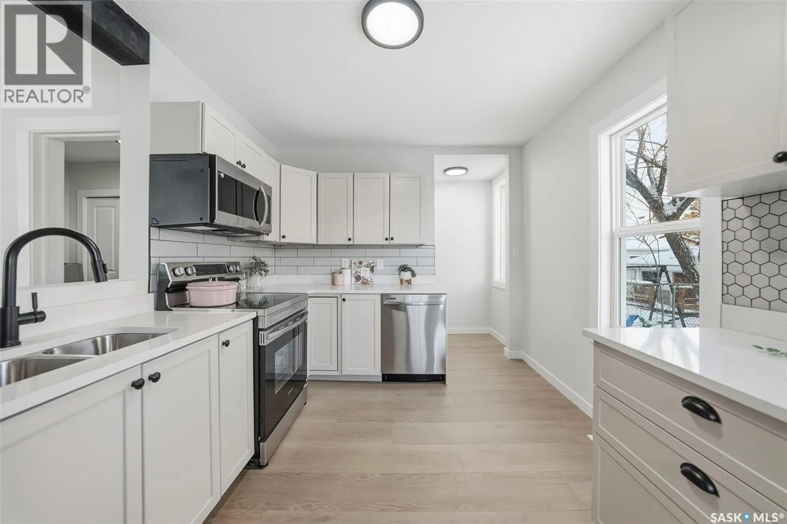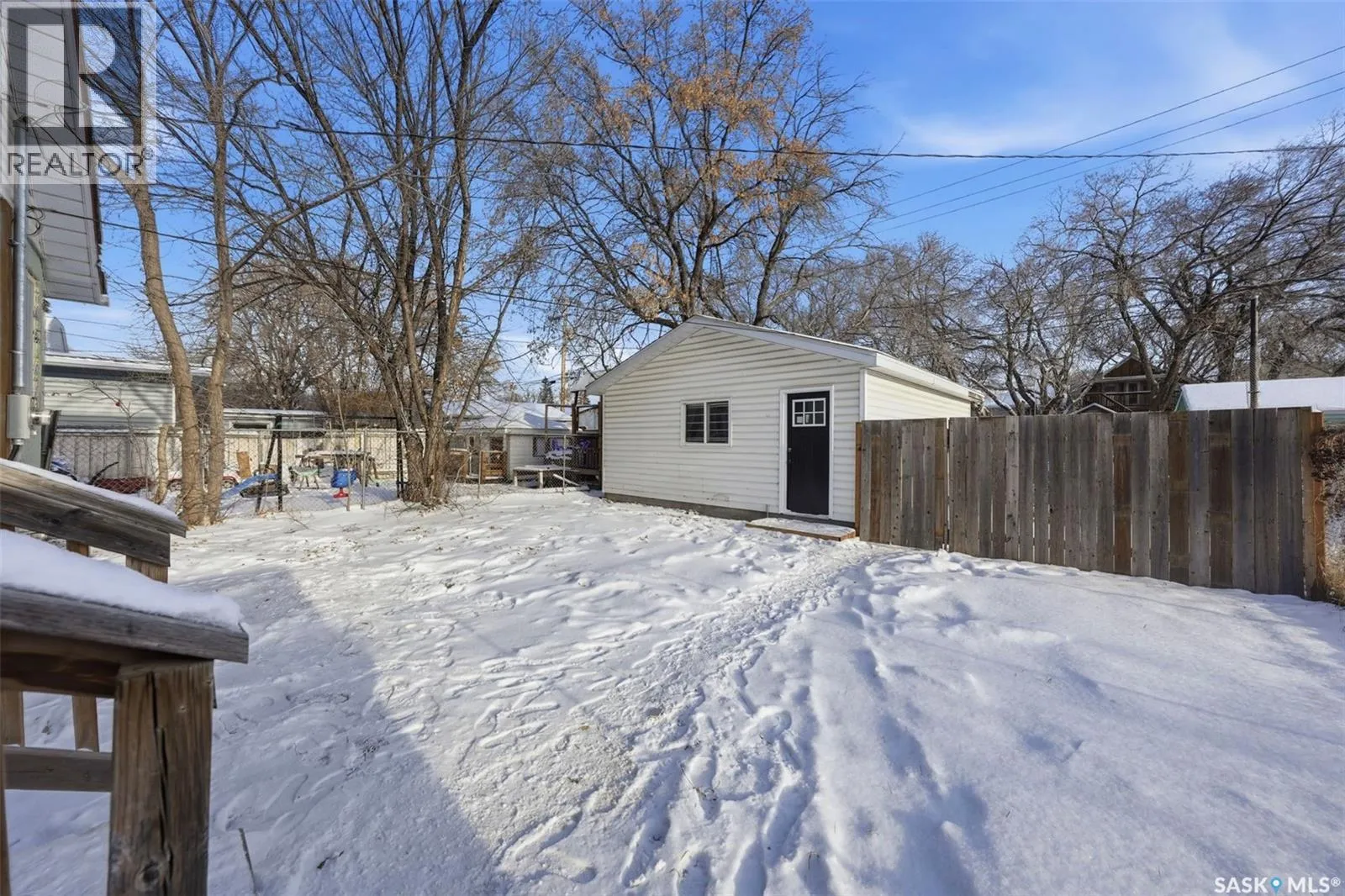 Cute & Cozy Bungalow in Riversdale Check out this gem in the super popular (and quickly growing!) Riversdale area. Youâre only a few minutesâ walk to the swimming pool and waterslide, the river, parks, tennis courtsâyou name it. This 846 sq. ft. bungalow feels warm and welcoming with 3 bedrooms, 1 fully redone bathroom, and a nice open-concept layout. The living room has a fireplace for that extra cozy vibe, and the primary bedroom even has a walk-in closet. The home has had a ton of updates over the years:⢠Newer shingles on both the house and garage⢠New doors and several newer windows⢠All new plumbing and electrical with a 100-amp panel⢠Brand-new kitchen appliances, quartz counters, tiled backsplash, wood beam accents, and lots of natural light. The basement is finished too, giving you a comfy family room, a larger bedroom with a walk-in closet, and a laundry area with a new washer and dryer. Outside, the yard is fully fenced with a concrete patio and deckâperfect for hanging out. You also get a newer 20.5â x 24â detached garage plus RV/boat parking off the back alley. Overall, this place is clean, tastefully updated, and totally move-in ready. The location is amazing! (id:27476)