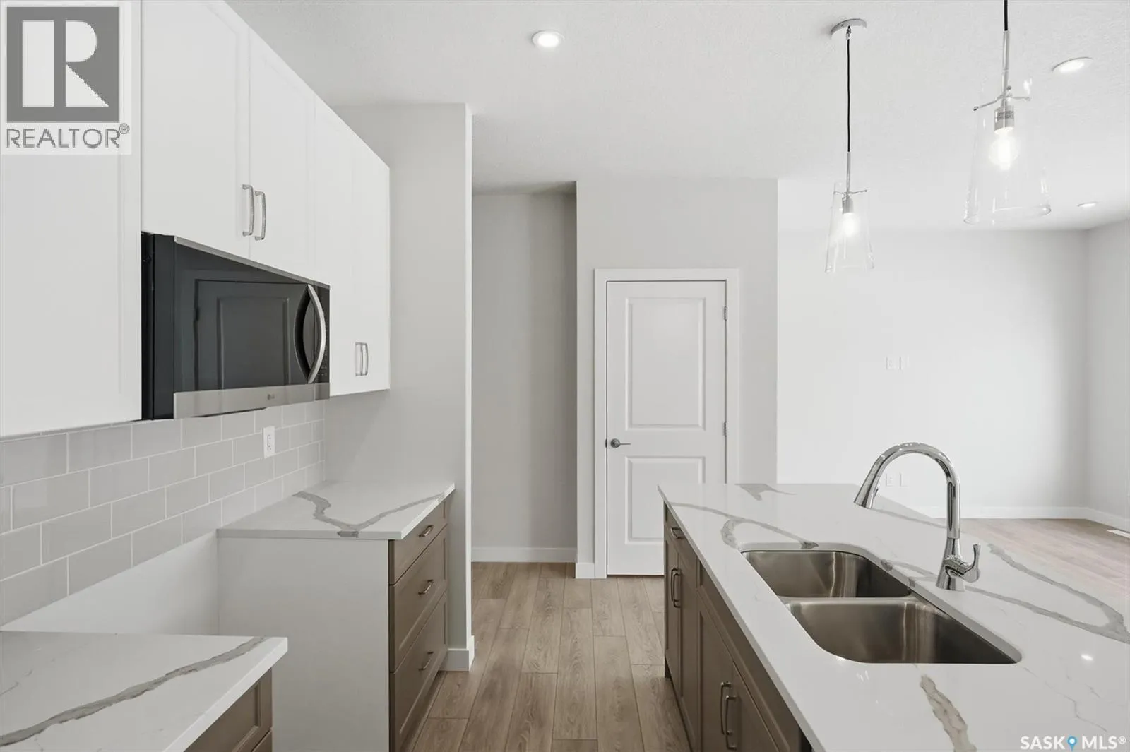 The "Oliver" by North Ridge Development Corporation is a "Suite Ready" 1501 square foot 2-Storey home located in the growing community of Brighton. A bright main floor layout featuring a large kitchen with walkthru pantry and island, dining area, living room, and 2-pce bath. Durable vinyl plank flooring in kitchen, living and dining rooms is attractive in appearance, high quality shelving in all closets and an upgraded trim package giving a fresh and modern feel along with beautiful cabinetry and quartz counter tops. The 2nd level features 3 bedrooms, a 4-piece main bathroom, and laundry. The master bedroom showcases beautifully with a 3-piece ensuite and walk-in closet. A side basement entry adds potential for future development or suite options. This home also includes a heat recovery ventilation system and high efficient furnace. GST and PST included in purchase price with applicable rebates to builder. Saskatchewan Home Warranty Premium Coverage. This home is move-in ready! (id:27476)