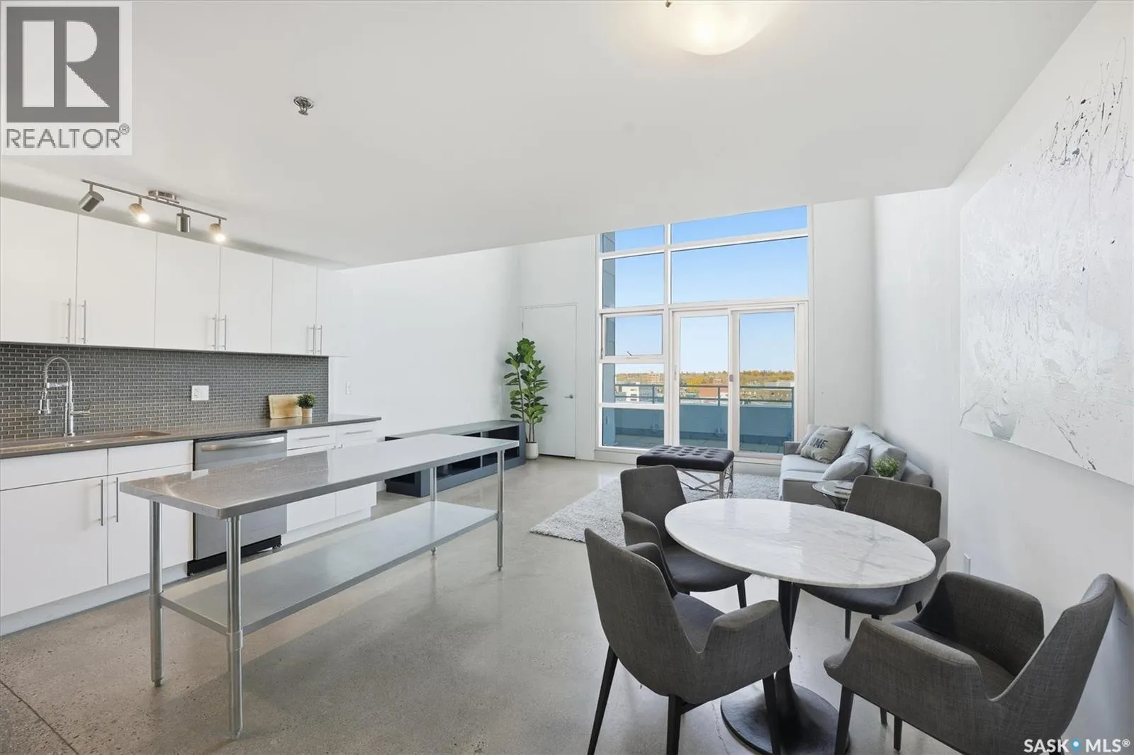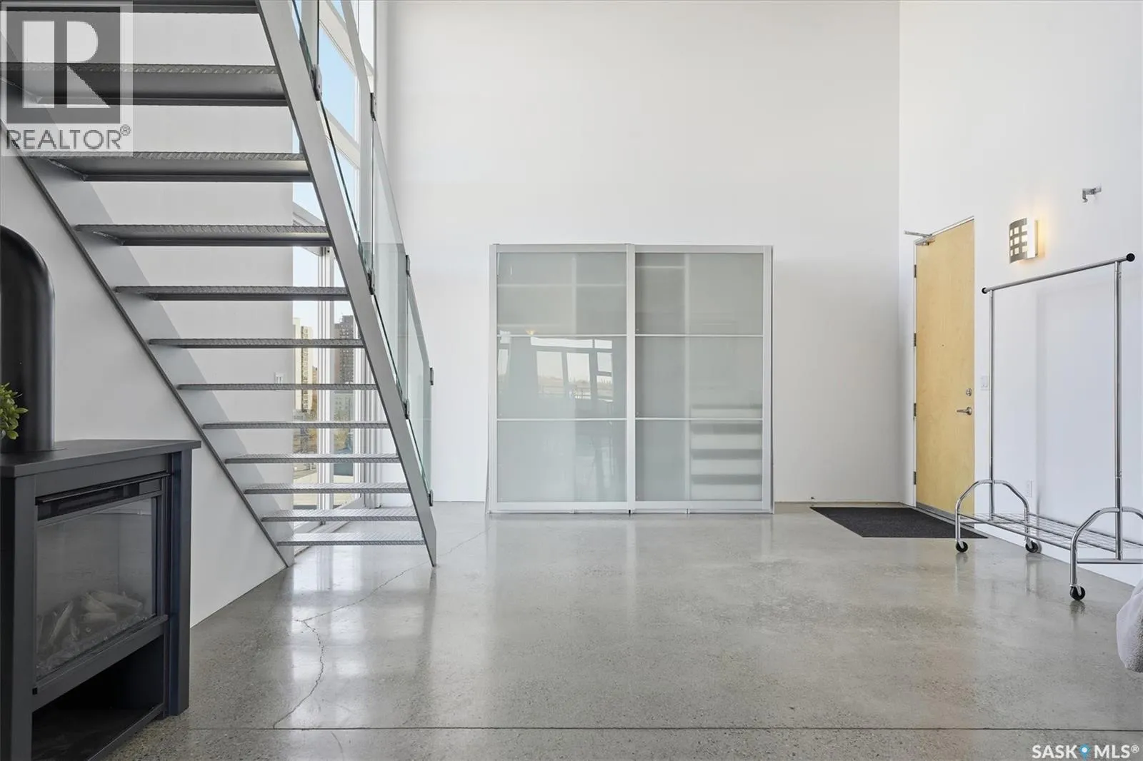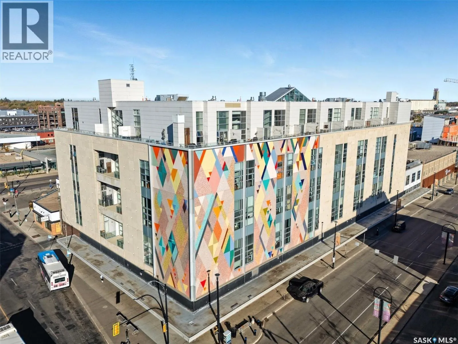 Top floor CORNER unit with massive wrap around balcony overlooking the city sky line! Welcome to the 2nd Avenue LOFTS where modern downtown living meets comfort and architectural character. This spacious 1,075 sq. ft. loft-style condo offers an open-concept layout with soaring ceilings, large windows, and a wraparound balcony that provides sweeping views of downtown Saskatoon. The highlight of this home is the large wraparound balcony overlooking Saskatoonâs new central library and the proposed new rink and event venue â the perfect spot to enjoy your morning coffee while taking in the energy and excitement of Saskatoonâs downtown revitalization. Located on the exclusive fifth floorâthe only level equipped with central air conditioningâthis unit ensures year-round comfort. The interior features polished concrete floors, a bright and functional kitchen, and a generous bedroom suite with a four-piece bath. This units updated kitchen includes brand new stainless steel kitchen appliances. A tandem underground parking for two vehicles is included for convenience and security. The installing of a vehicle lift is permitted as well (with board approval). The 2nd Avenue Lofts building offers residents access to excellent amenities, including a fully equipped gym, a recreation area with ping pong tables, a modern meeting room, and one of the best roof top patio areas (located on 3rd level) in the city. Situated in the heart of the Central Business District, youâll be steps away from restaurants, shopping, and the river valley trails. A unique opportunity to own one of the most desirable units in this sought-after building. (id:27476)
