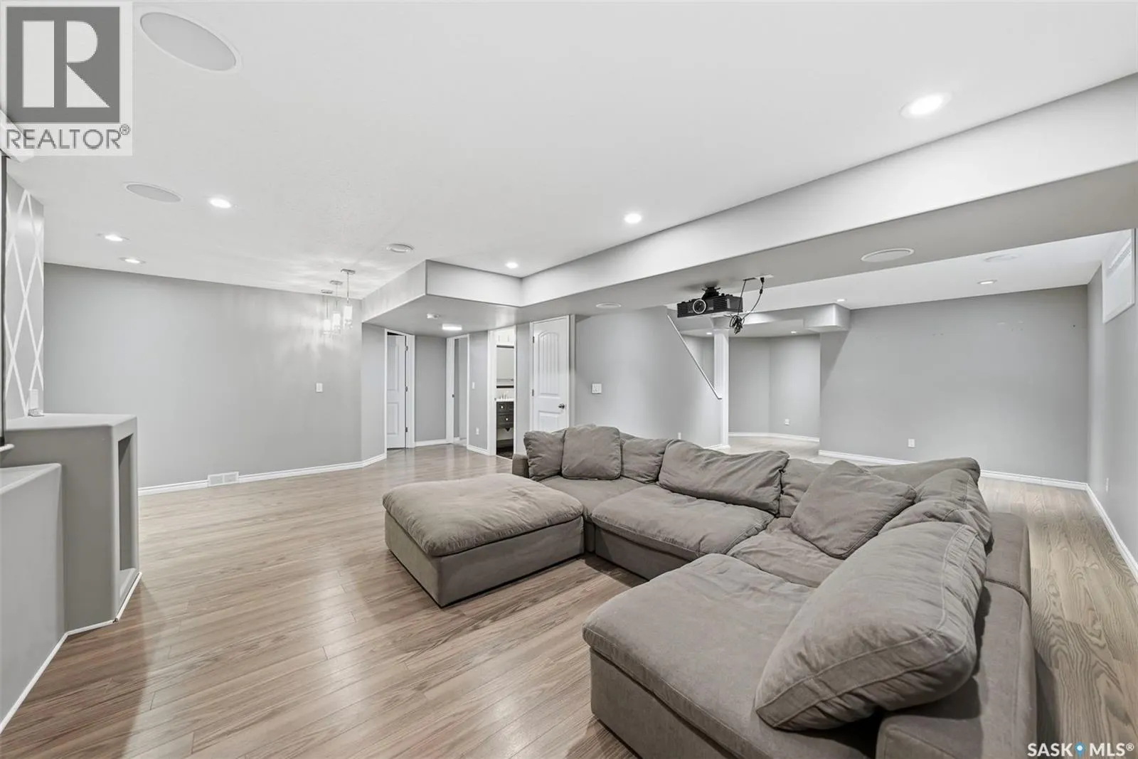 Welcome to 723 Sutter Crescent. This well-Maintained Bungalow offers functional and comfortable layout with 4 bed, 3 bath ideal for families or those seeking extra space. The main floor features a bright living area , practical kitchen with ample cabinetry. You will also find a spacious master bedroom with a walk-in closet and en-suite bathroom with two more bedroom and Common Bath. Head downstairs to find an amazing entertainment area , movie theater/family room with guest bedroom with full bath in the basement perfect for hosting weekend guests or having a night in with the family! Step outside onto the private deck and patio surrounded by professionally landscaped grounds with complete insulated electrically wired shed- perfect for greenhouse , storage or hobby space. And you wonât have to worry about parking thanks to the oversized double attached heated garage. Donât miss out on this opportunity â schedule your showing today! (id:27476)