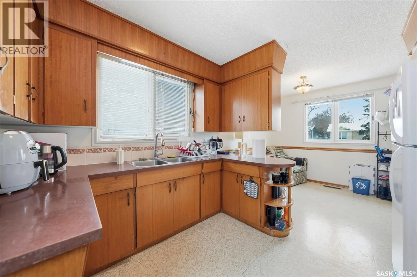 Attention investors or first time home buyers! Great potential with this 4 bedroom, 2 bathroom, 825 sq ft raised bungalow in Sutherland. Huge 50x145 ft lot. The original hardwood on the main floor is in great condition. The property is zoned R2 so may also be considered. The perfect starter home. Extra kitchen in basement. Close to all of the amenities found in Sutherland, Forest Grove, Erindale, Willowgrove and University Heights. Many schools are also close by including Elementary and High Schools. Easy access to Circle Drive, the University of Saskatchewan, the Forestry Farm Park and Zoo and Sutherland Park plus much more. Public transit is also close by. Call your REALTOR® today to set up a viewing. (id:27476)